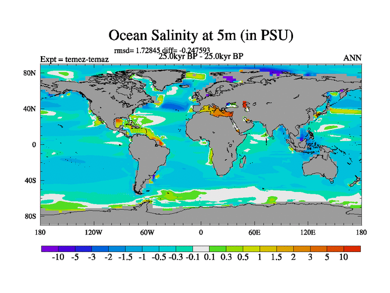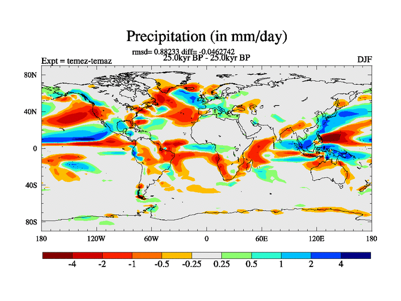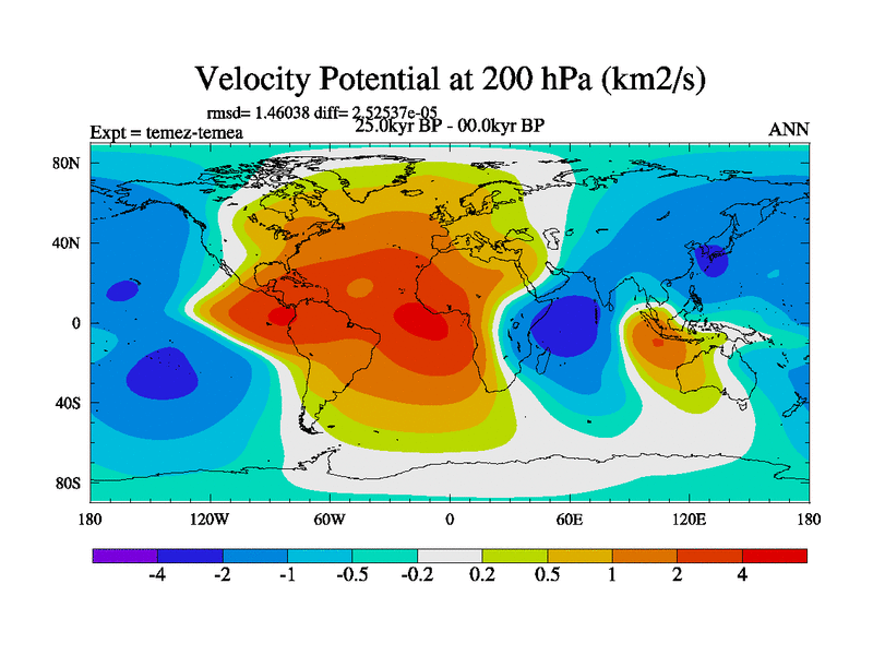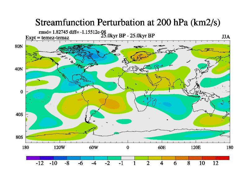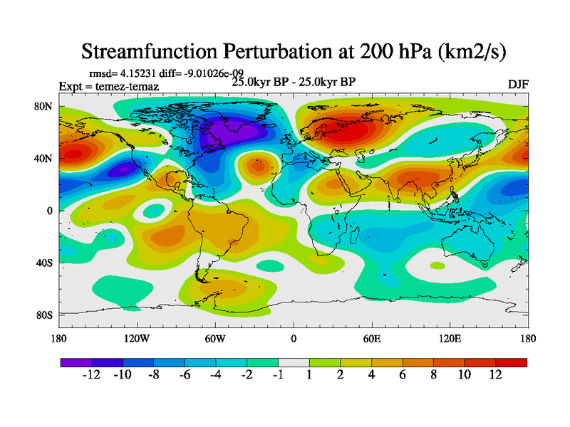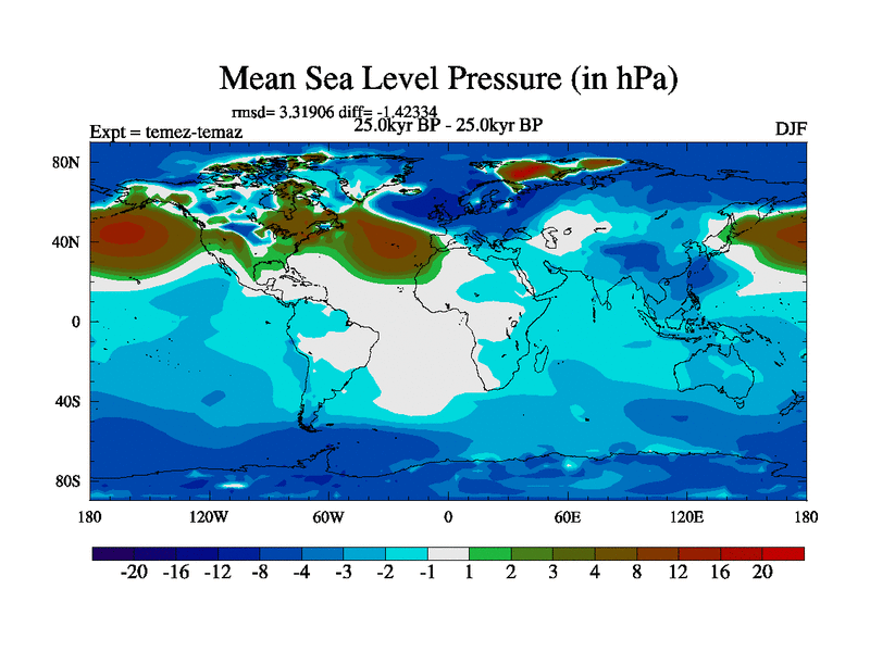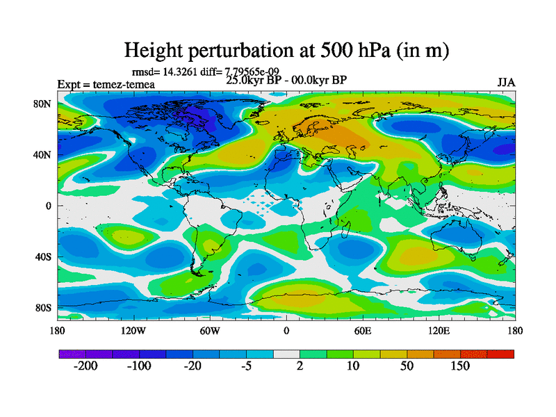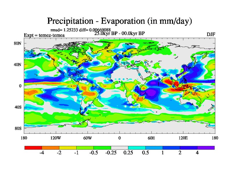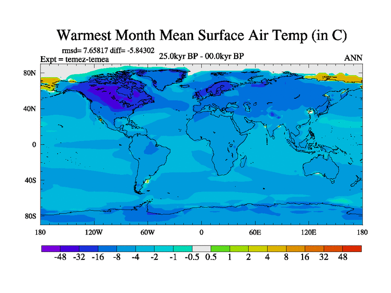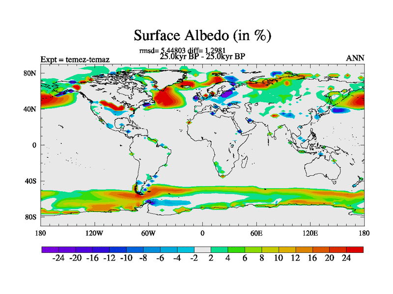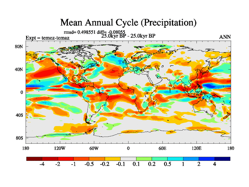 This is the 25.0 kyr BP simulation for a new set of deglaciation BBC runs using GLAC-1D and TRIFFID. Dynamic mode. No meltwater. Russian rivers routed to Med but only during height of glacial.