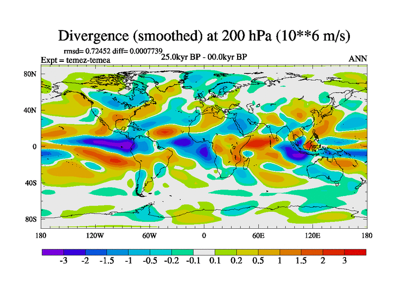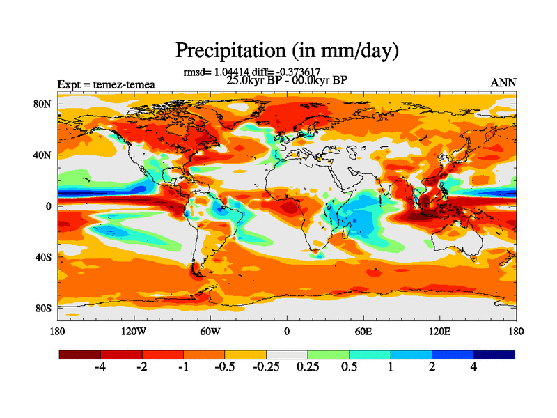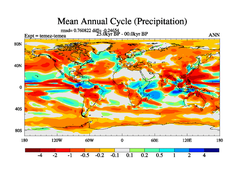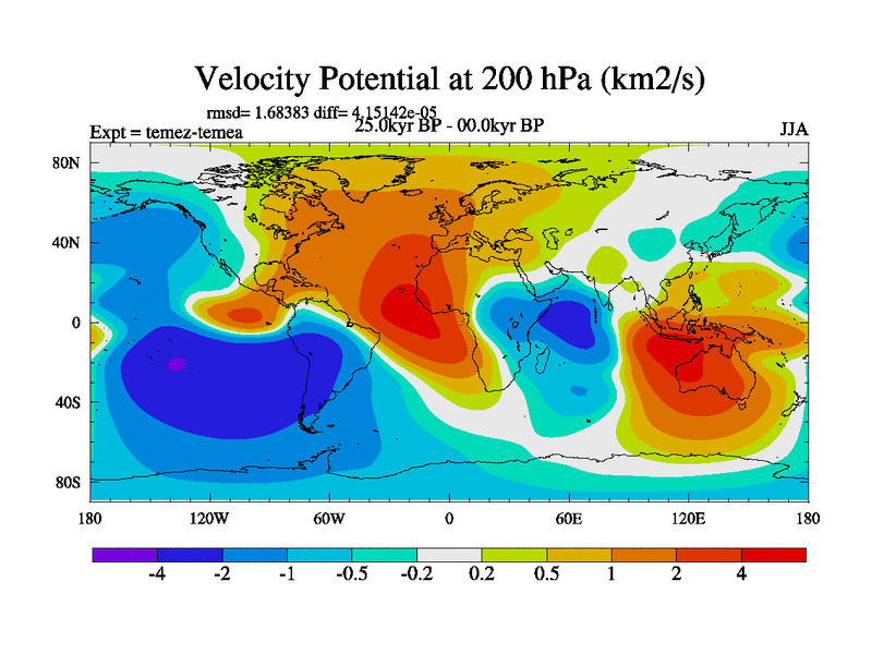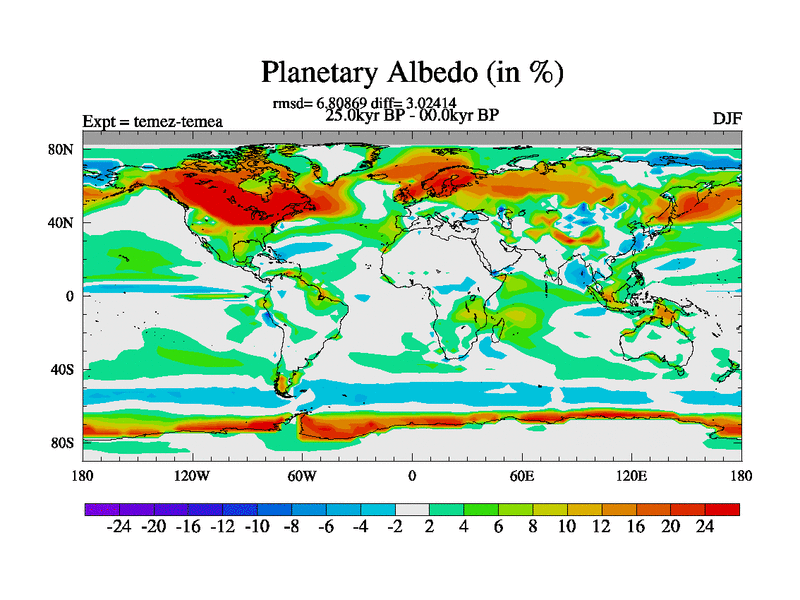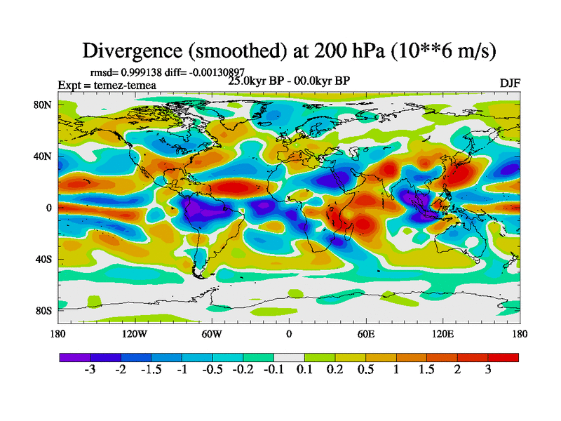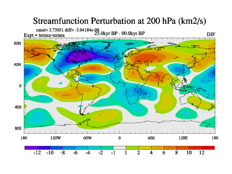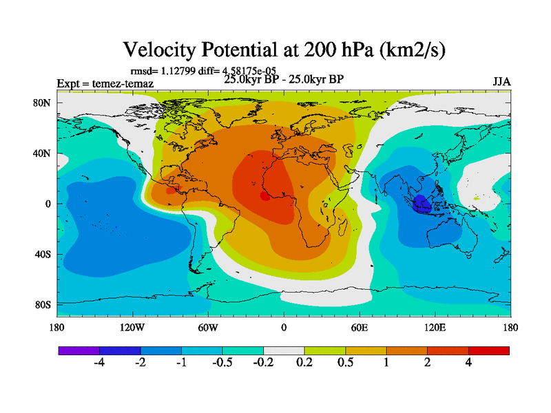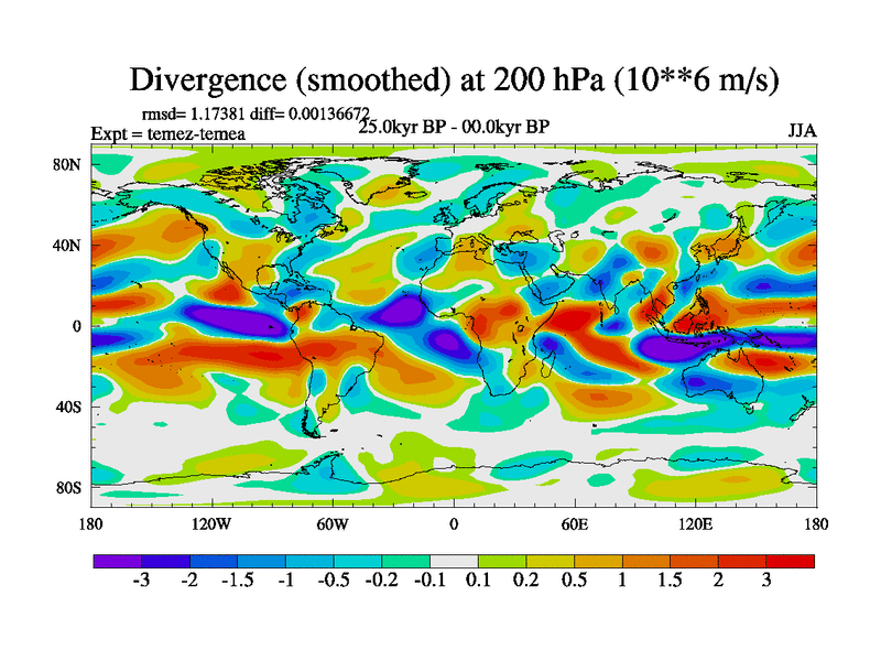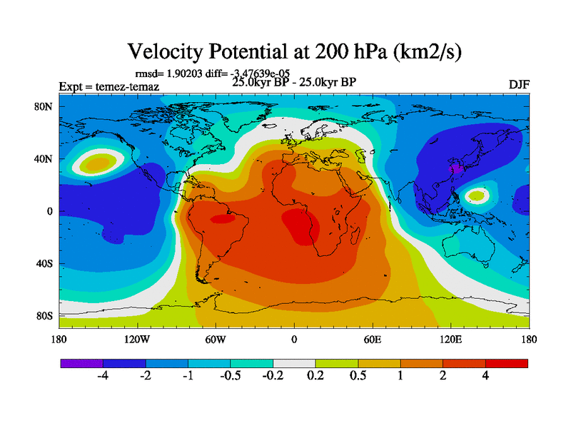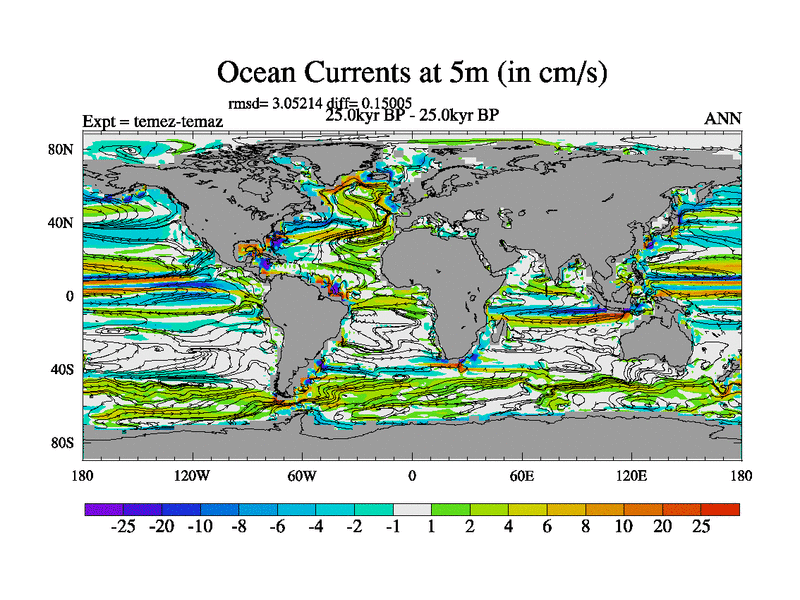 This is the 25.0 kyr BP simulation for a new set of deglaciation BBC runs using GLAC-1D and TRIFFID. Dynamic mode. No meltwater. Russian rivers routed to Med but only during height of glacial.