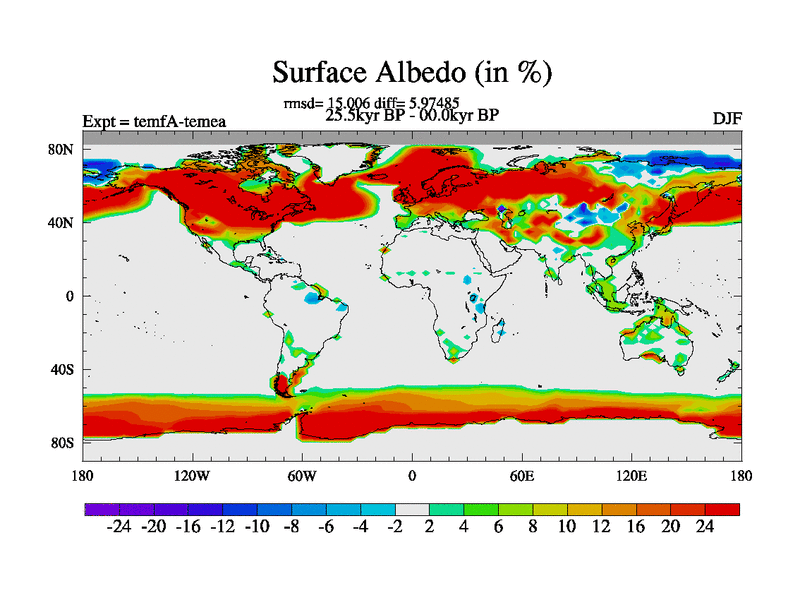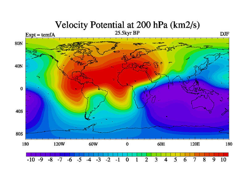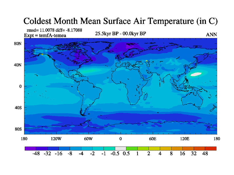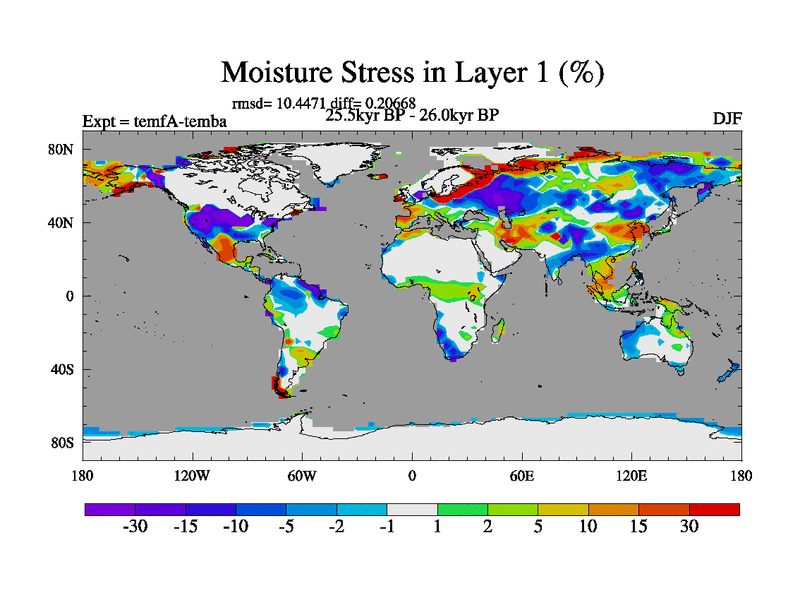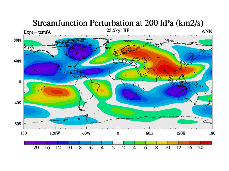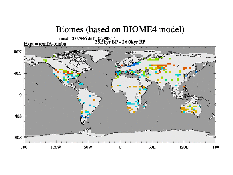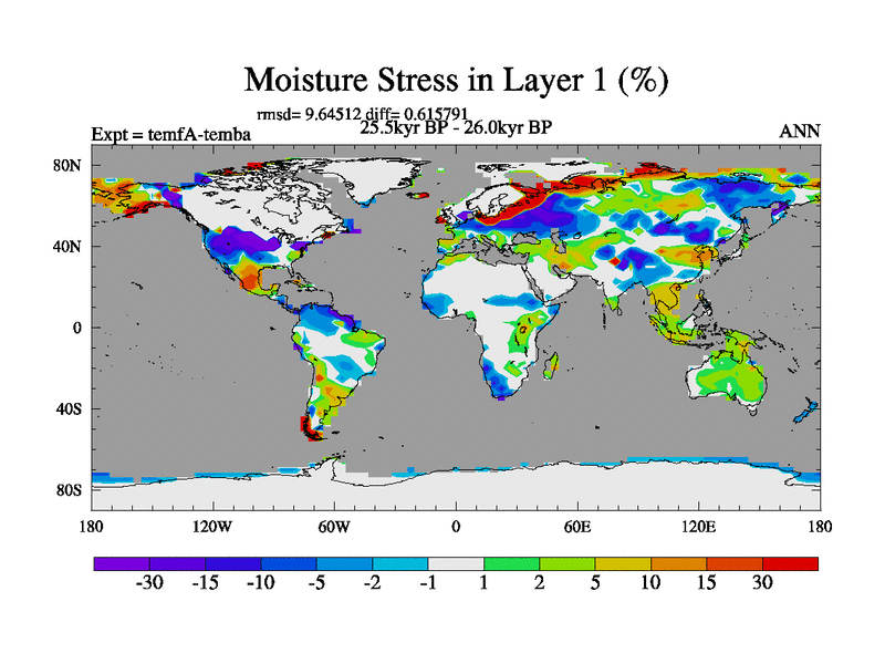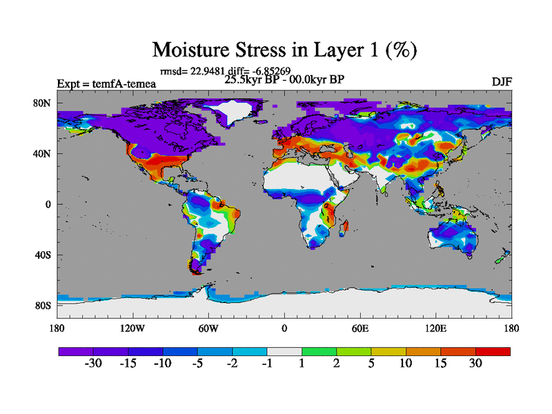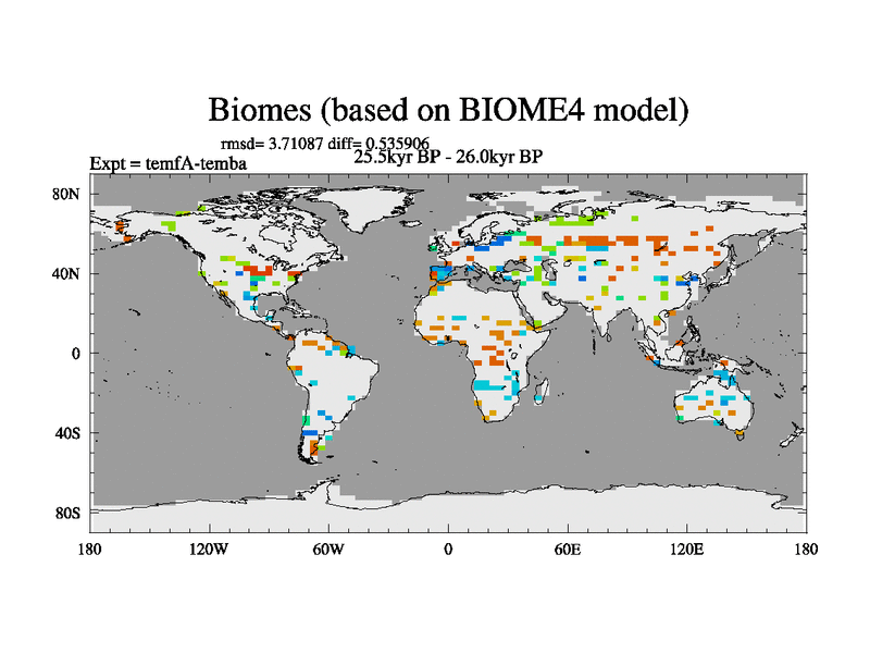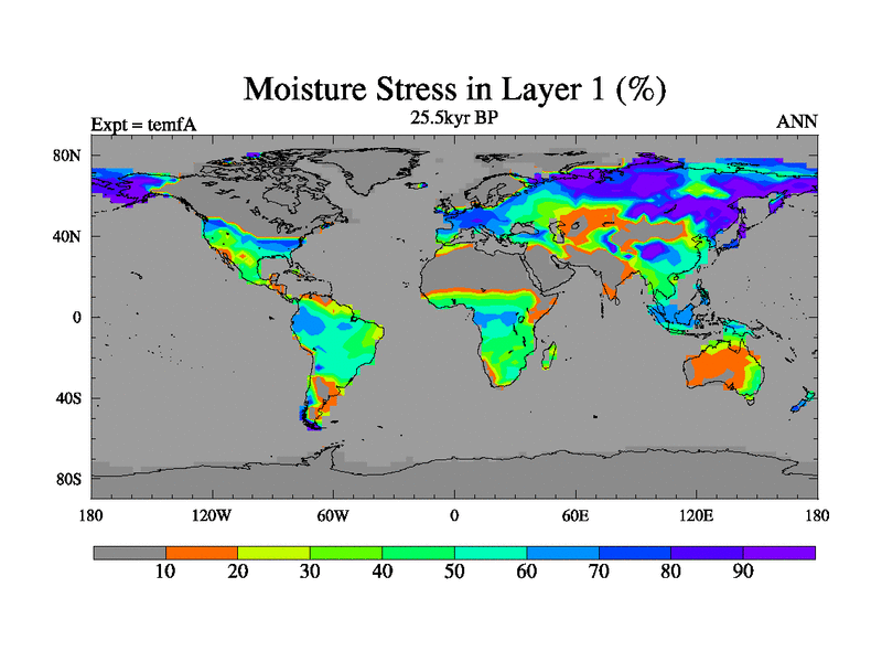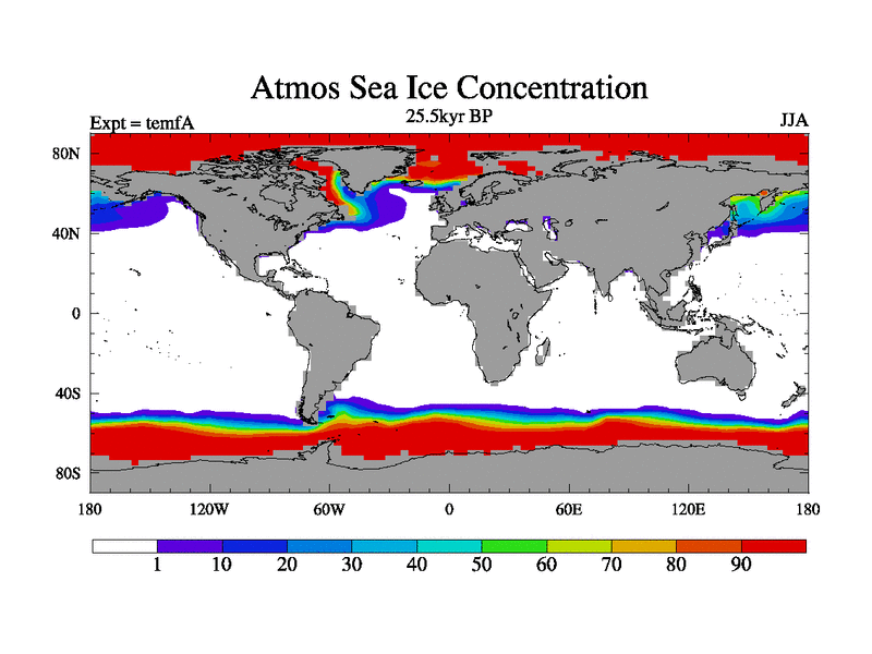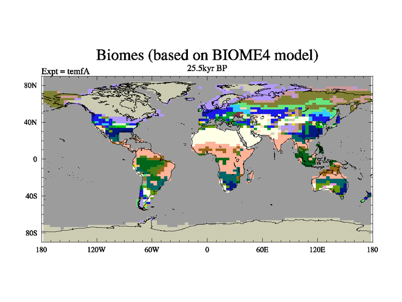 This is the 25.5 kyr BP simulation for a new set of deglaciation BBC runs using GLAC-1D and TRIFFID. Dynamic mode. No meltwater. Russian rivers routed to Med but only during height of glacial.