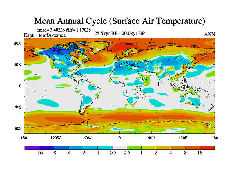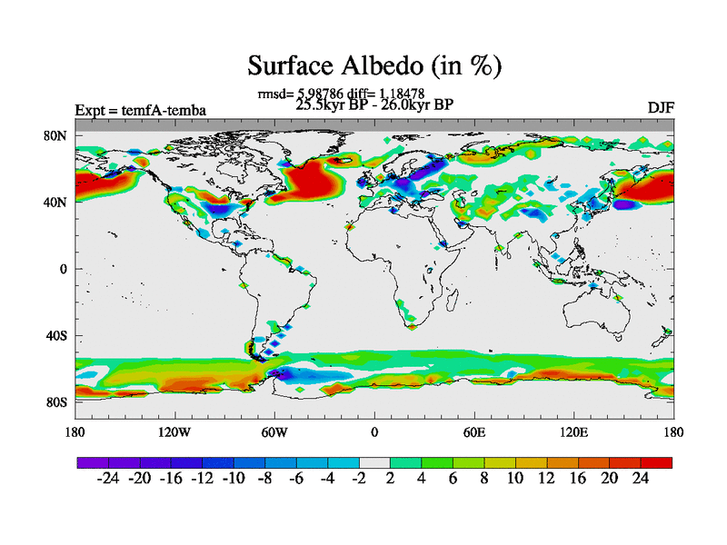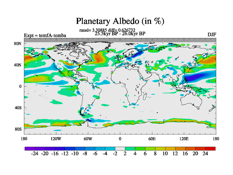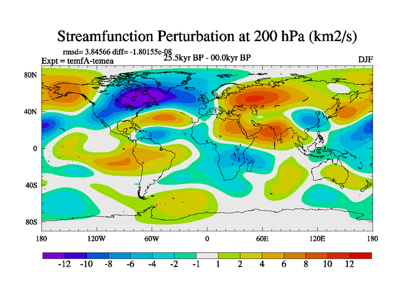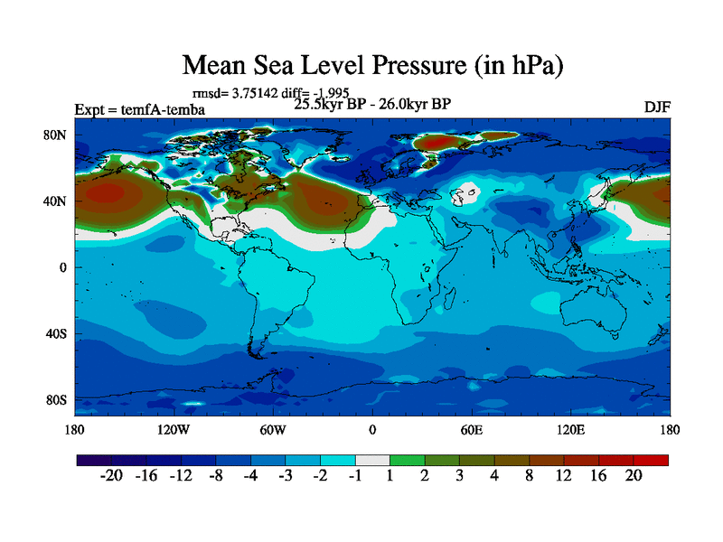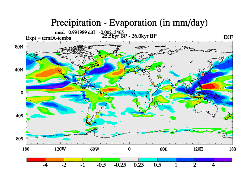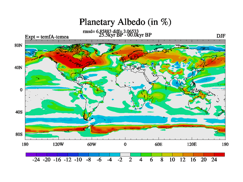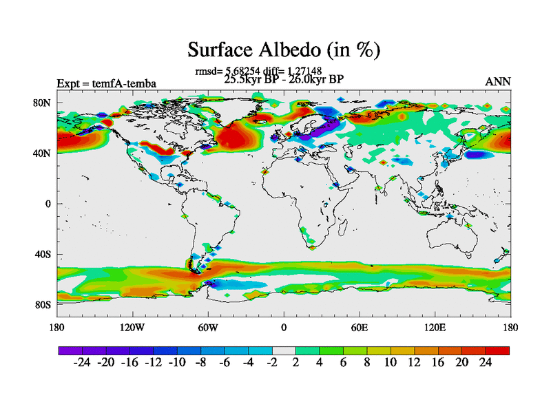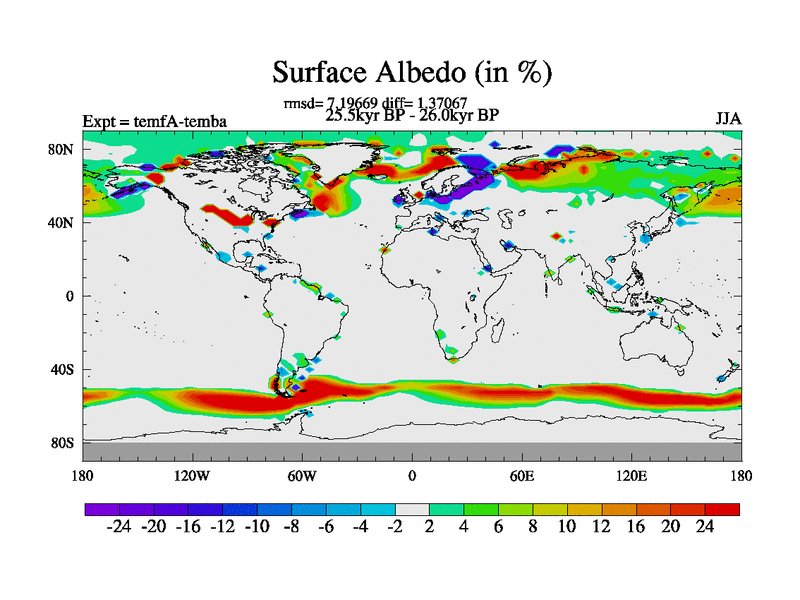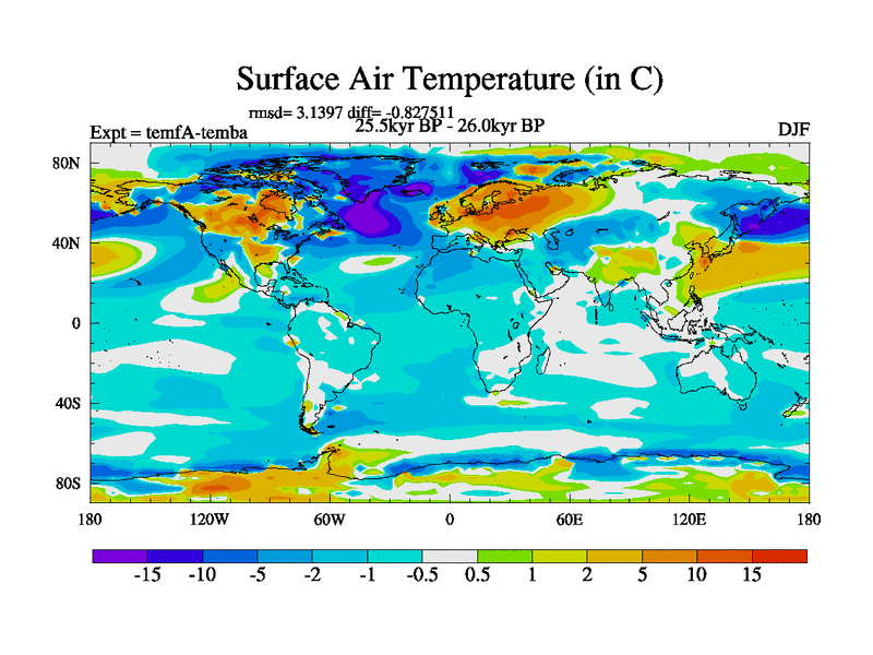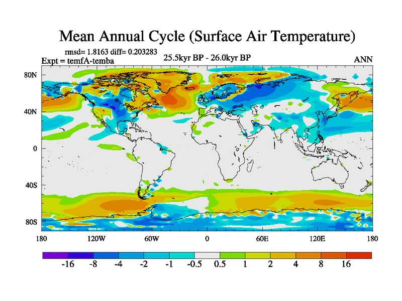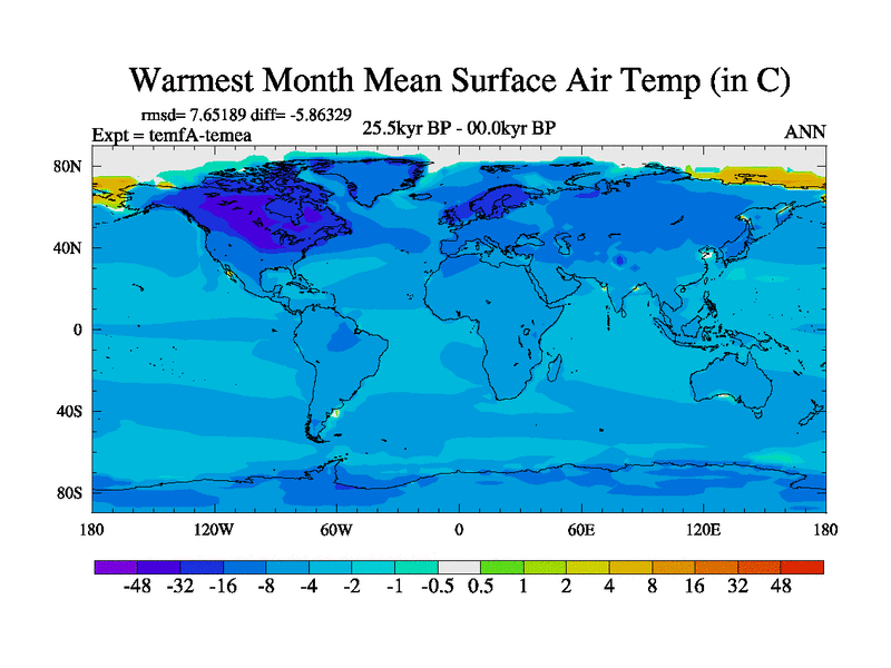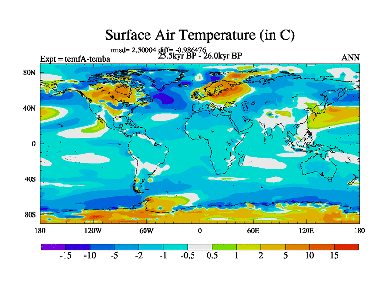 This is the 25.5 kyr BP simulation for a new set of deglaciation BBC runs using GLAC-1D and TRIFFID. Dynamic mode. No meltwater. Russian rivers routed to Med but only during height of glacial.
