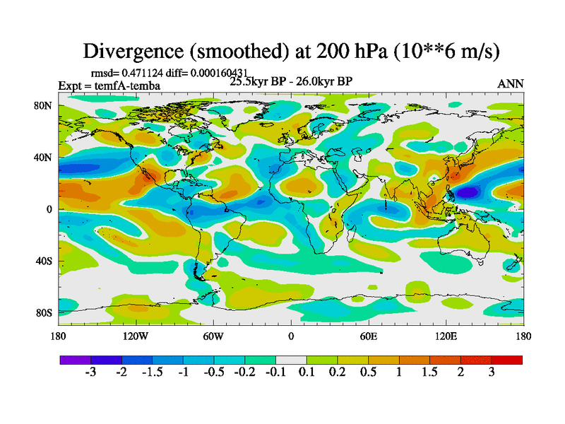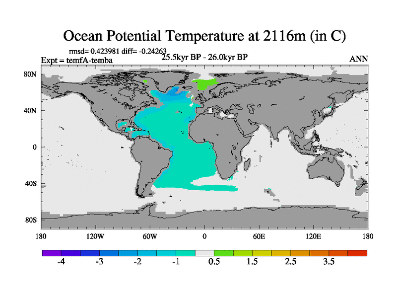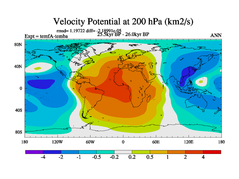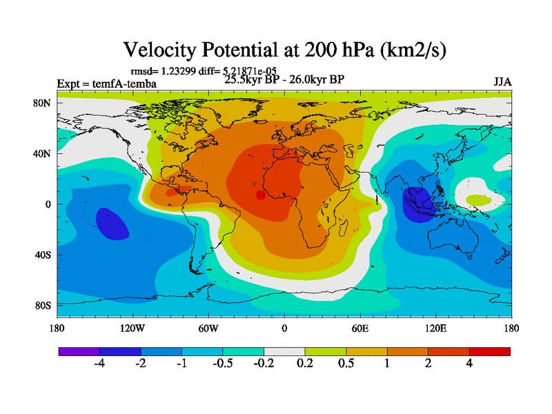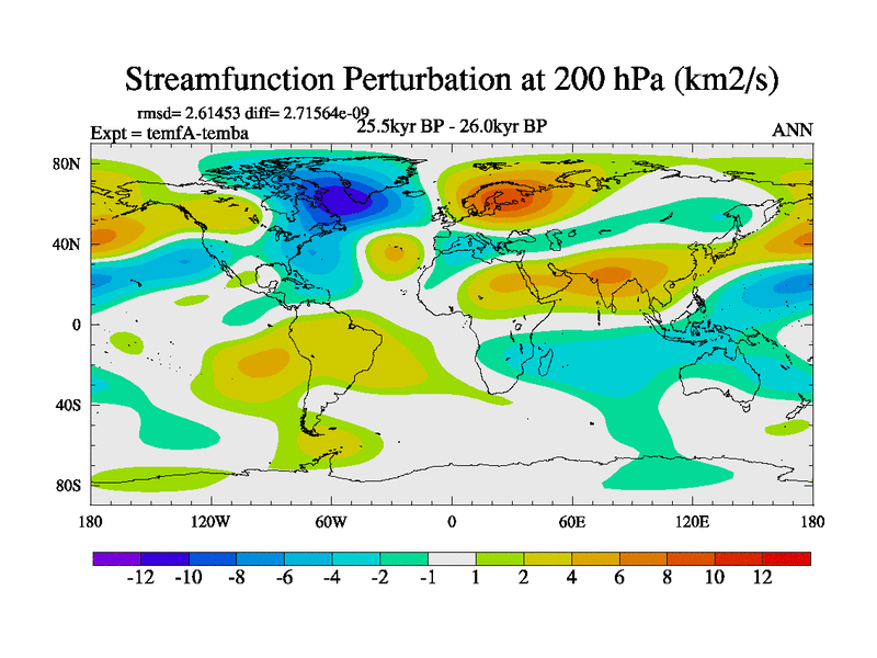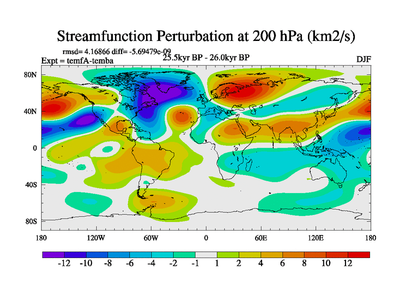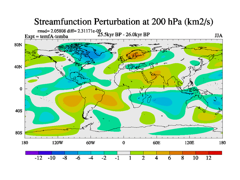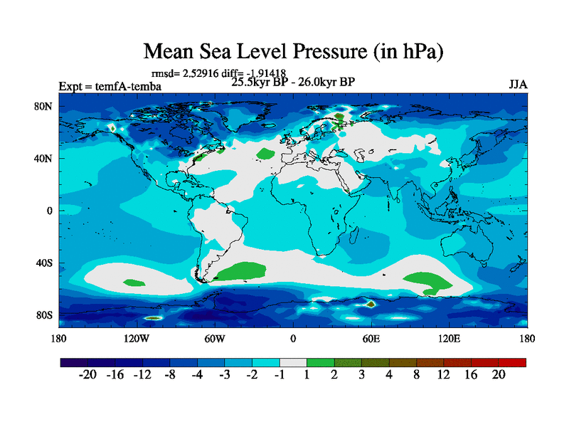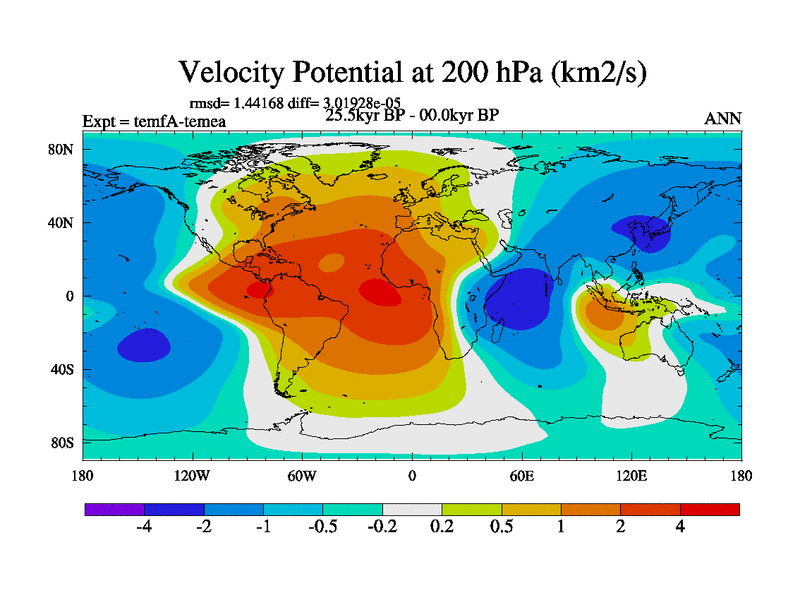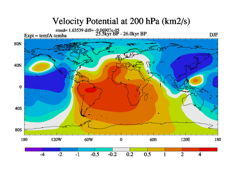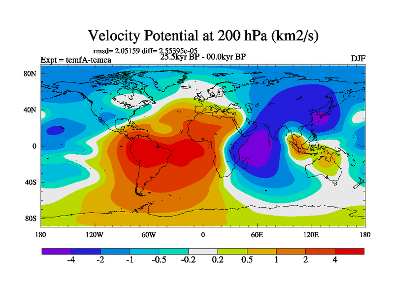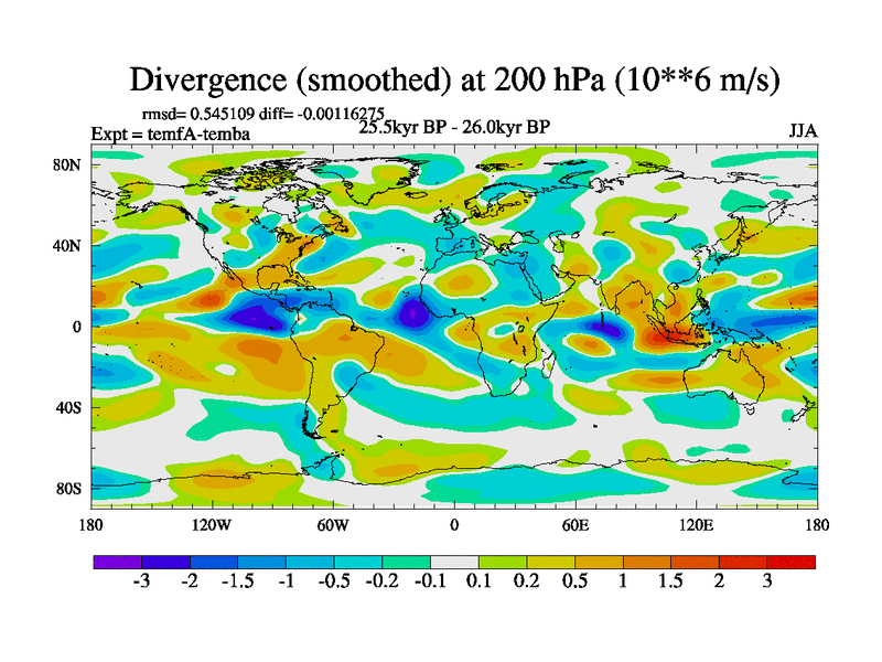 This is the 25.5 kyr BP simulation for a new set of deglaciation BBC runs using GLAC-1D and TRIFFID. Dynamic mode. No meltwater. Russian rivers routed to Med but only during height of glacial.