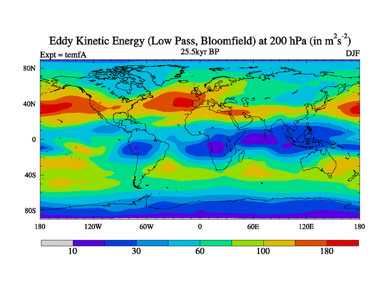 Low Pass Eddy Kinetic Energy at 200 hPa