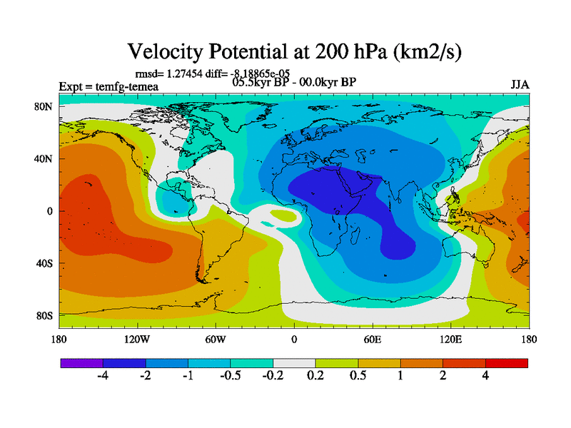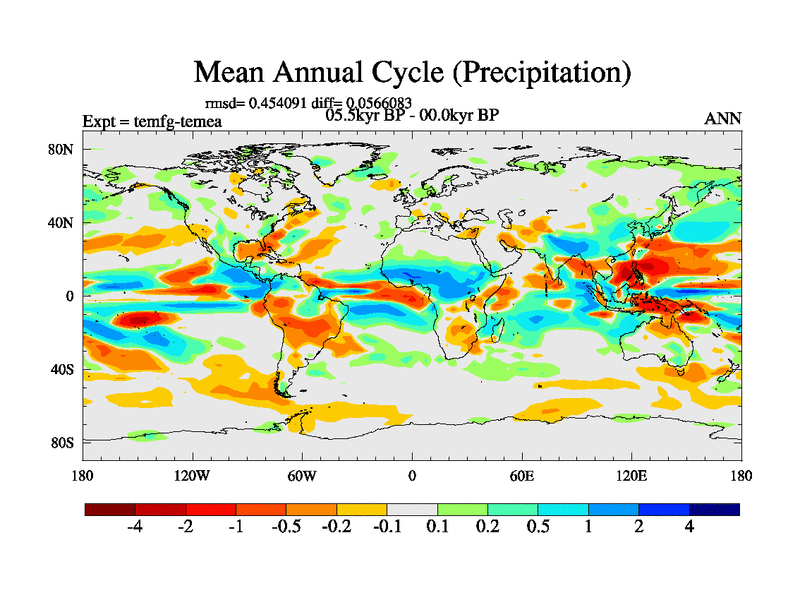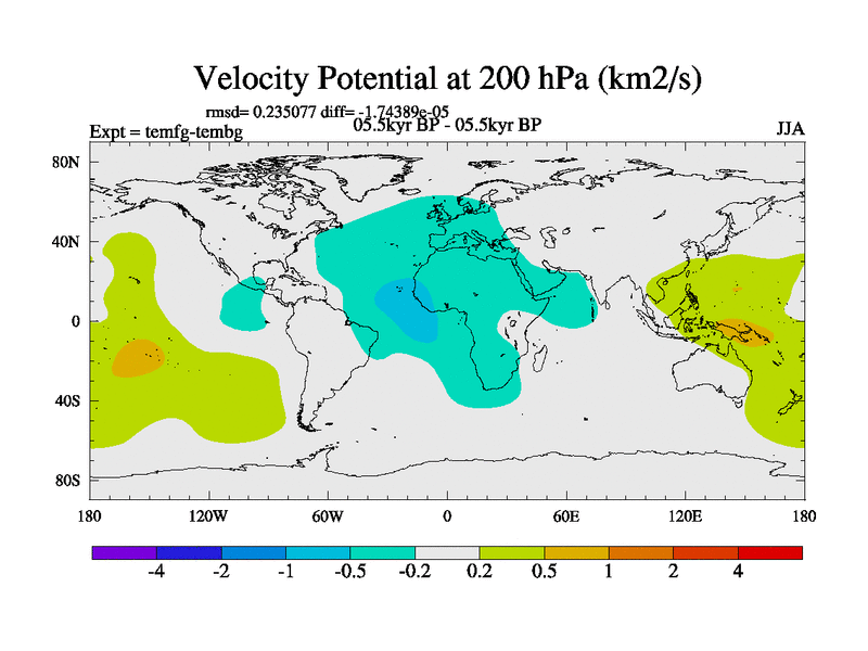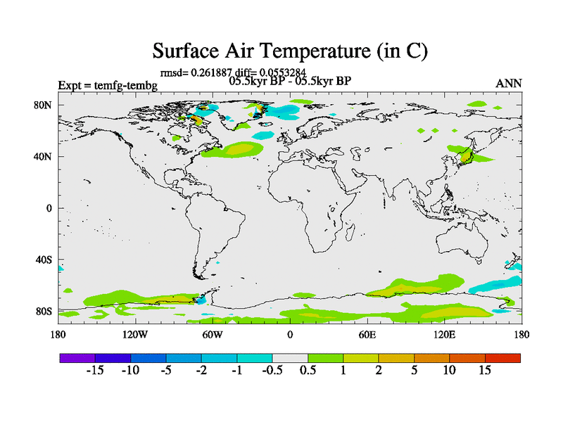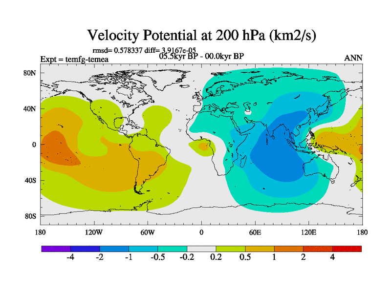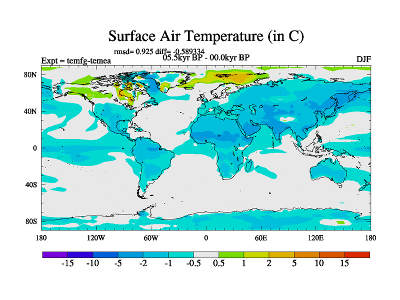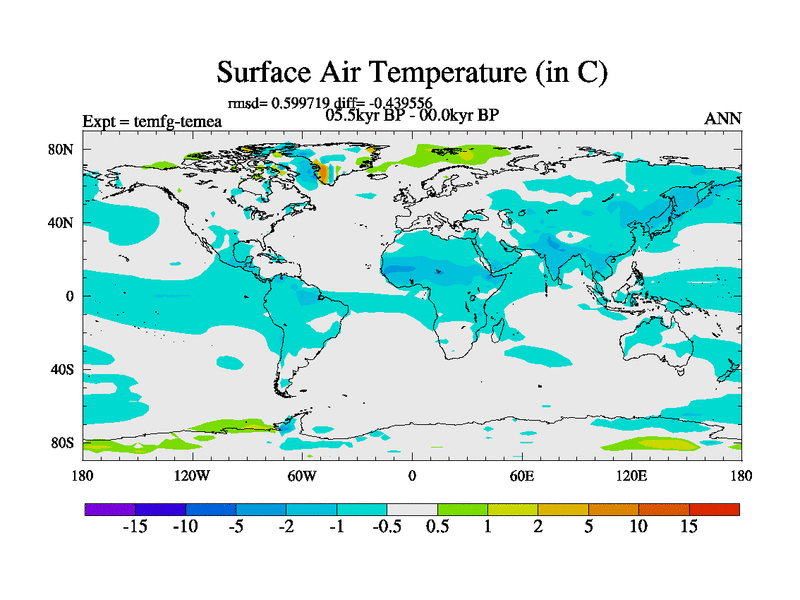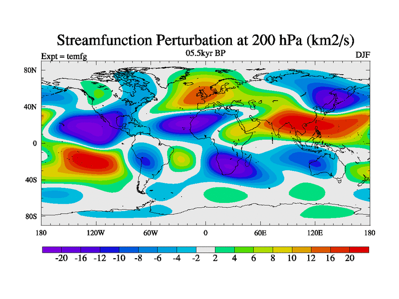 This is the 05.5 kyr BP simulation for a new set of deglaciation BBC runs using GLAC-1D and TRIFFID. Dynamic mode. No meltwater. Russian rivers routed to Med but only during height of glacial.