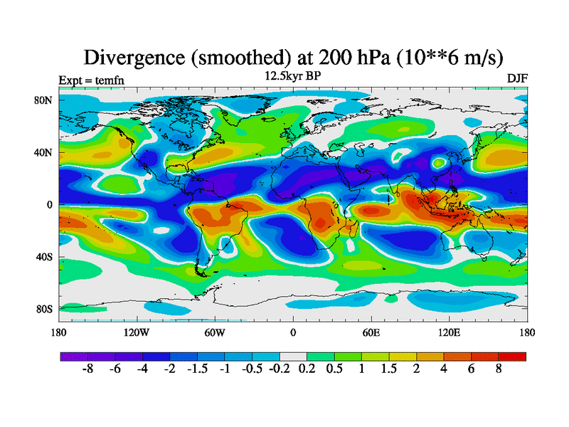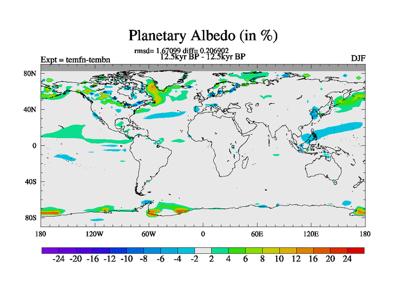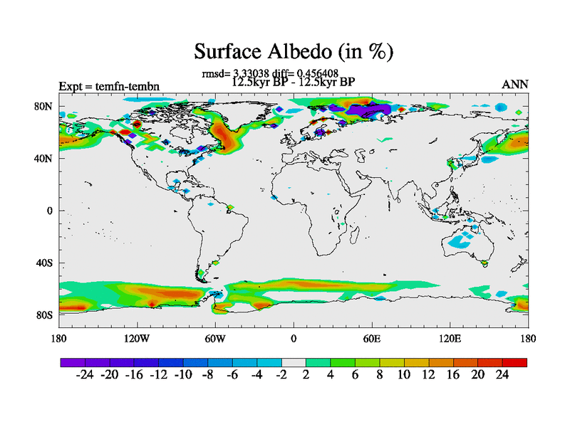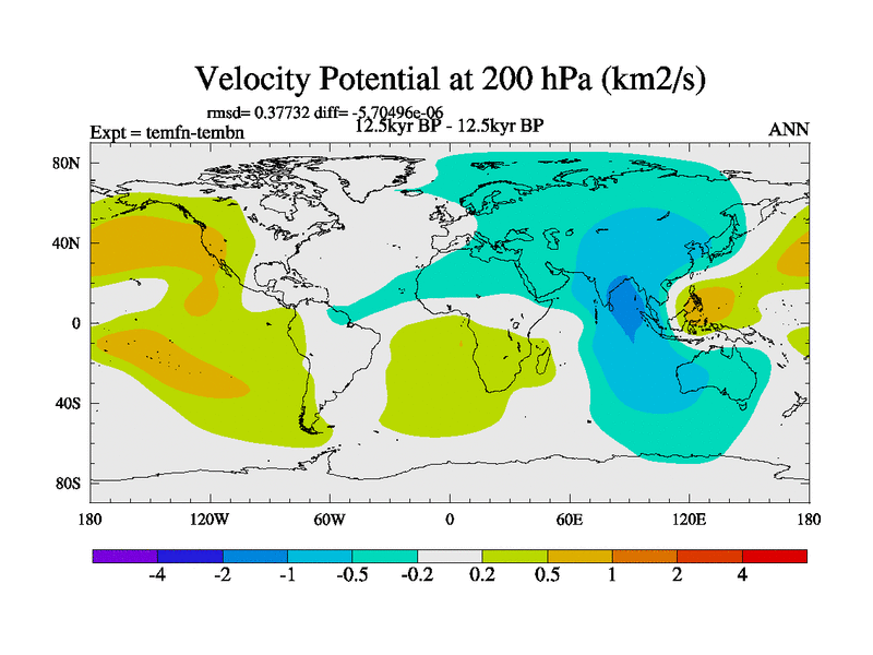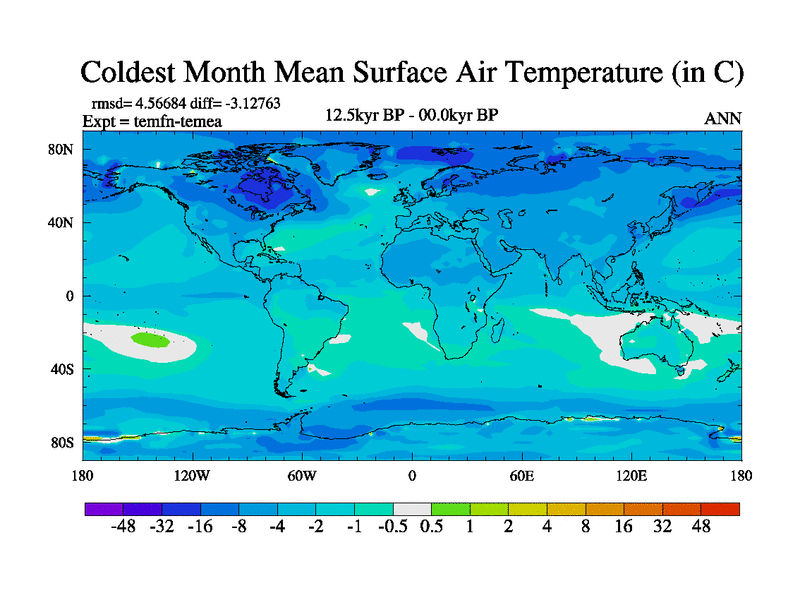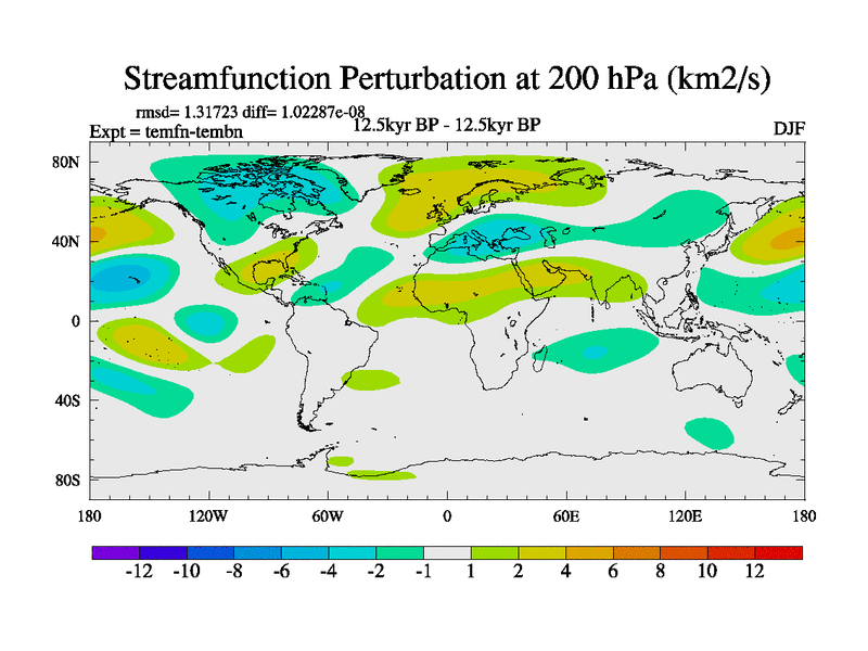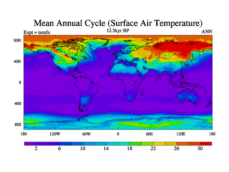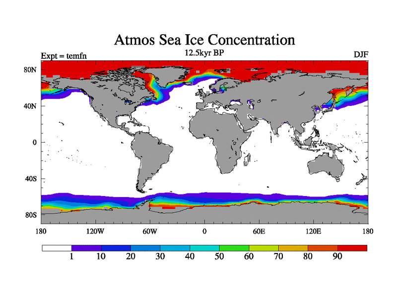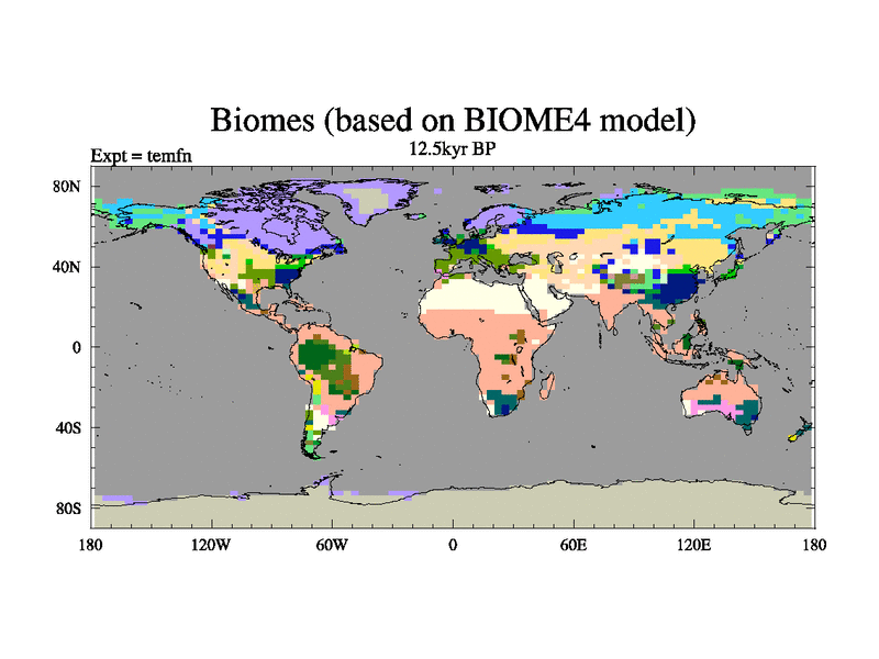 This is the 12.5 kyr BP simulation for a new set of deglaciation BBC runs using GLAC-1D and TRIFFID. Dynamic mode. No meltwater. Russian rivers routed to Med but only during height of glacial.
