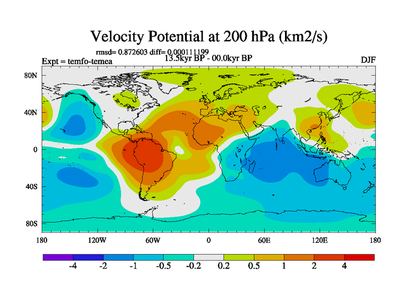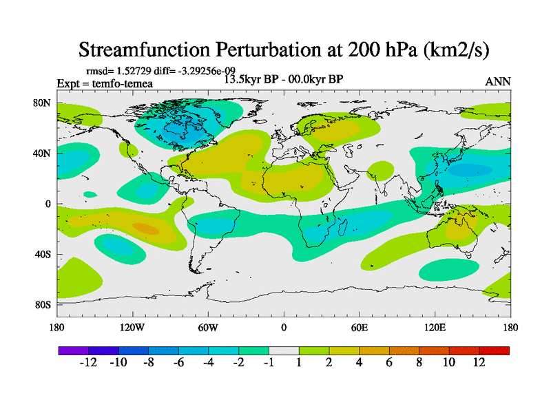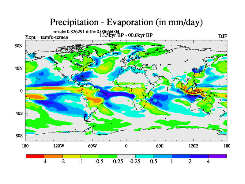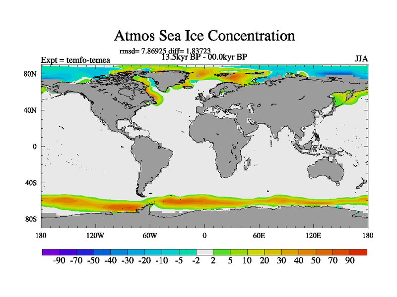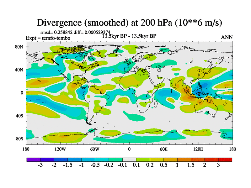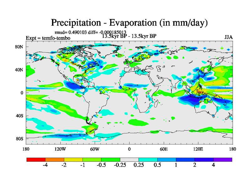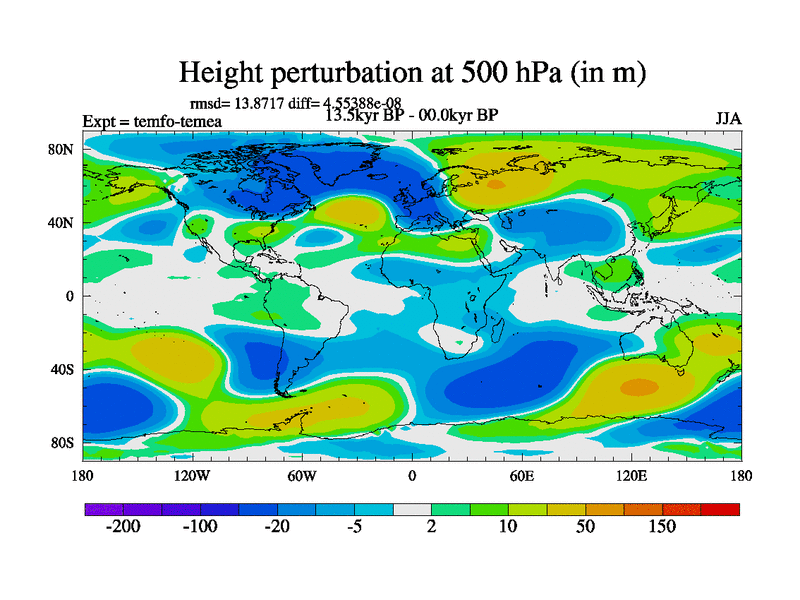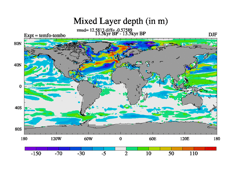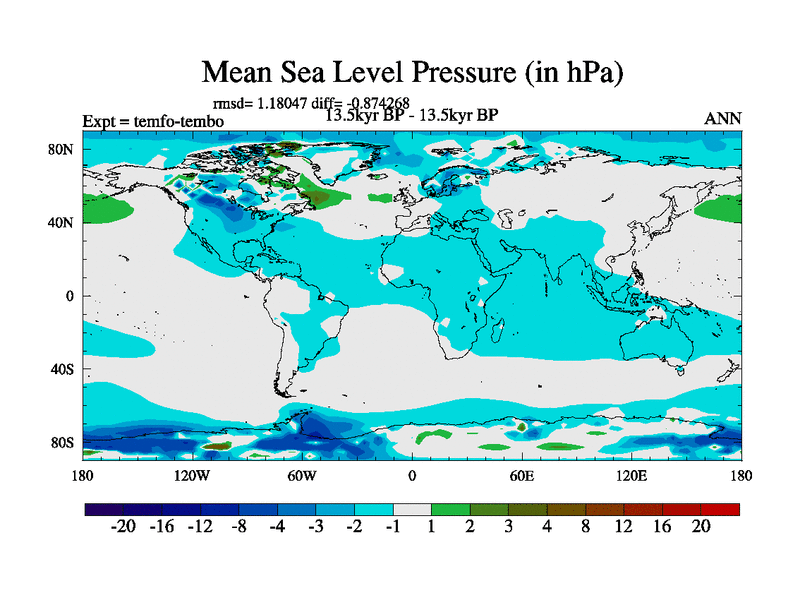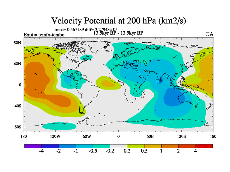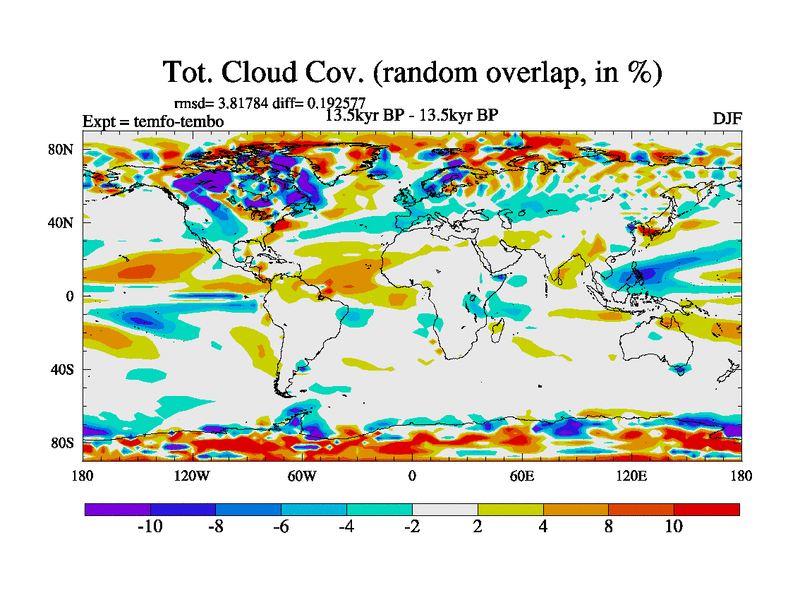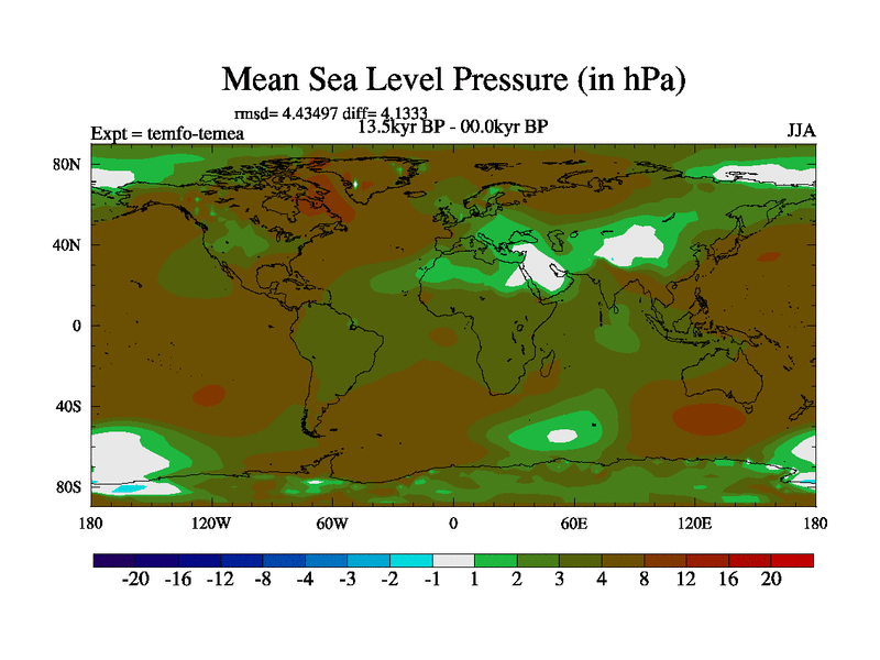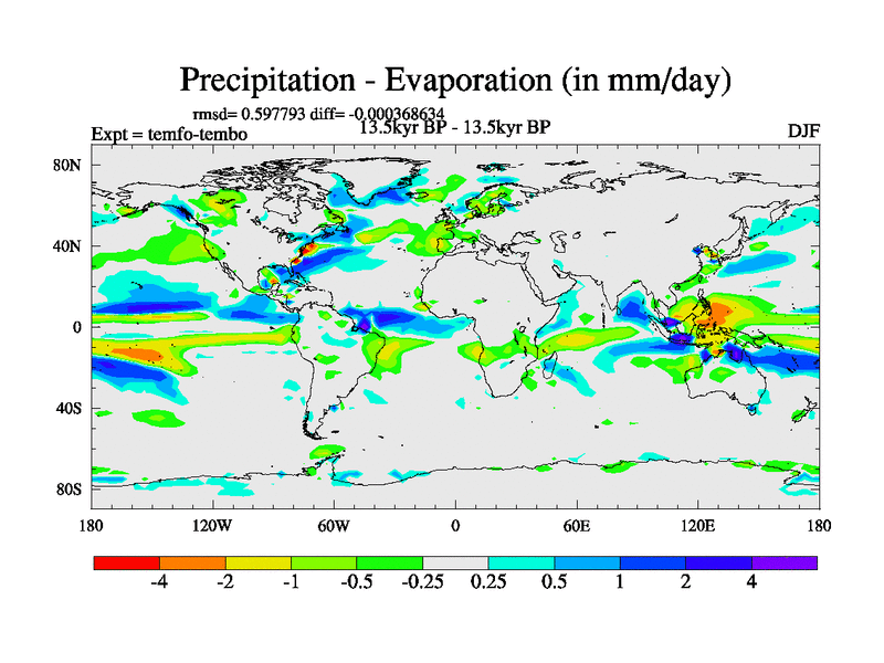 This is the 13.5 kyr BP simulation for a new set of deglaciation BBC runs using GLAC-1D and TRIFFID. Dynamic mode. No meltwater. Russian rivers routed to Med but only during height of glacial.
