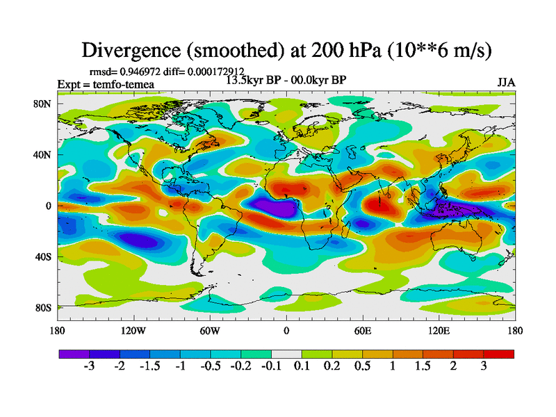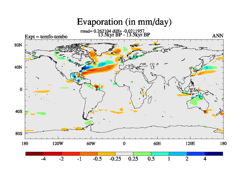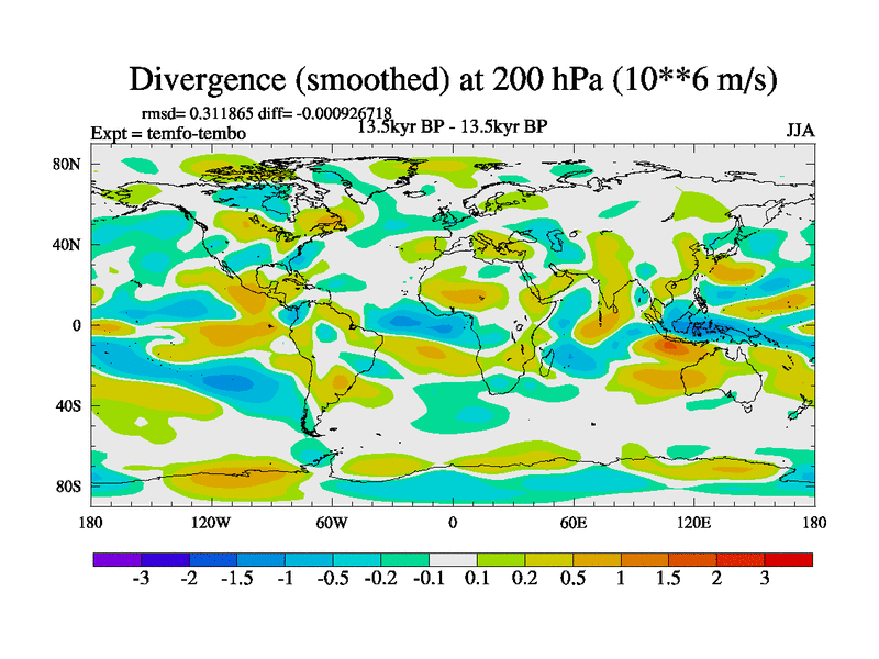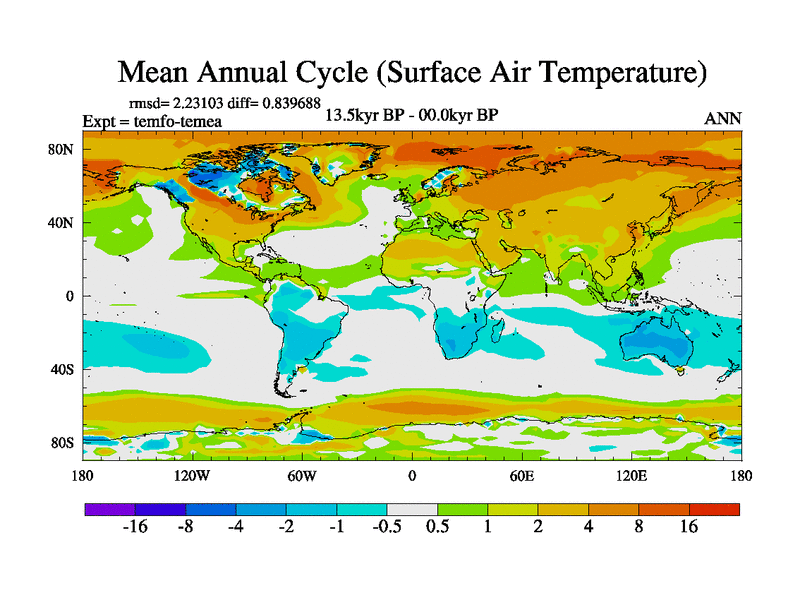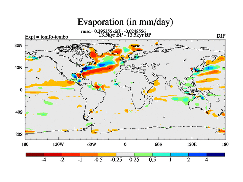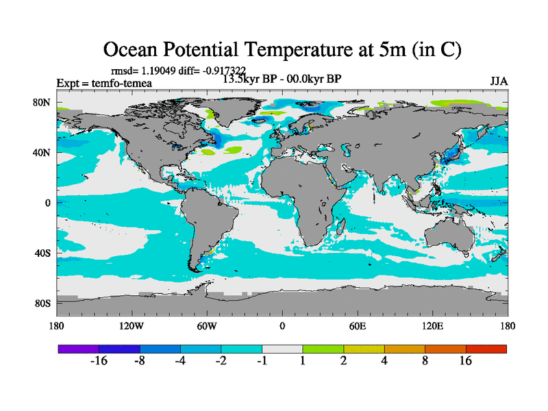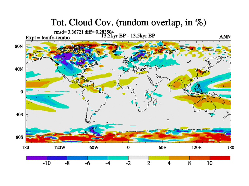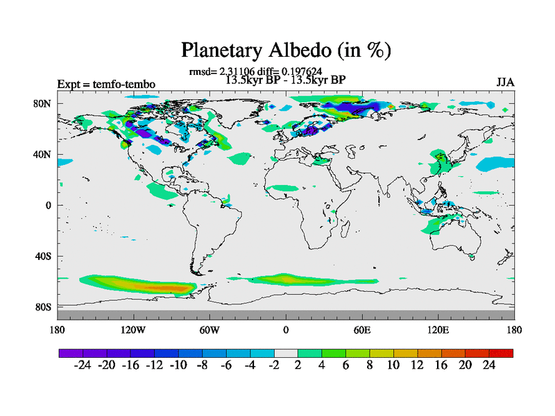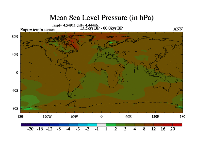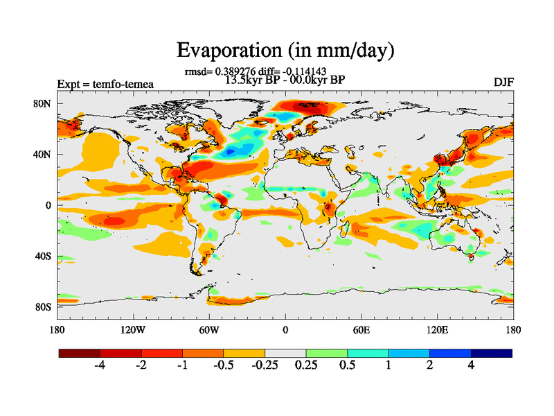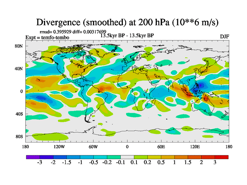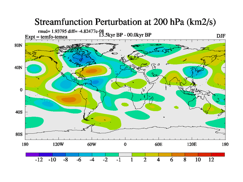 This is the 13.5 kyr BP simulation for a new set of deglaciation BBC runs using GLAC-1D and TRIFFID. Dynamic mode. No meltwater. Russian rivers routed to Med but only during height of glacial.