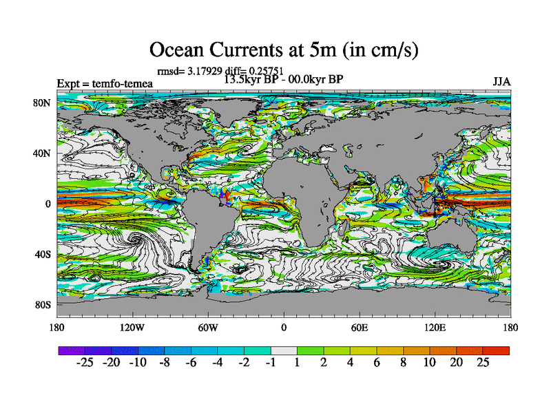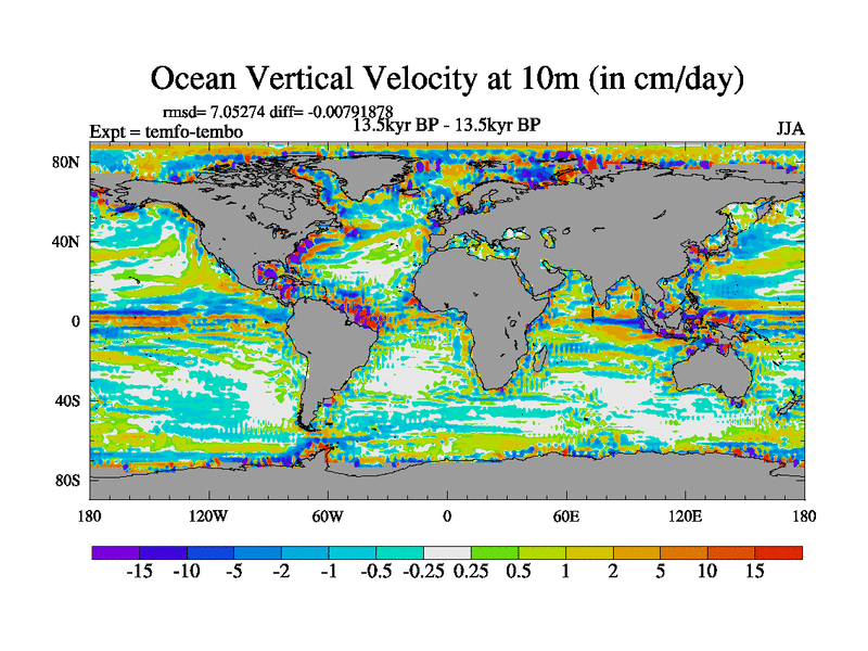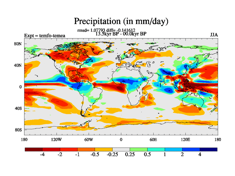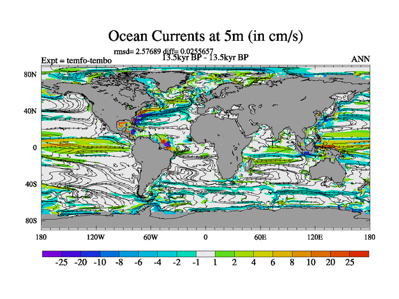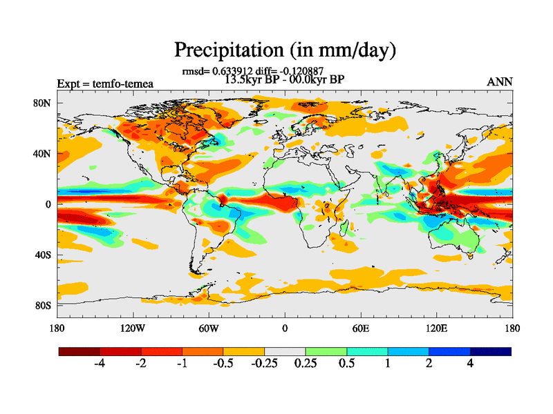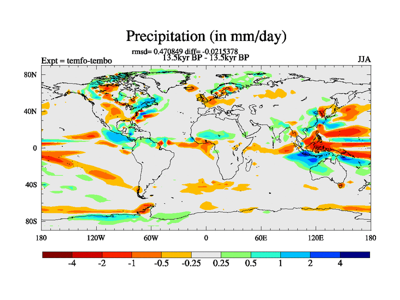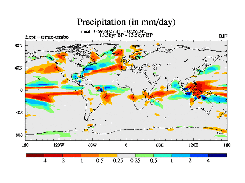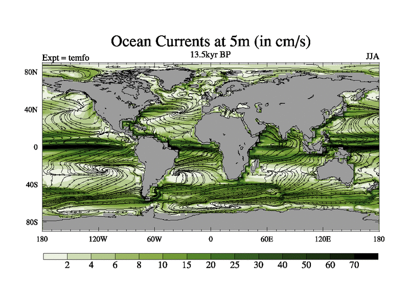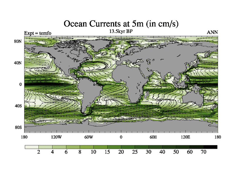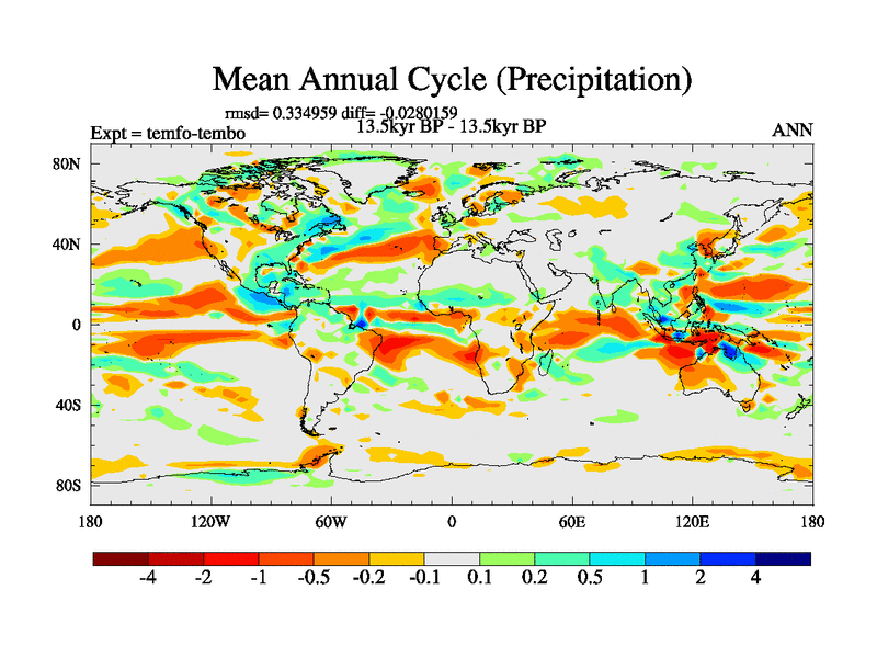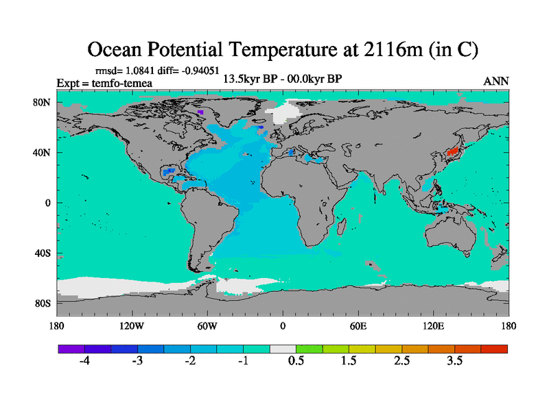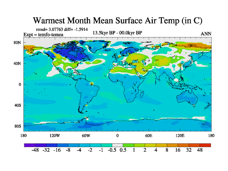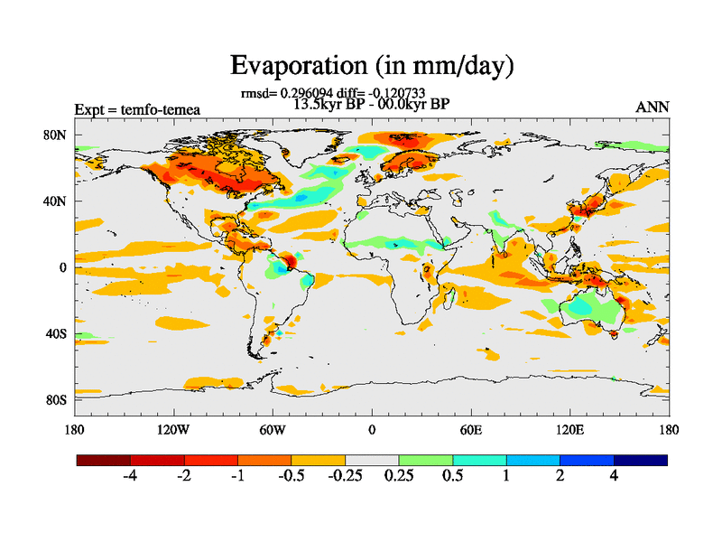 This is the 13.5 kyr BP simulation for a new set of deglaciation BBC runs using GLAC-1D and TRIFFID. Dynamic mode. No meltwater. Russian rivers routed to Med but only during height of glacial.