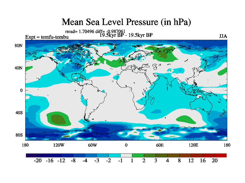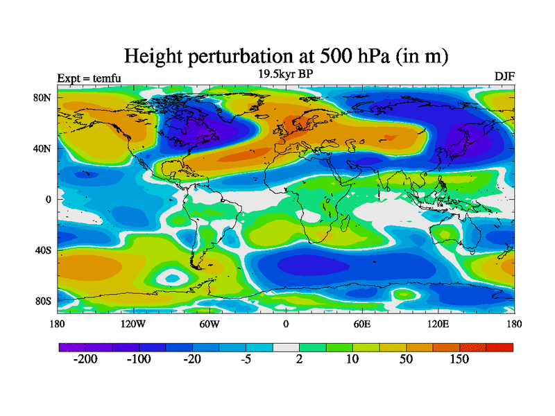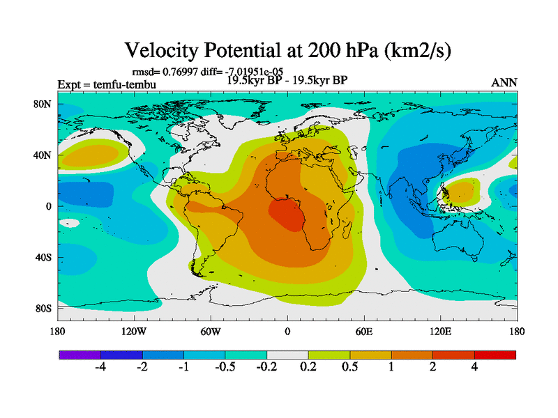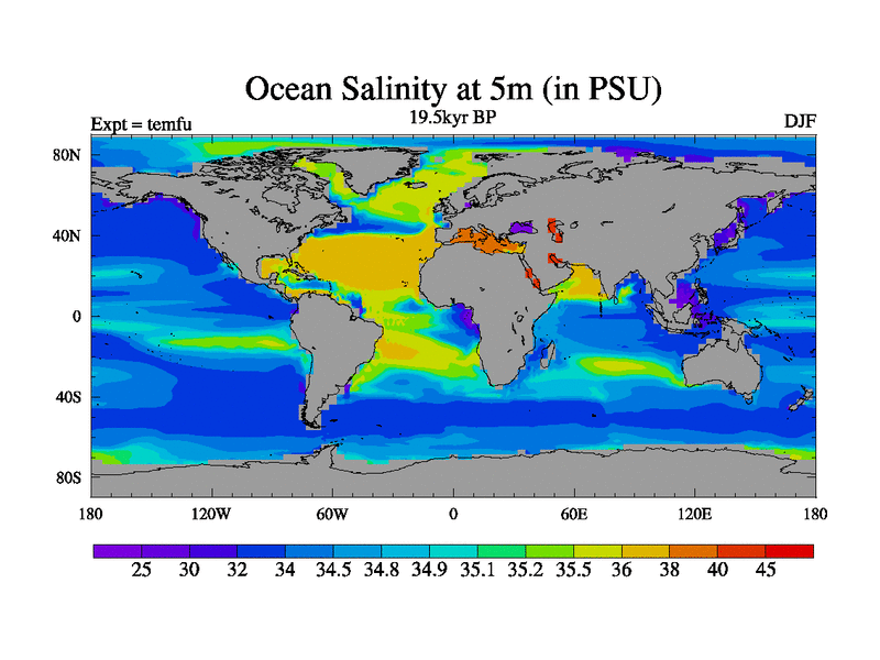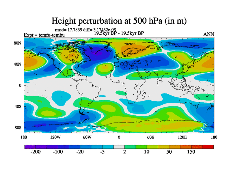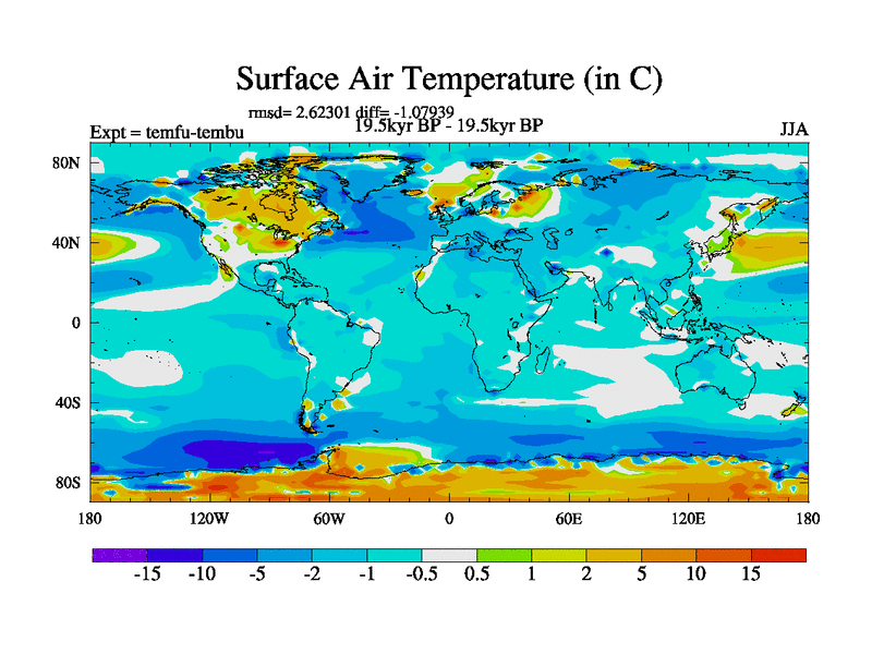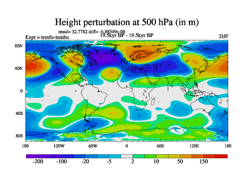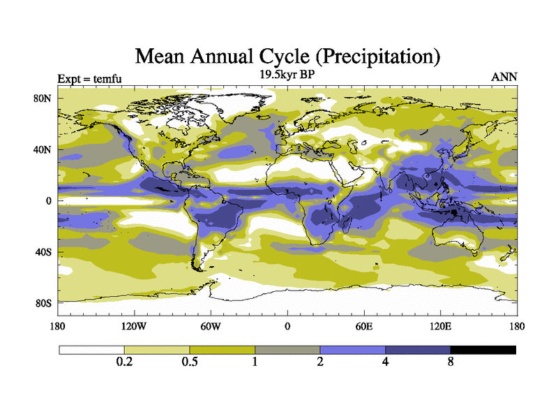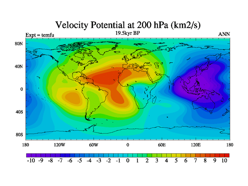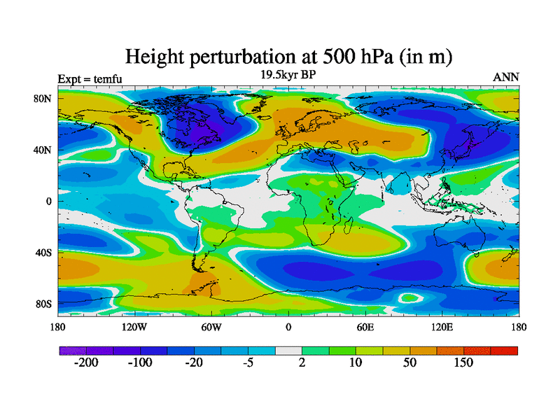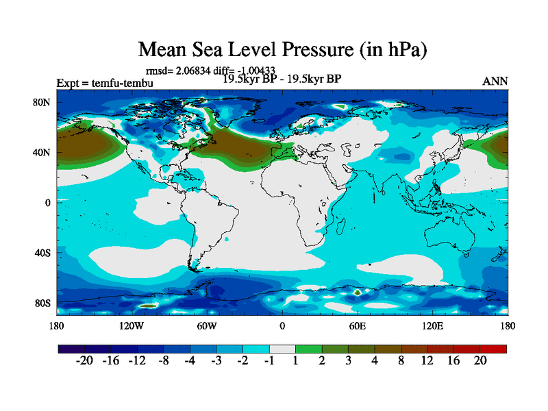 This is the 19.5 kyr BP simulation for a new set of deglaciation BBC runs using GLAC-1D and TRIFFID. Dynamic mode. No meltwater. Russian rivers routed to Med but only during height of glacial.