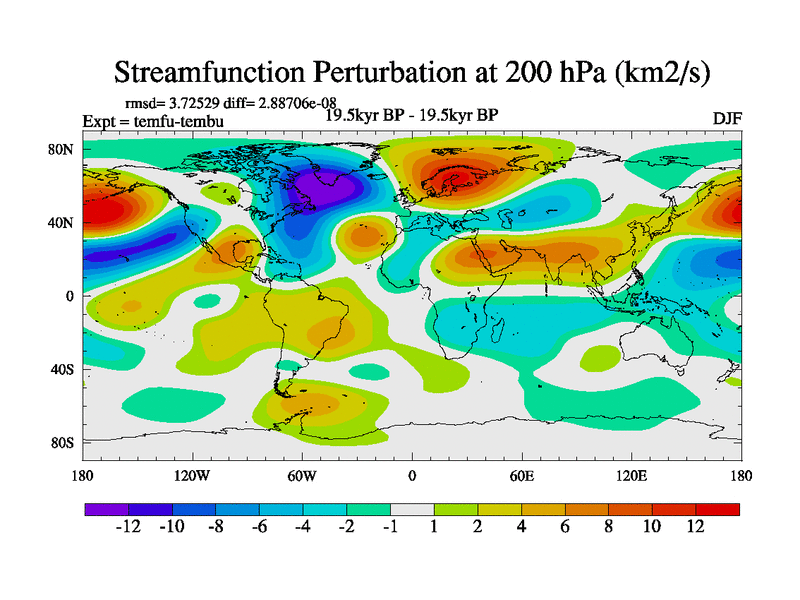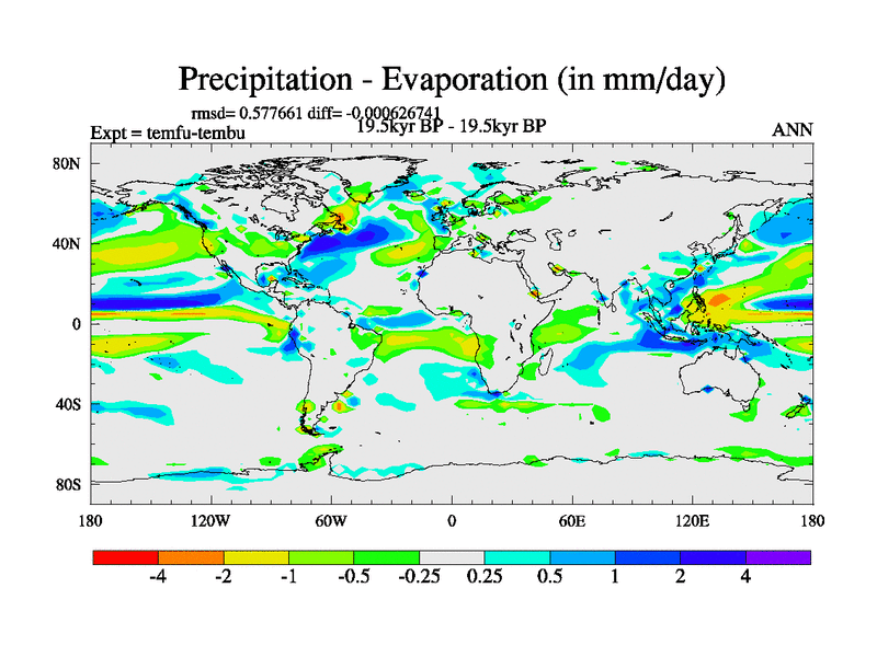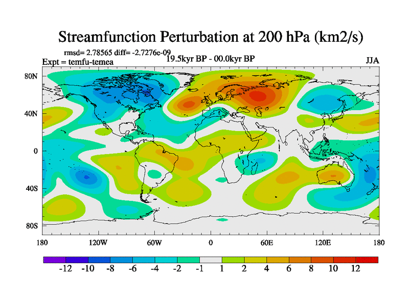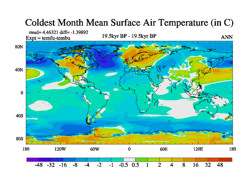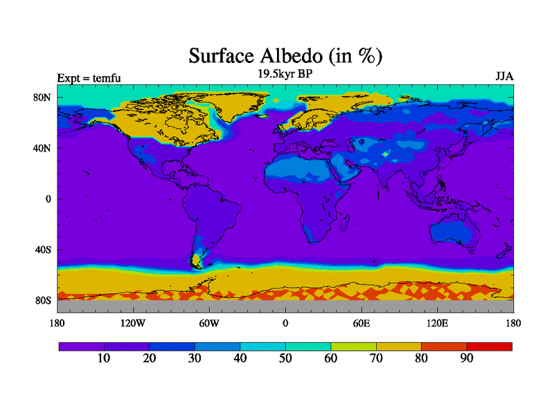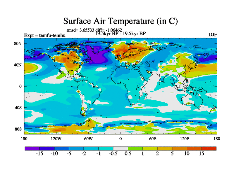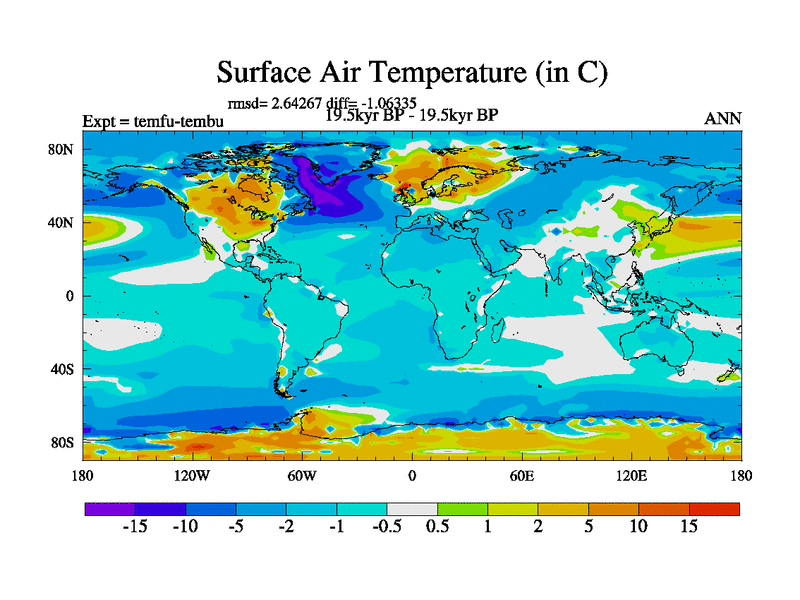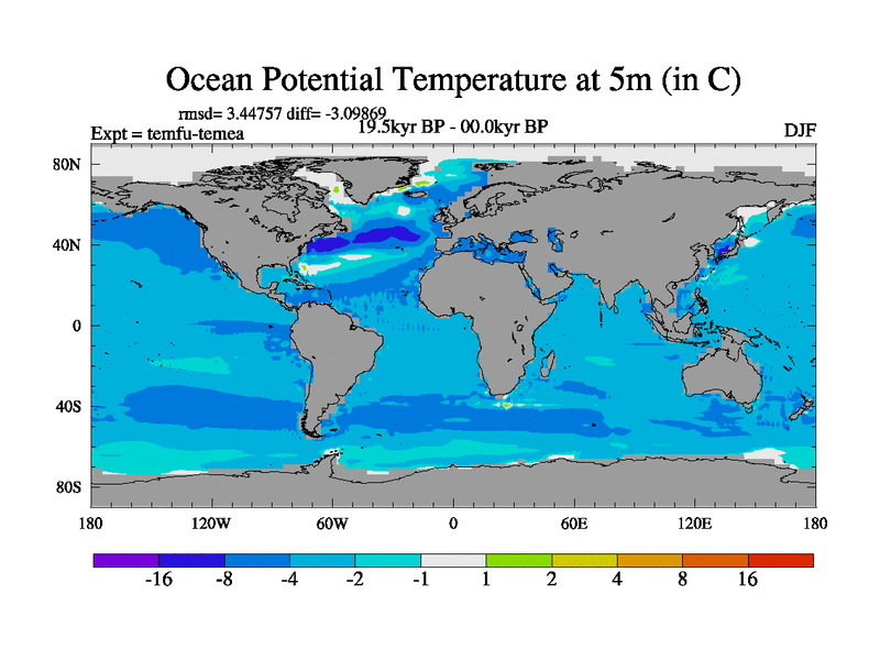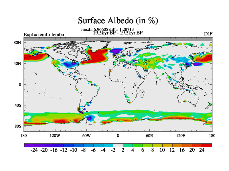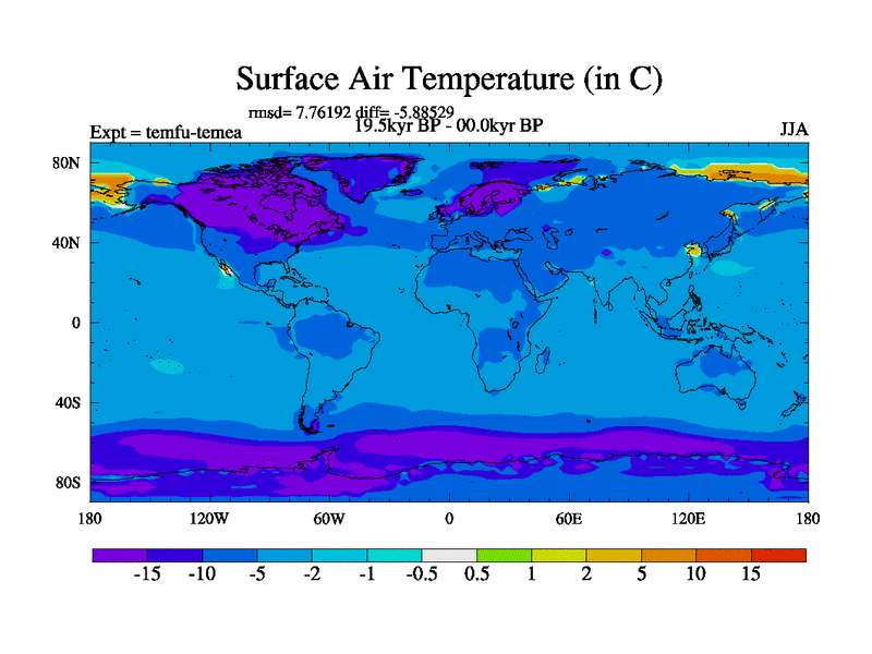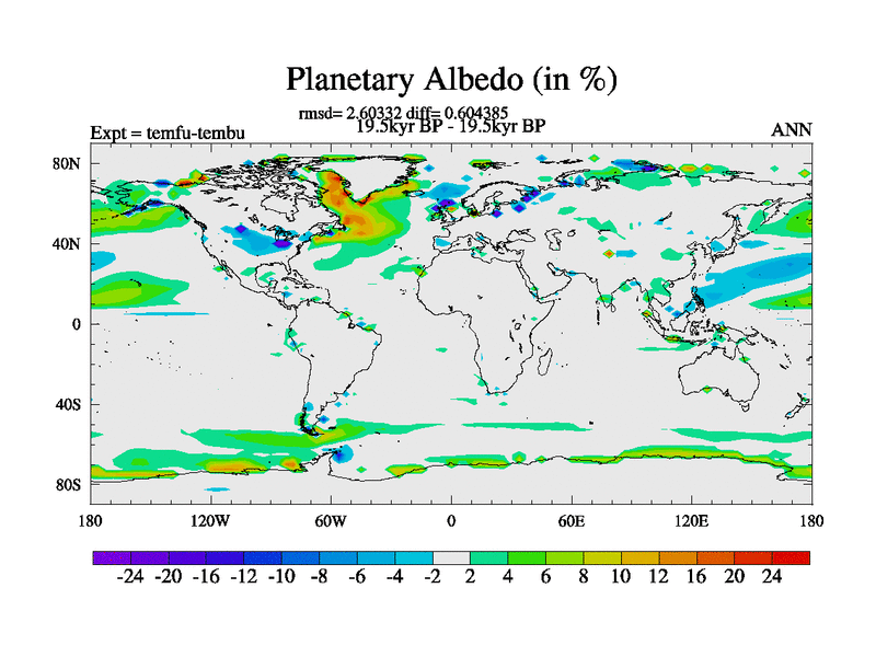 This is the 19.5 kyr BP simulation for a new set of deglaciation BBC runs using GLAC-1D and TRIFFID. Dynamic mode. No meltwater. Russian rivers routed to Med but only during height of glacial.