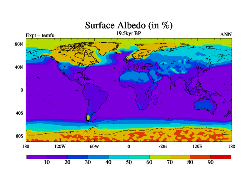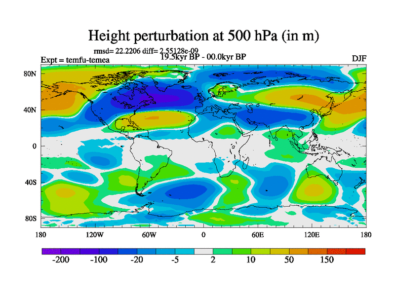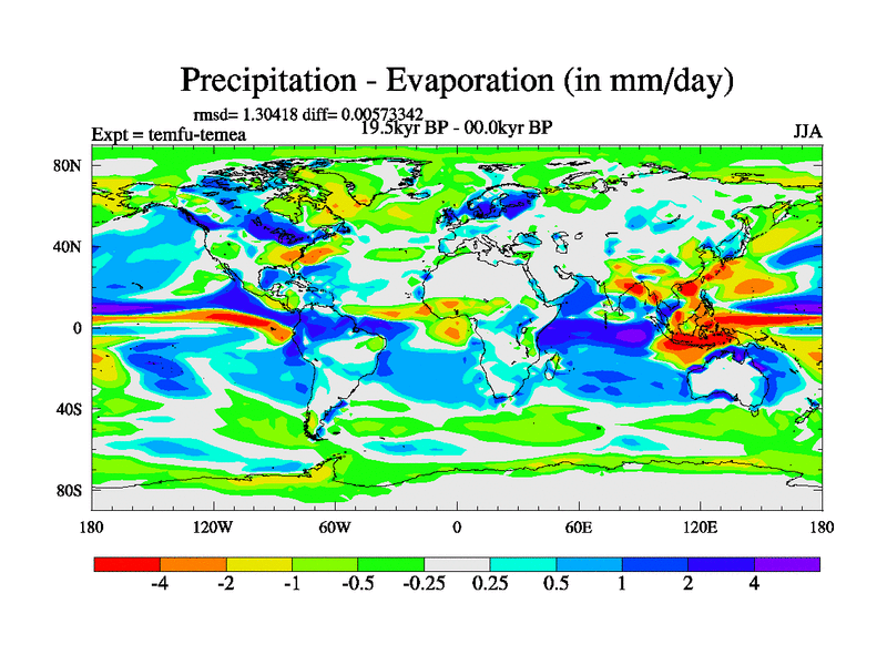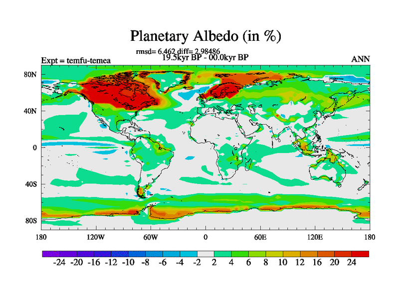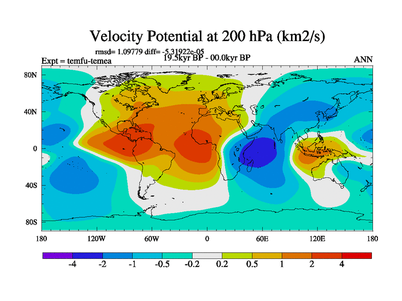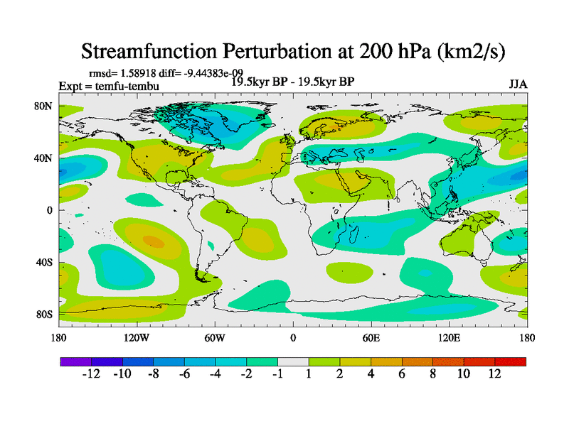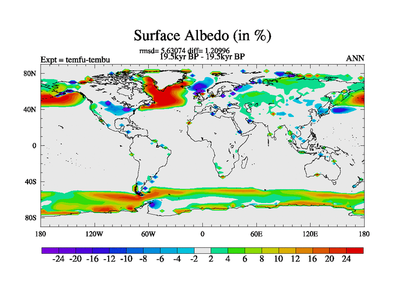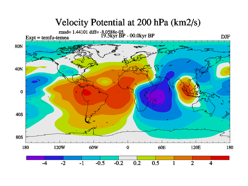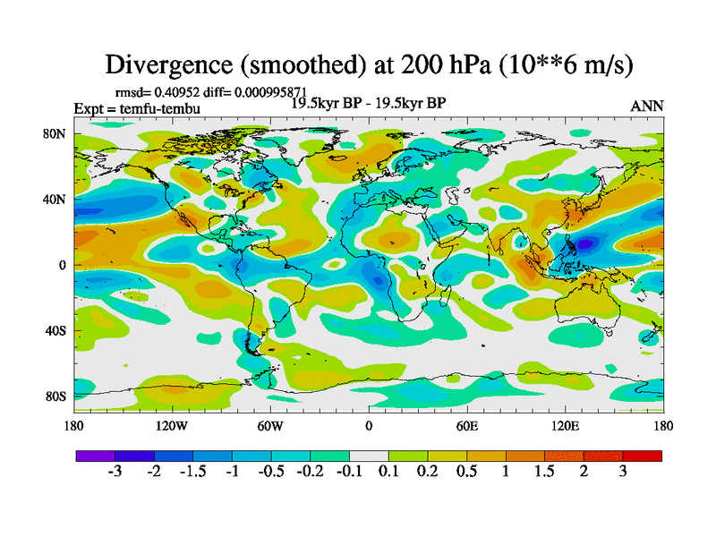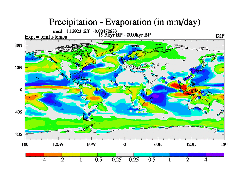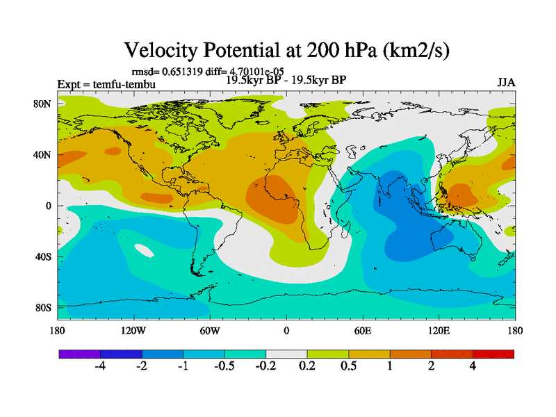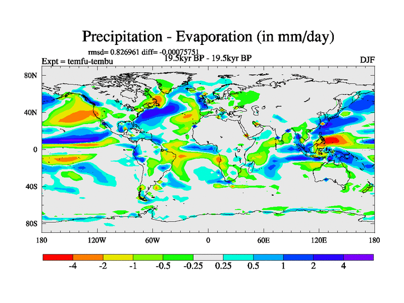 This is the 19.5 kyr BP simulation for a new set of deglaciation BBC runs using GLAC-1D and TRIFFID. Dynamic mode. No meltwater. Russian rivers routed to Med but only during height of glacial.