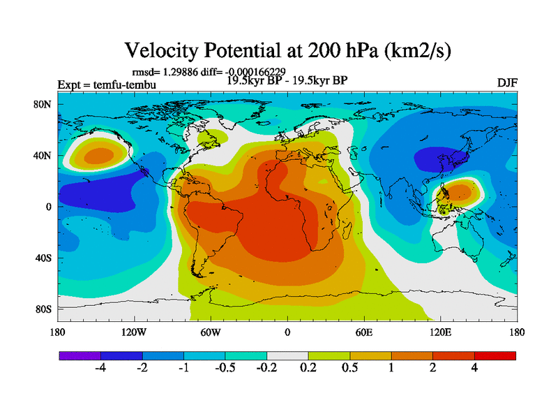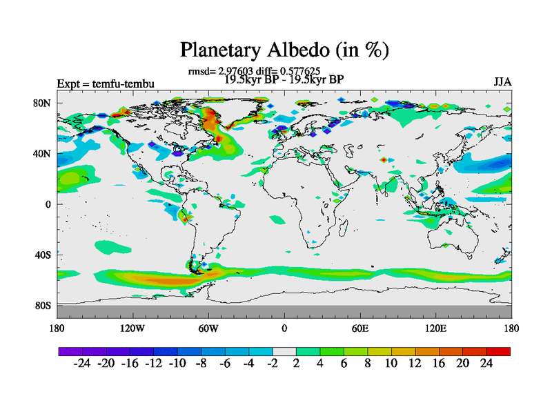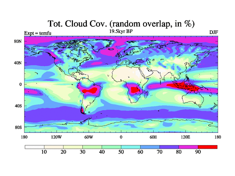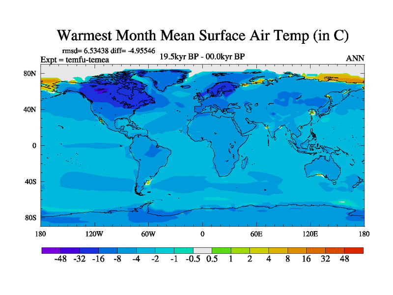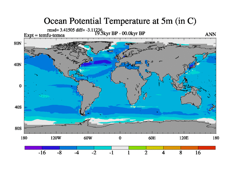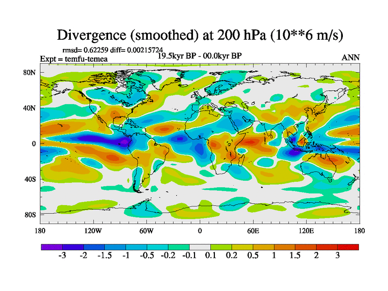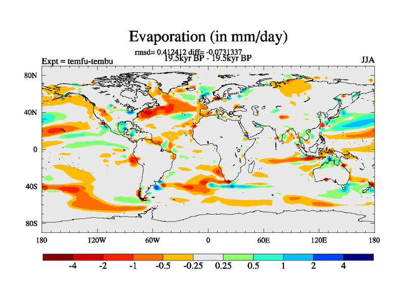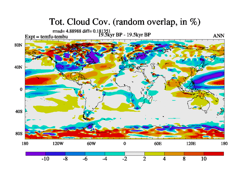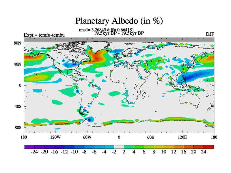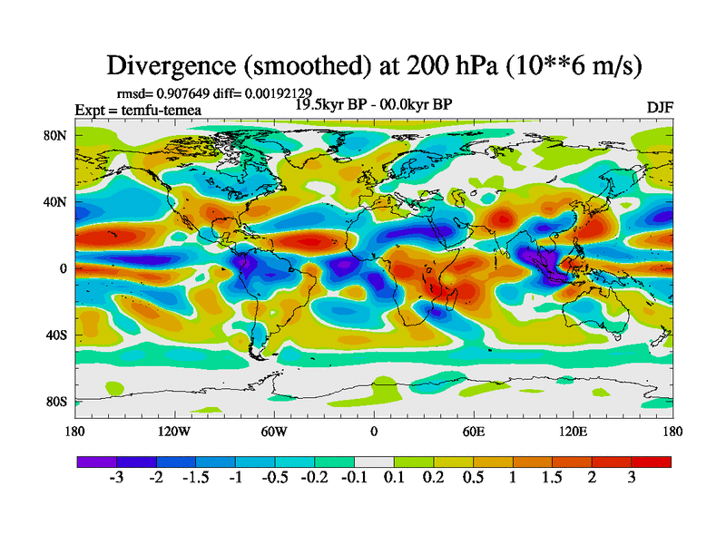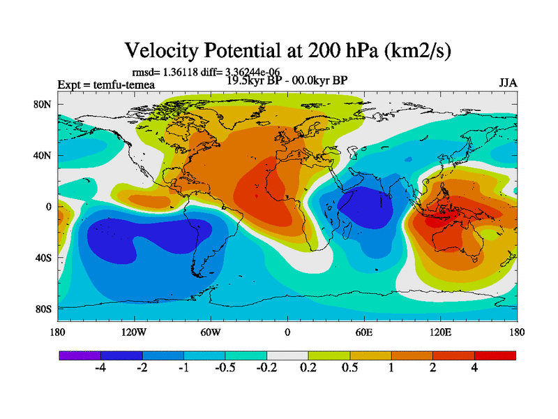 This is the 19.5 kyr BP simulation for a new set of deglaciation BBC runs using GLAC-1D and TRIFFID. Dynamic mode. No meltwater. Russian rivers routed to Med but only during height of glacial.