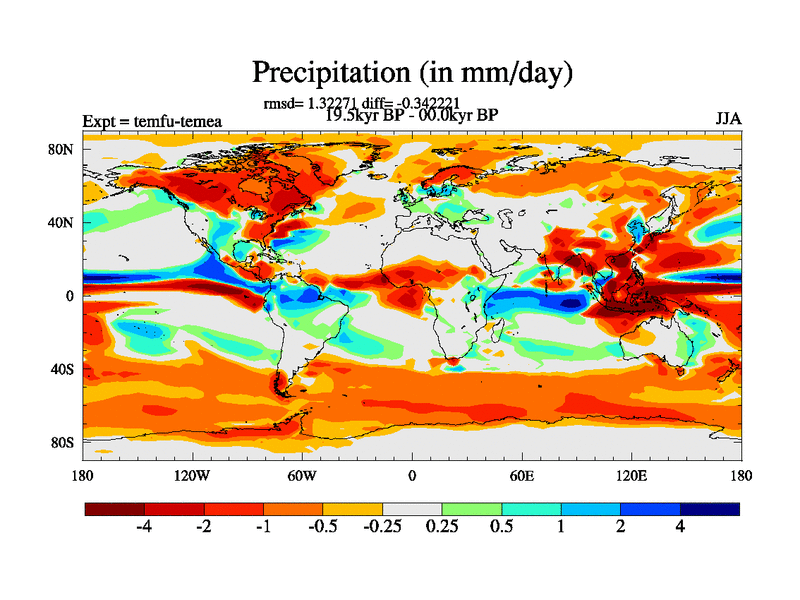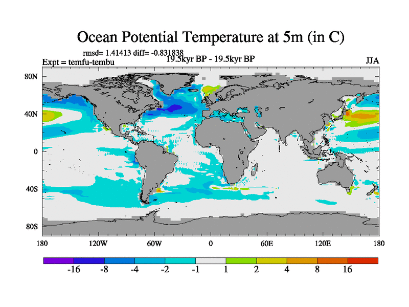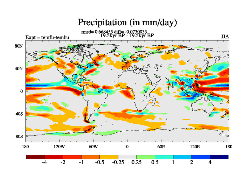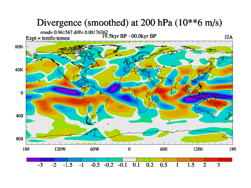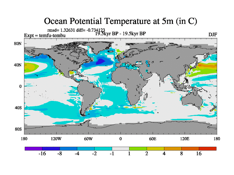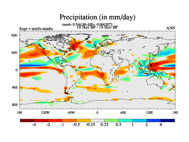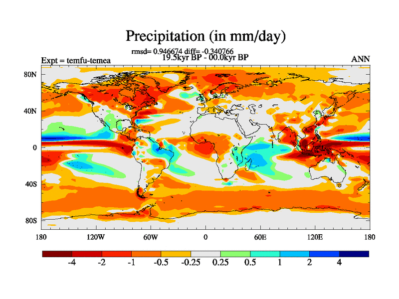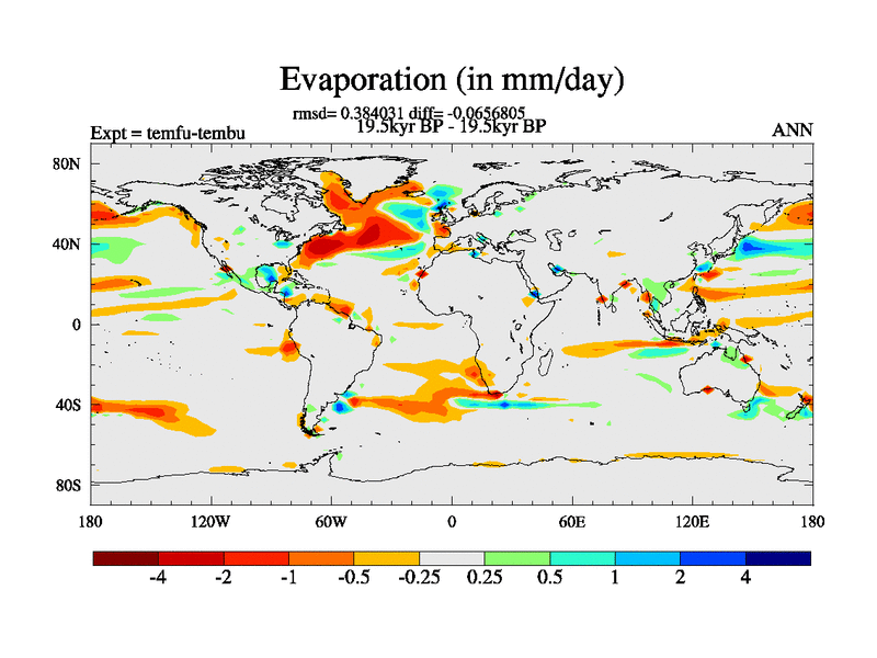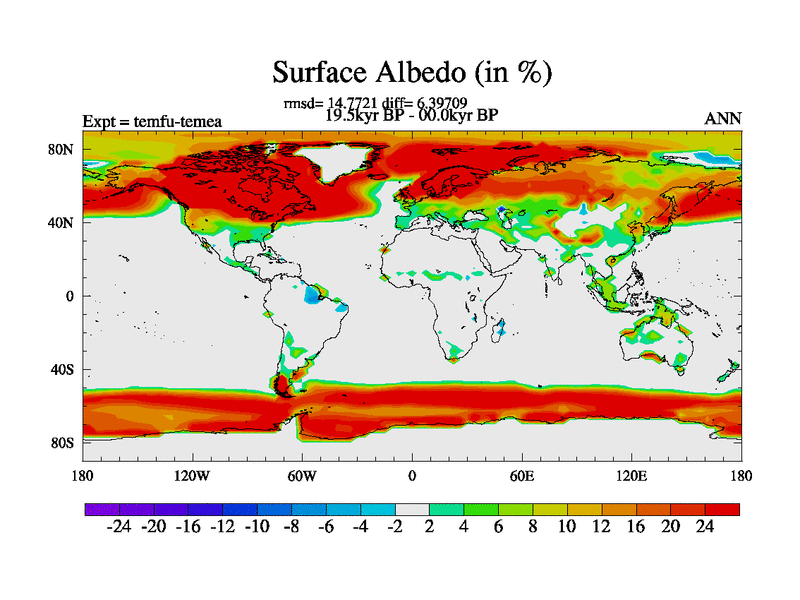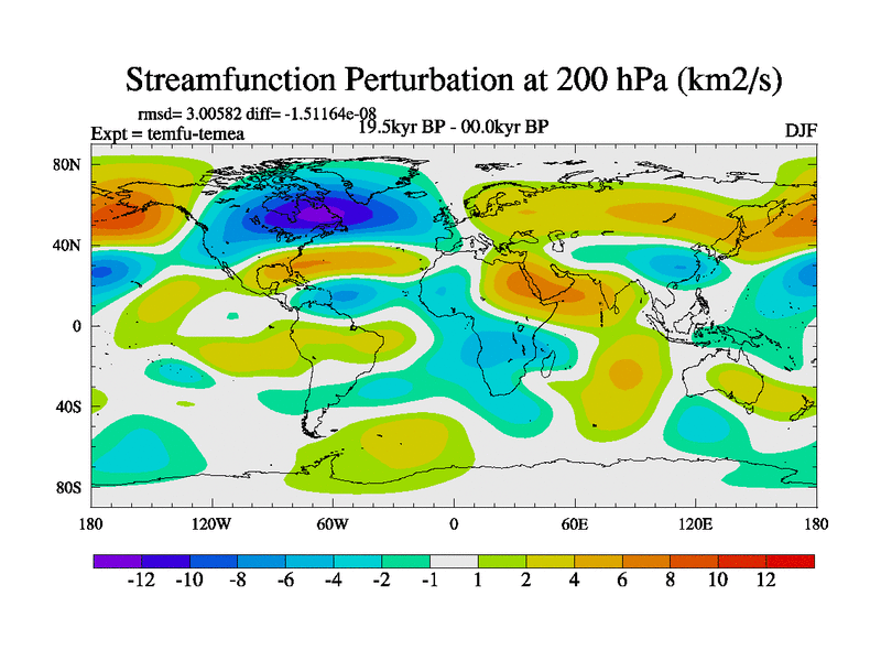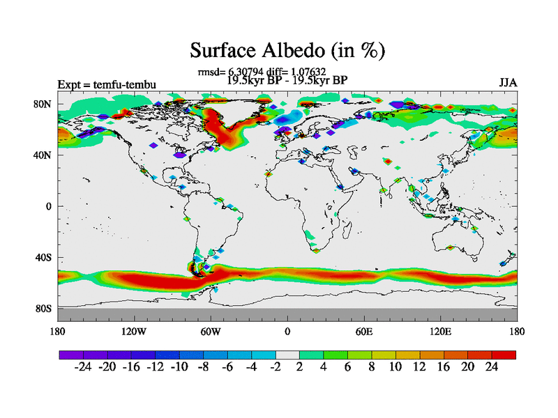 This is the 19.5 kyr BP simulation for a new set of deglaciation BBC runs using GLAC-1D and TRIFFID. Dynamic mode. No meltwater. Russian rivers routed to Med but only during height of glacial.