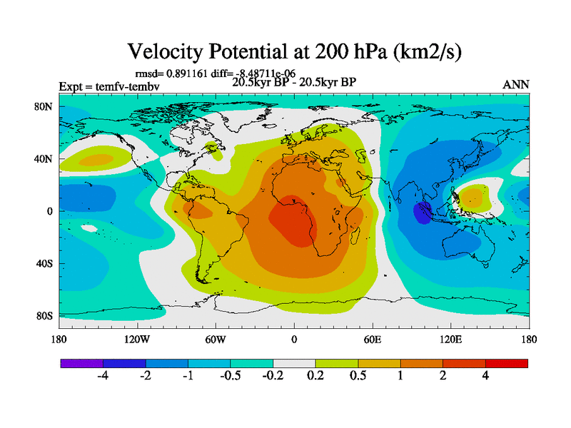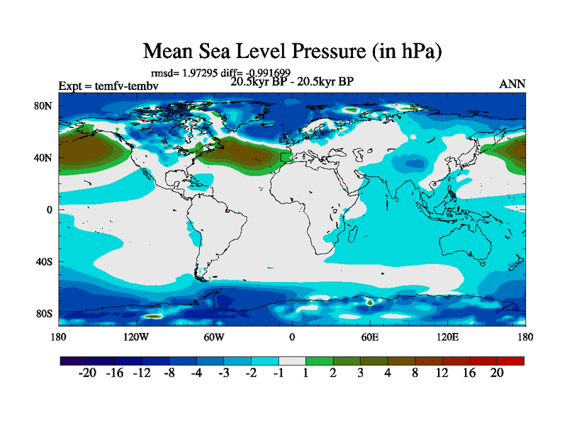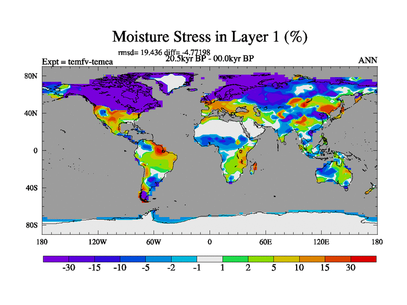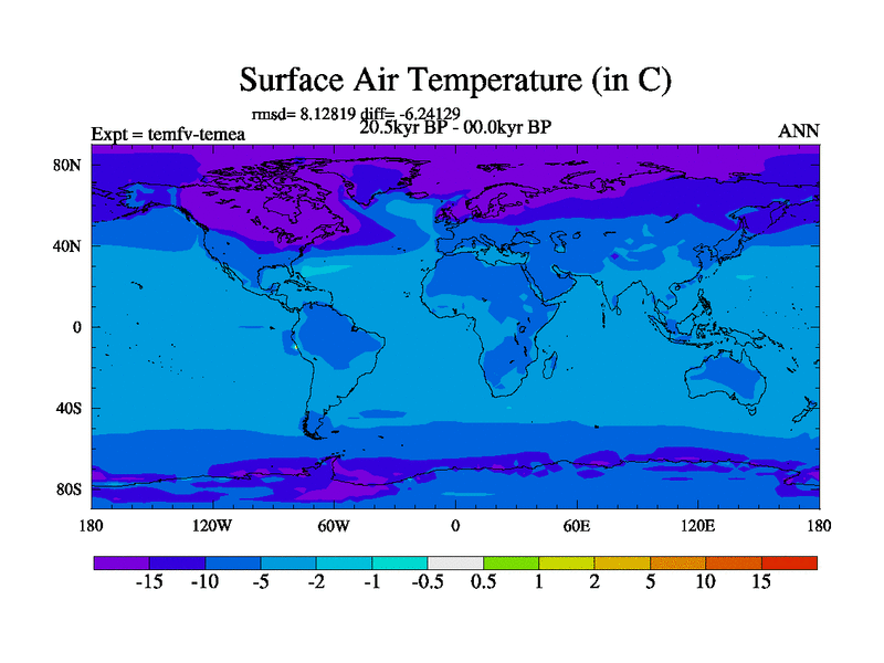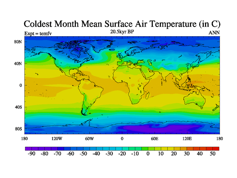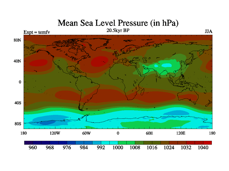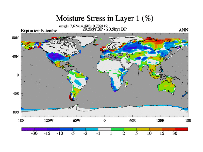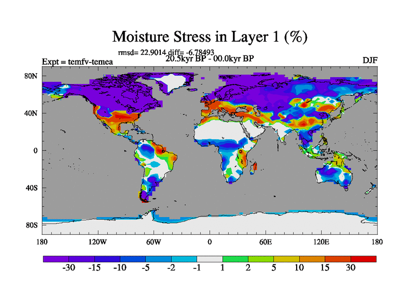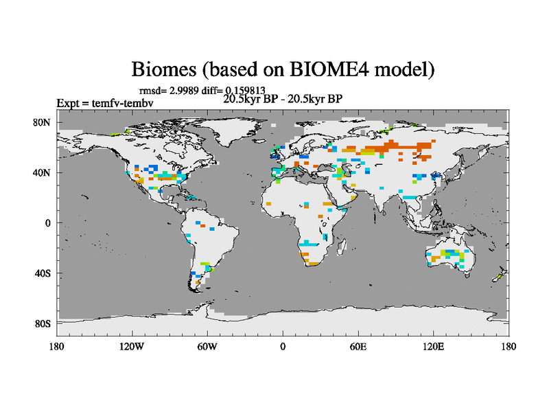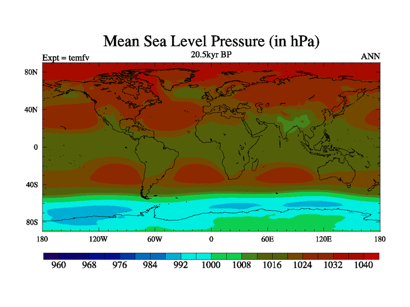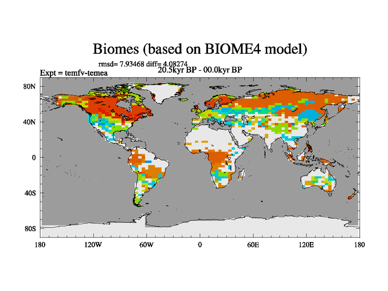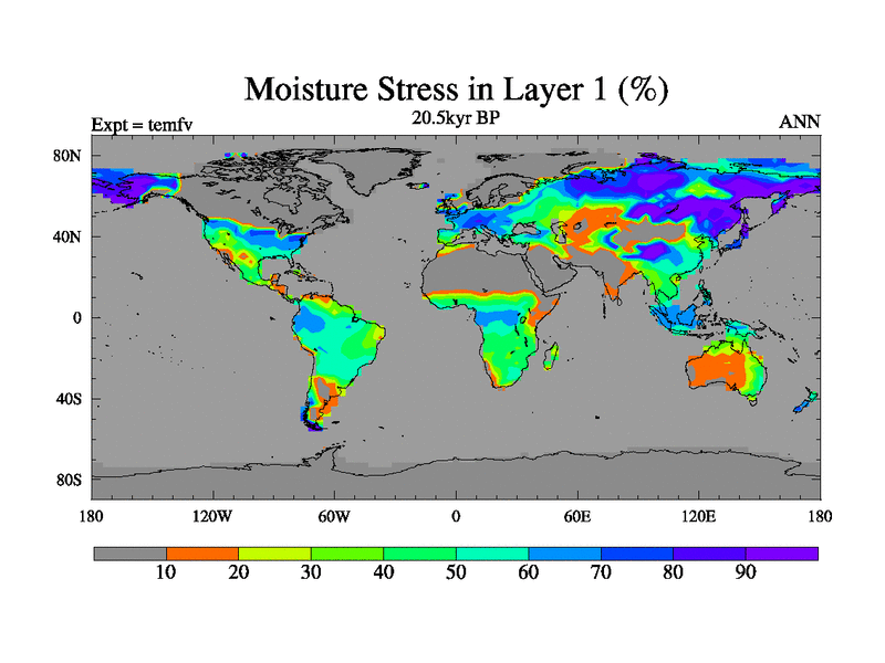 This is the 20.5 kyr BP simulation for a new set of deglaciation BBC runs using GLAC-1D and TRIFFID. Dynamic mode. No meltwater. Russian rivers routed to Med but only during height of glacial.