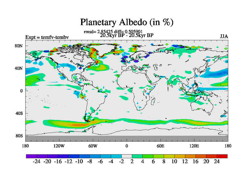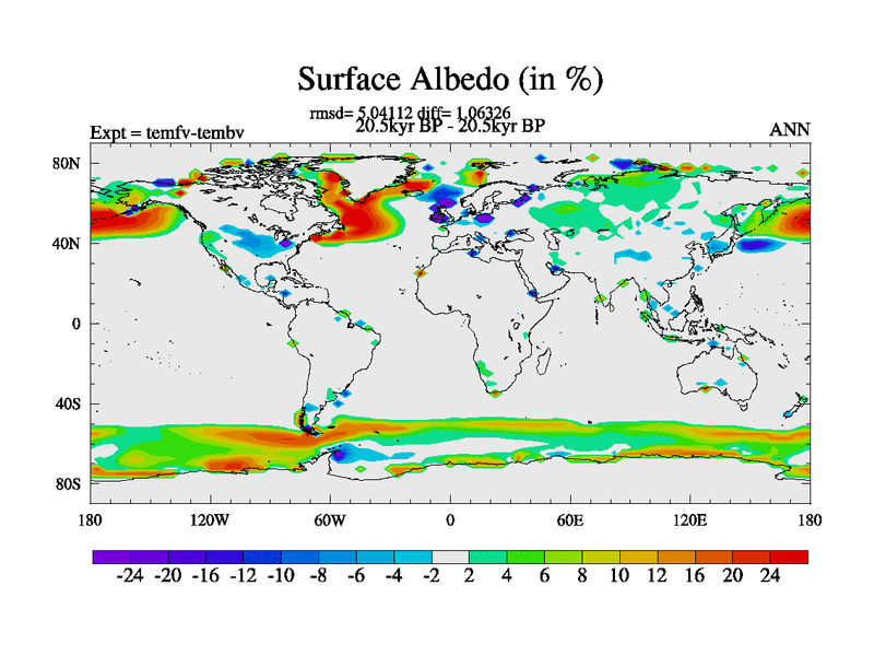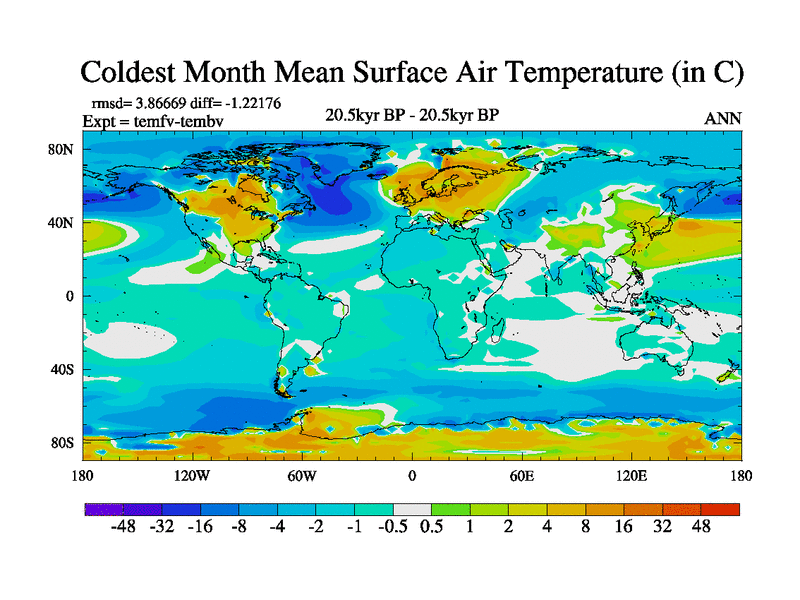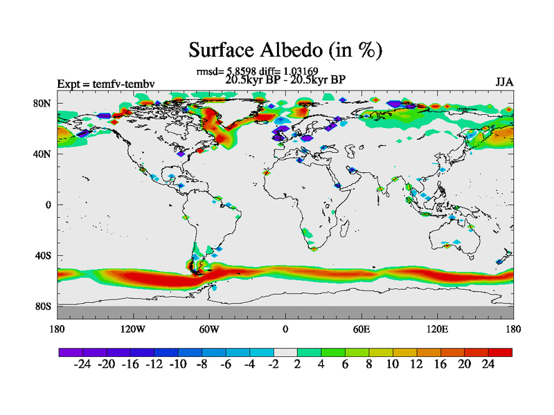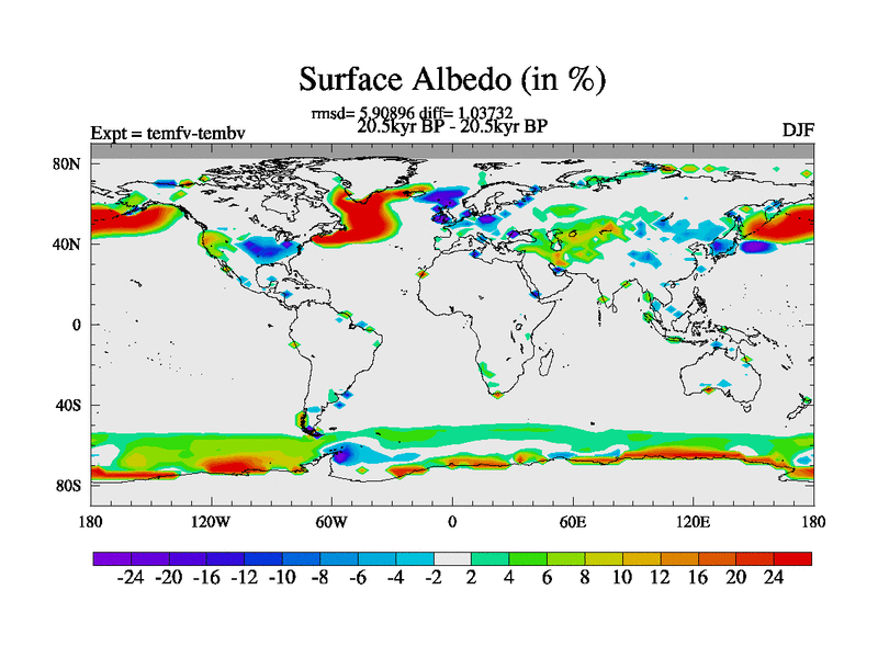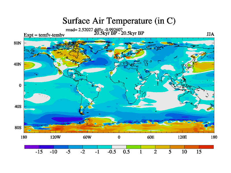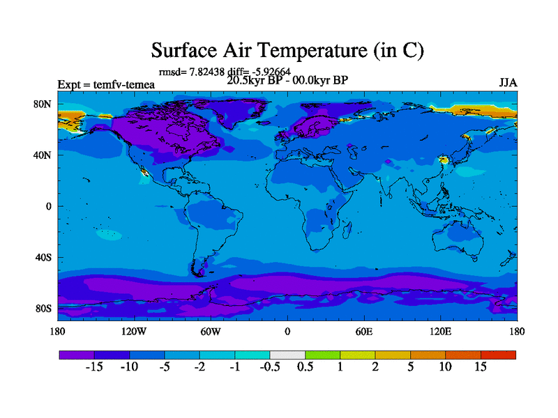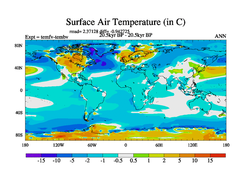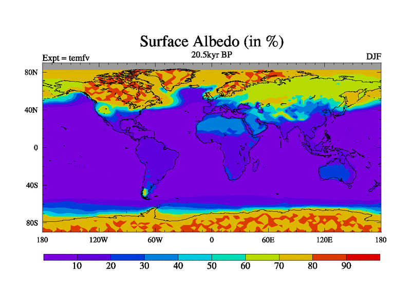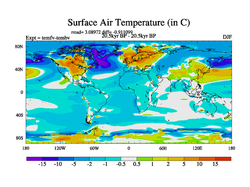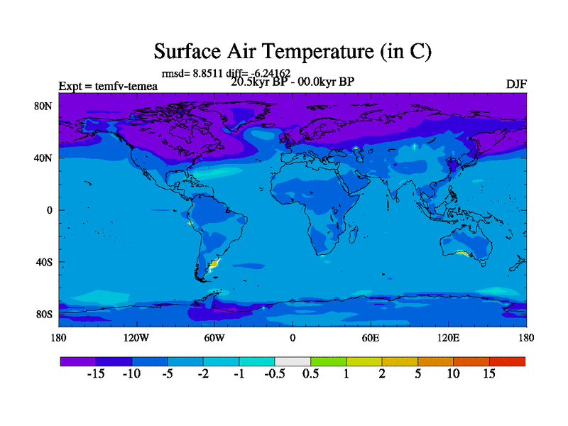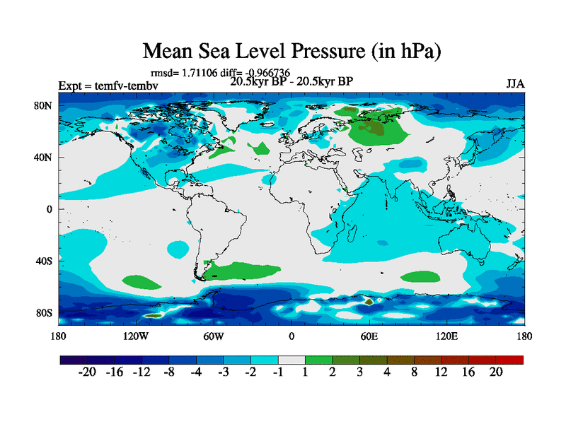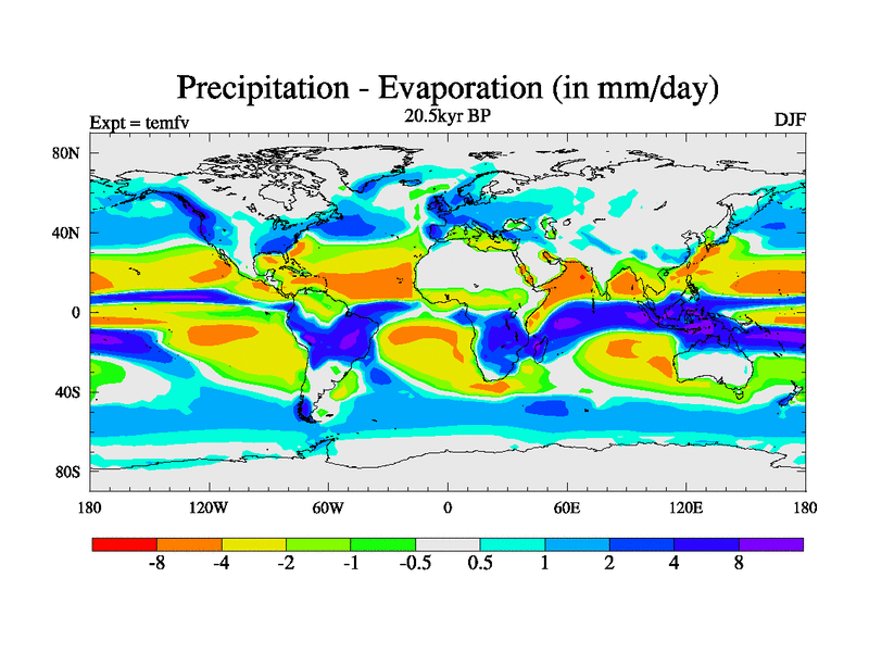 This is the 20.5 kyr BP simulation for a new set of deglaciation BBC runs using GLAC-1D and TRIFFID. Dynamic mode. No meltwater. Russian rivers routed to Med but only during height of glacial.