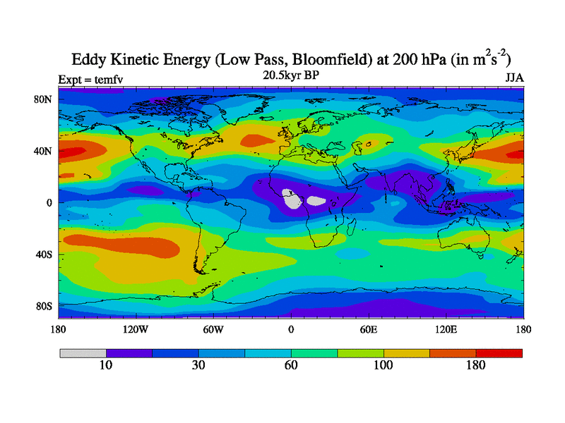 Low Pass Eddy Kinetic Energy at 200 hPa