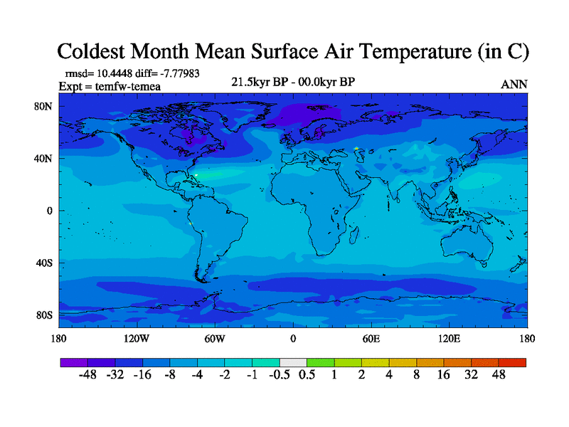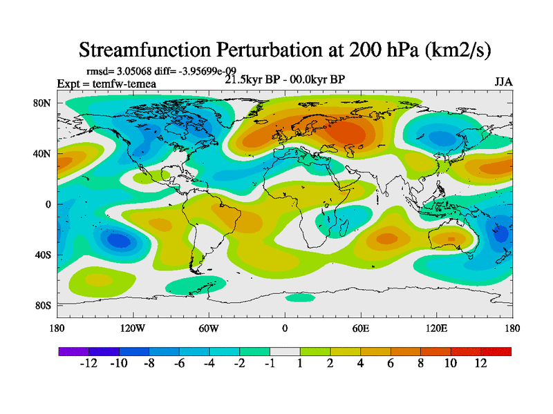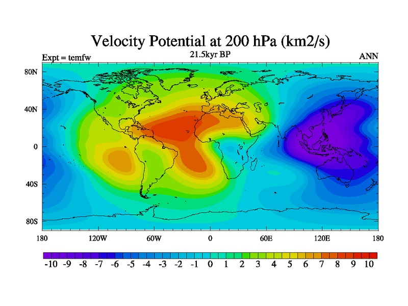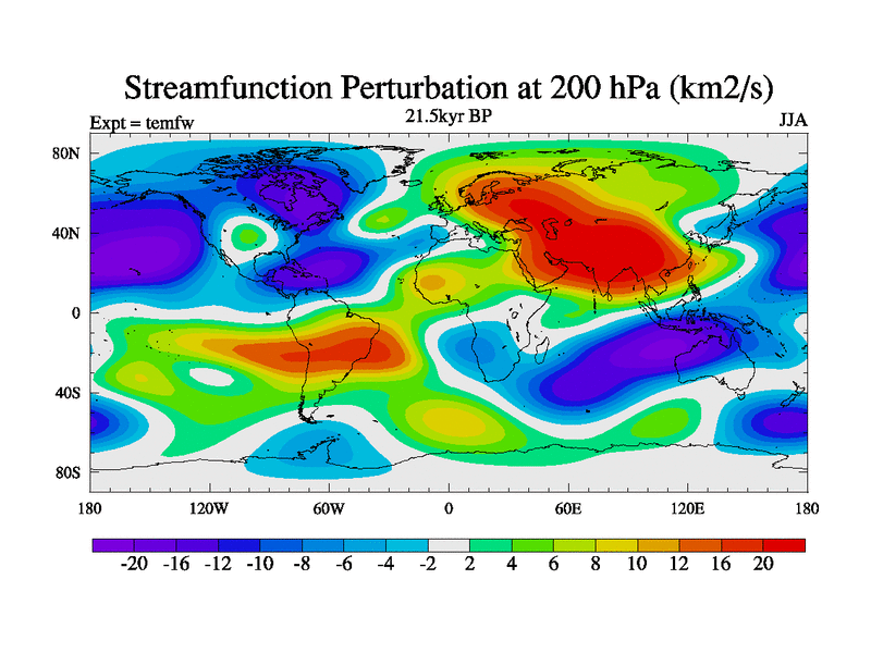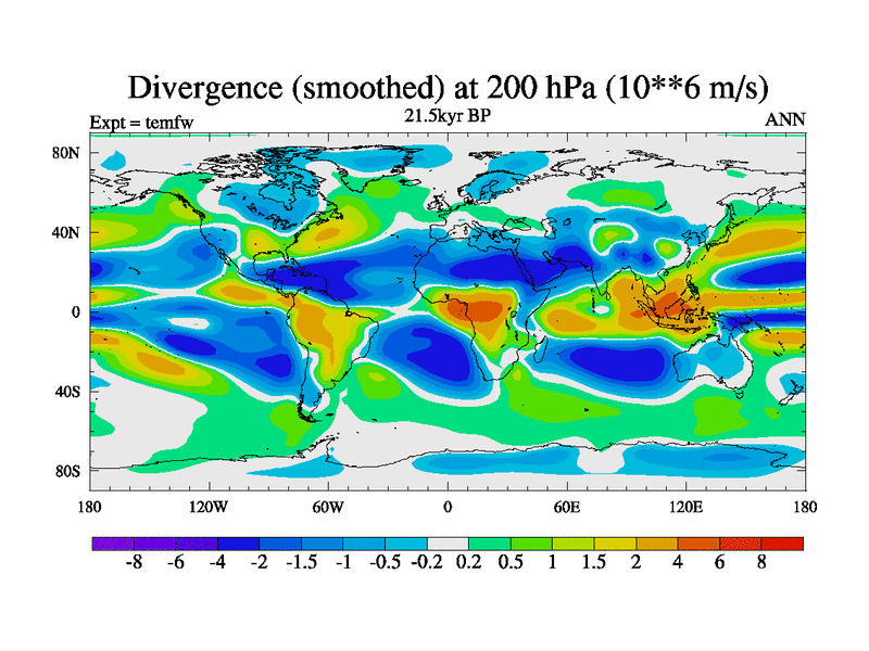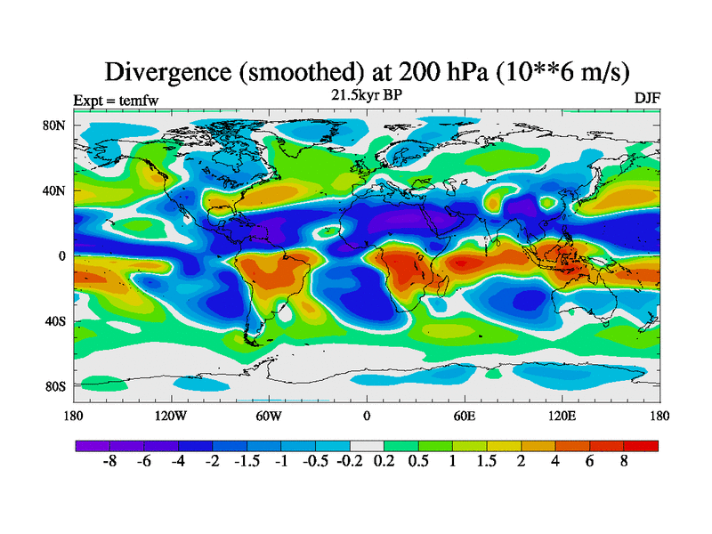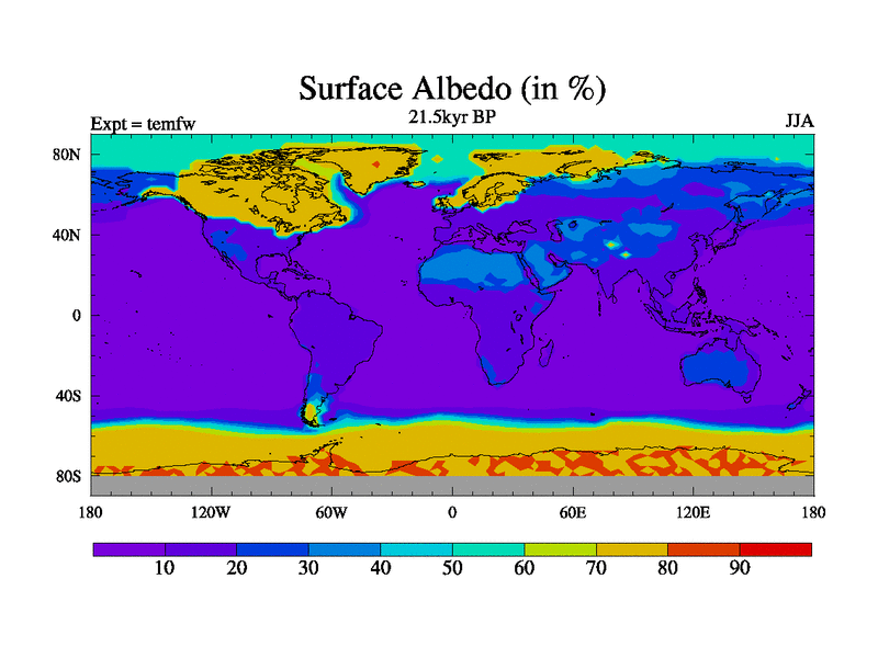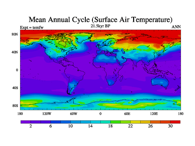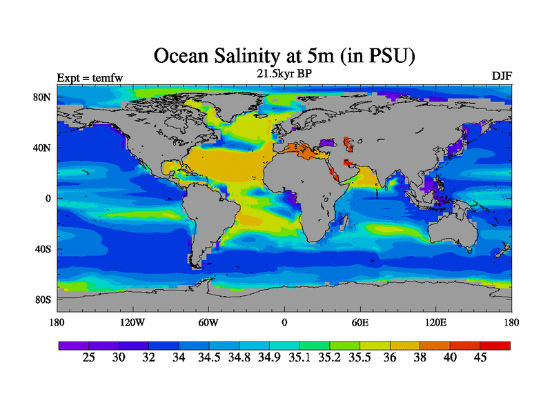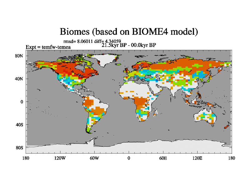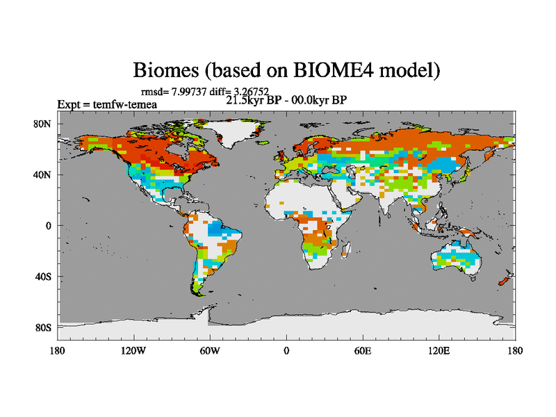 This is the 21.5 kyr BP simulation for a new set of deglaciation BBC runs using GLAC-1D and TRIFFID. Dynamic mode. No meltwater. Russian rivers routed to Med but only during height of glacial.