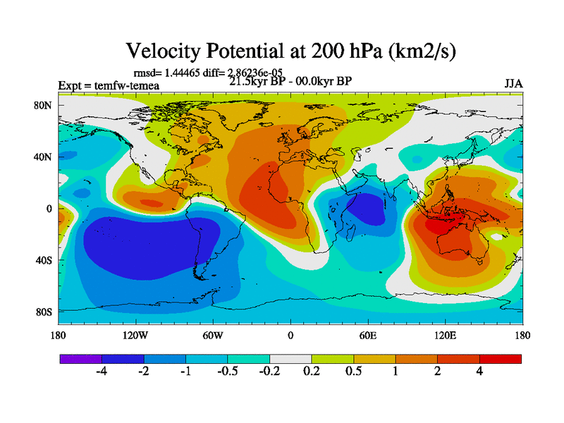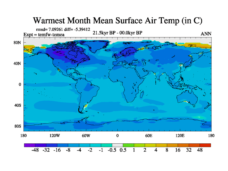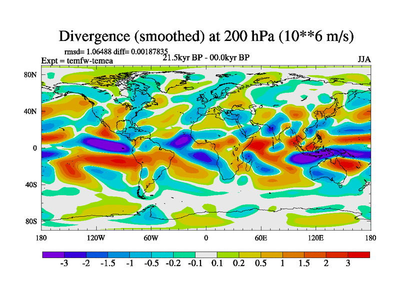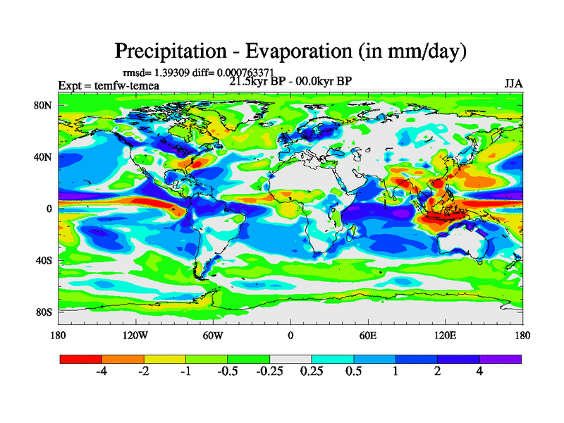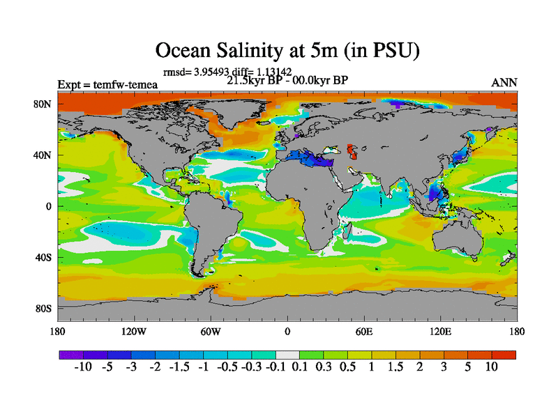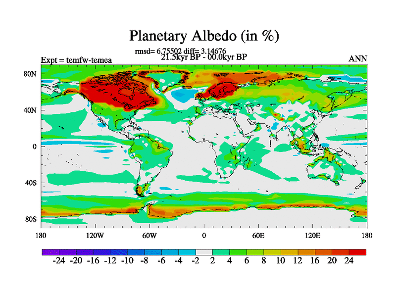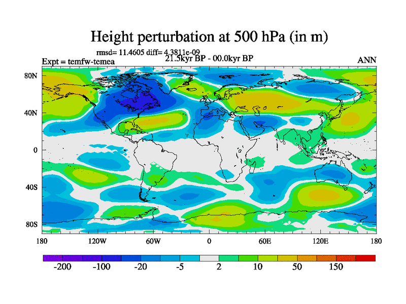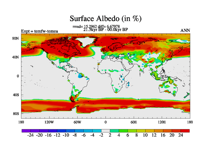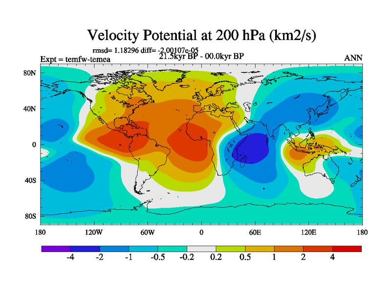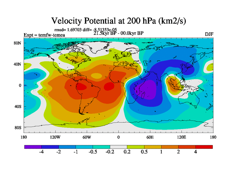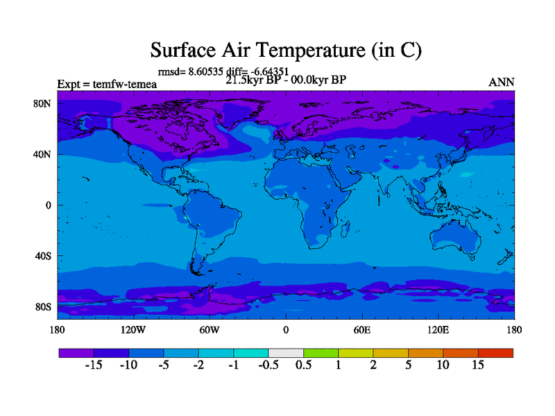 This is the 21.5 kyr BP simulation for a new set of deglaciation BBC runs using GLAC-1D and TRIFFID. Dynamic mode. No meltwater. Russian rivers routed to Med but only during height of glacial.