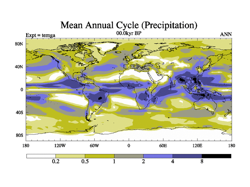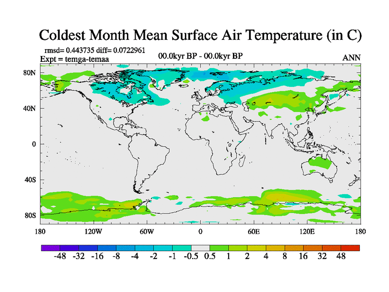 This is the 00.0 kyr BP simulation for a new set of deglaciation BBC runs using GLAC-1D and TRIFFID. Dynamic mode. No meltwater. Russian rivers routed to Arctic.