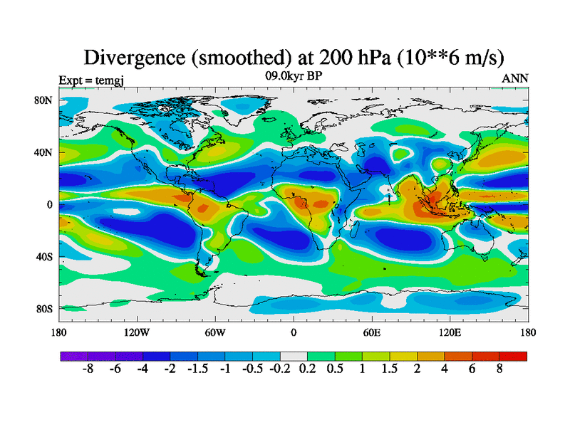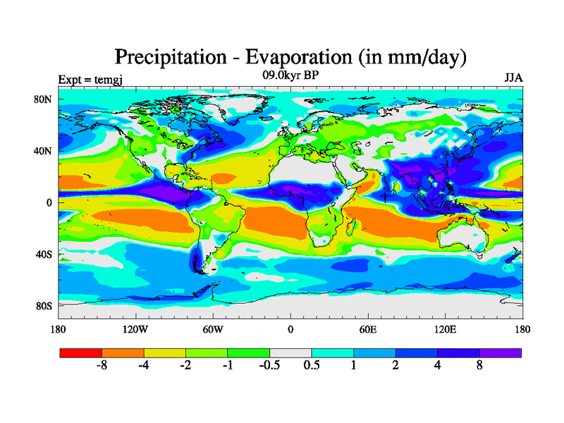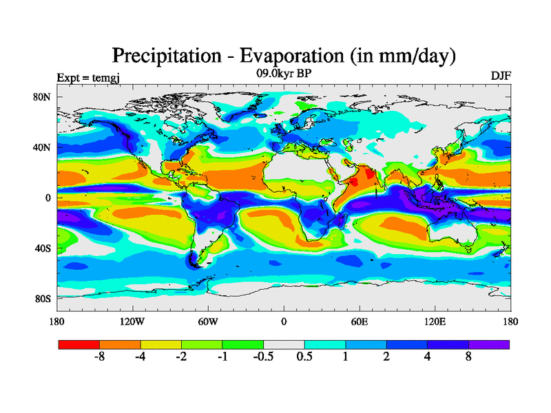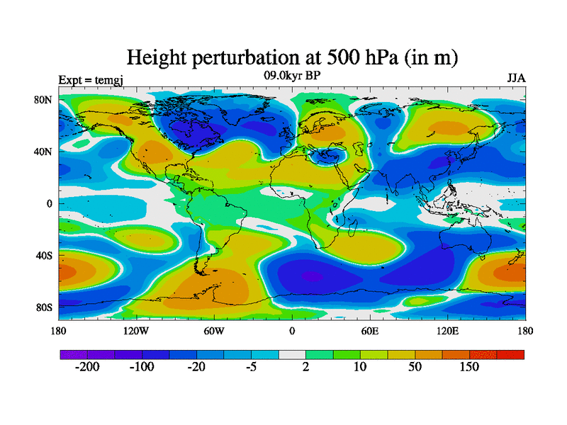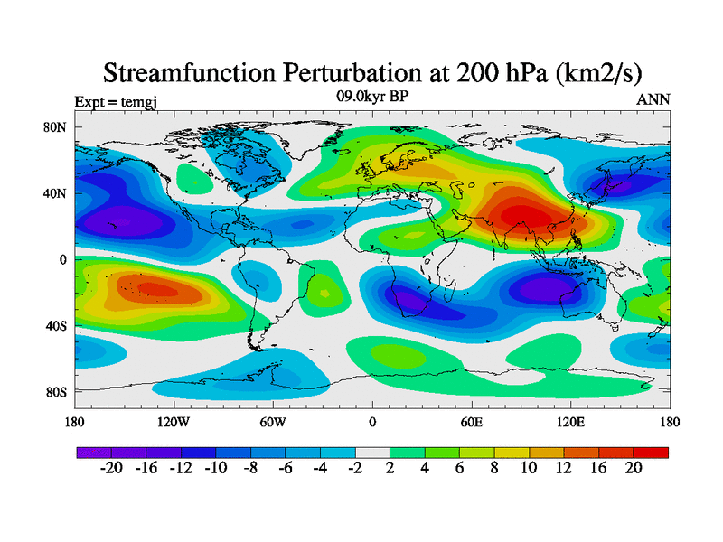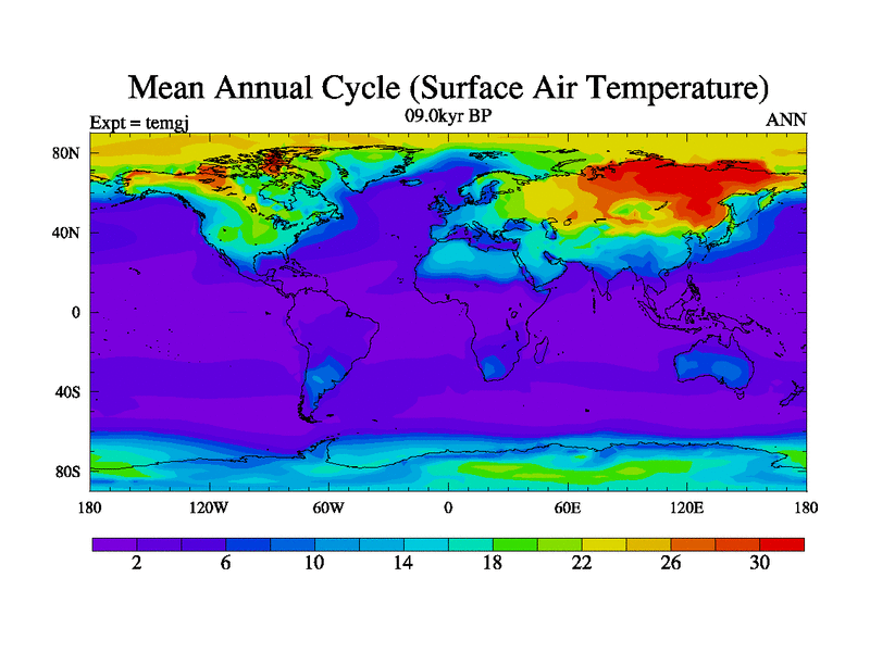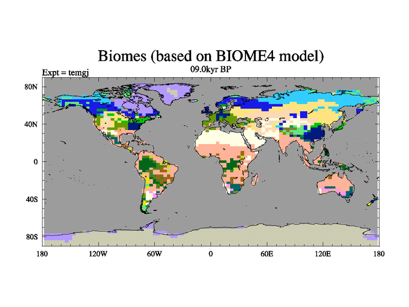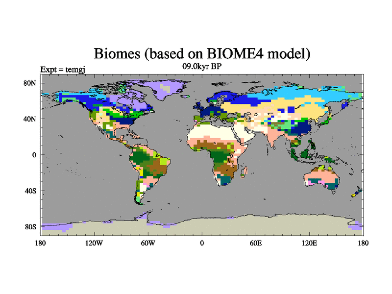 This is the 09.0 kyr BP simulation for a new set of deglaciation BBC runs using GLAC-1D and TRIFFID. Dynamic mode. No meltwater. Russian rivers routed to Arctic.