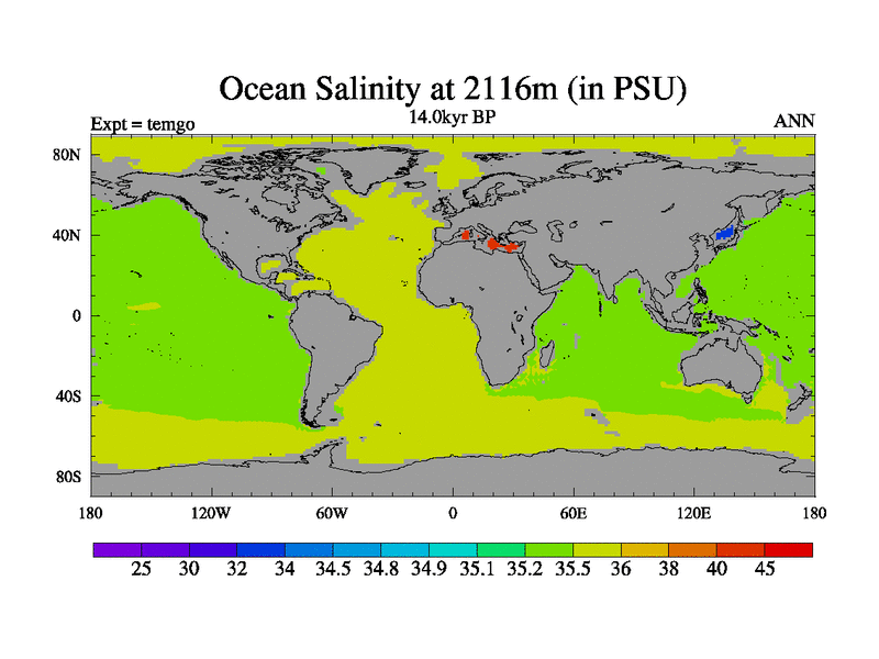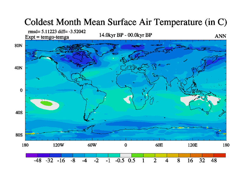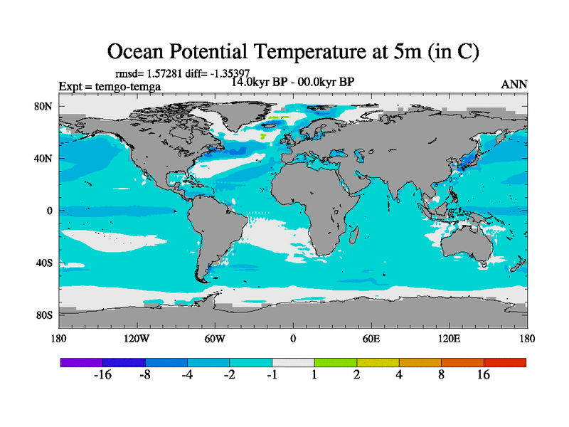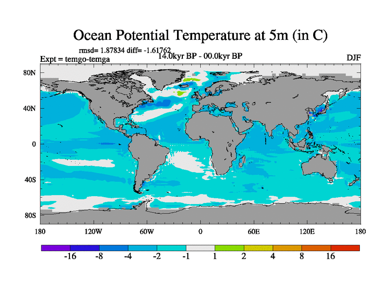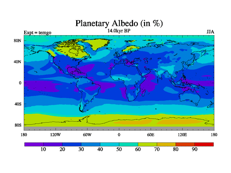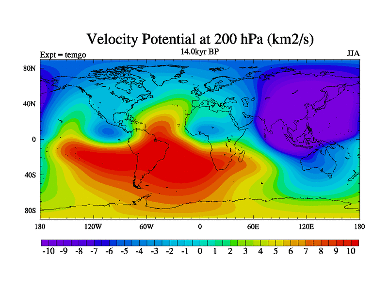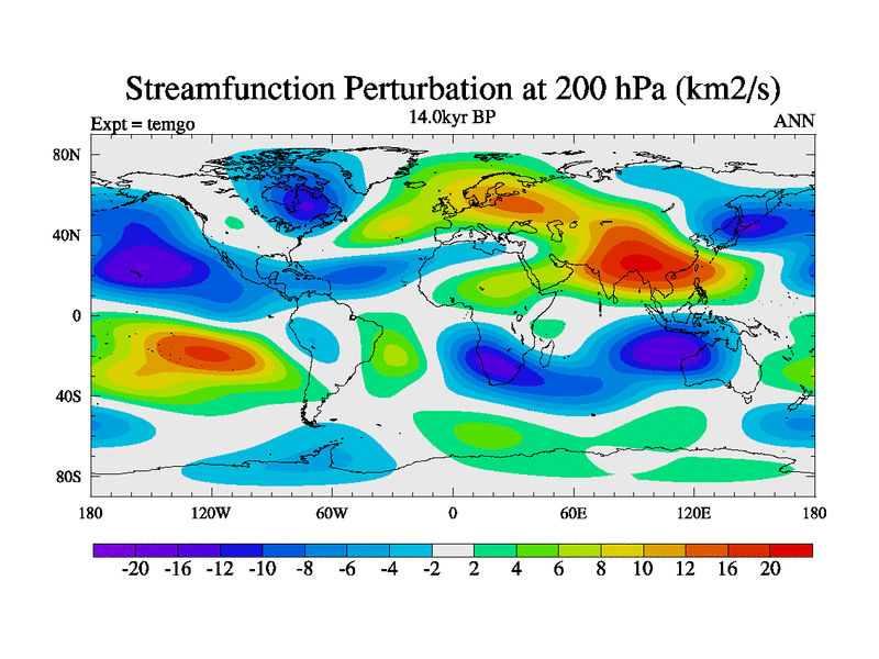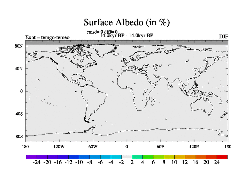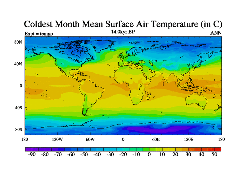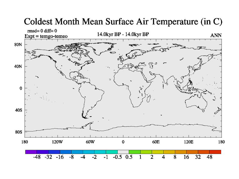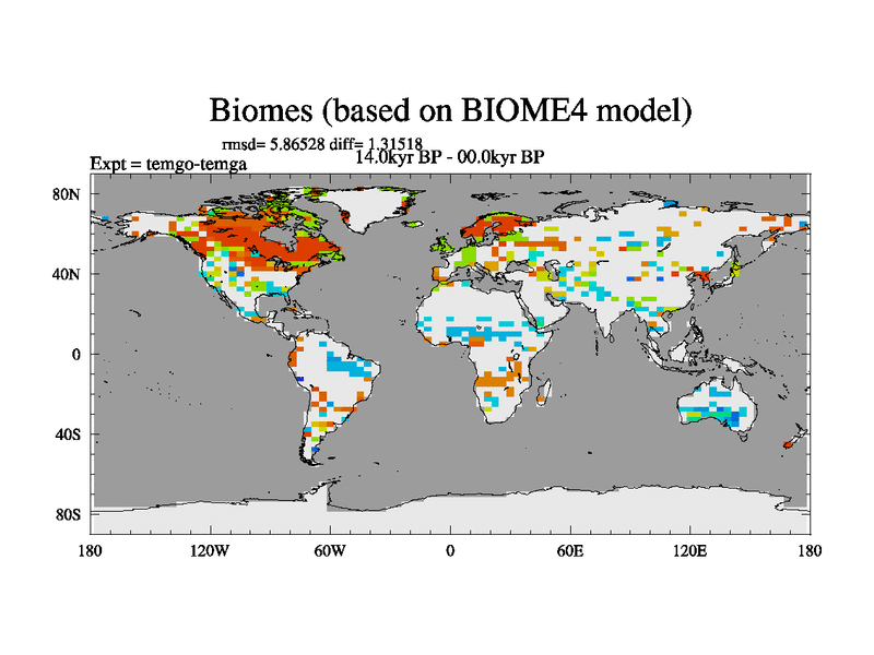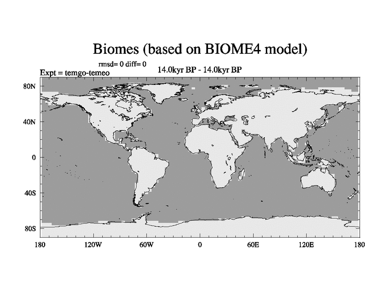 This is the 14.0 kyr BP simulation for a new set of deglaciation BBC runs using GLAC-1D and TRIFFID. Dynamic mode. No meltwater. Russian rivers routed to Arctic.