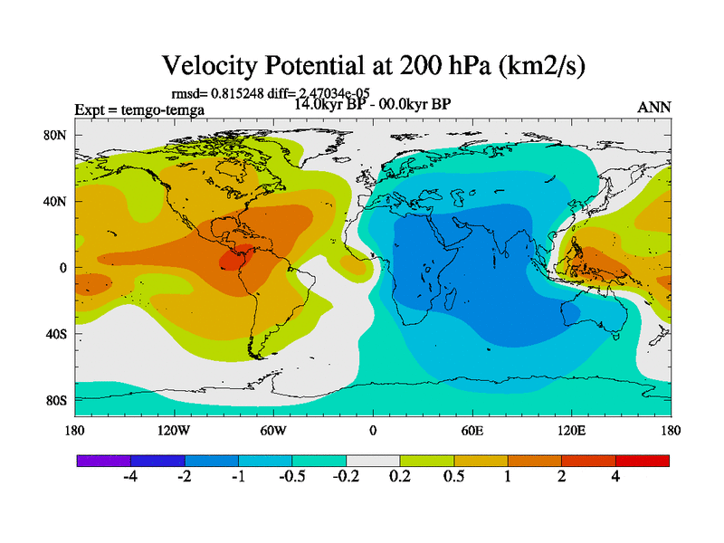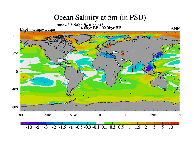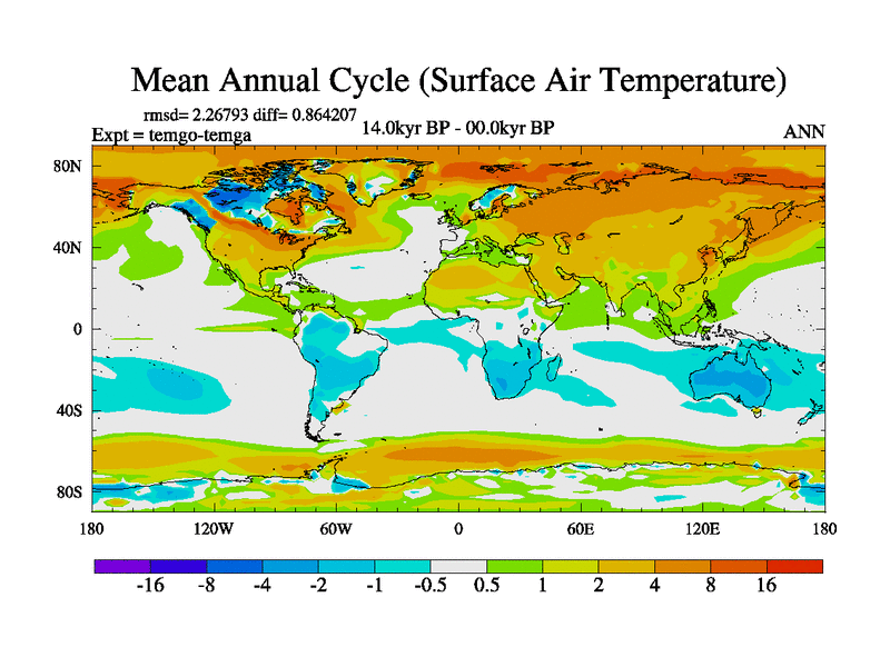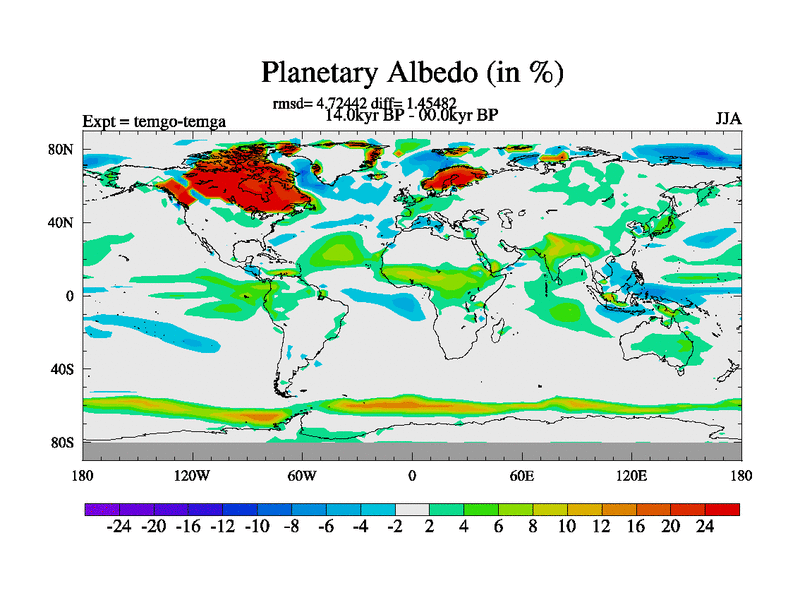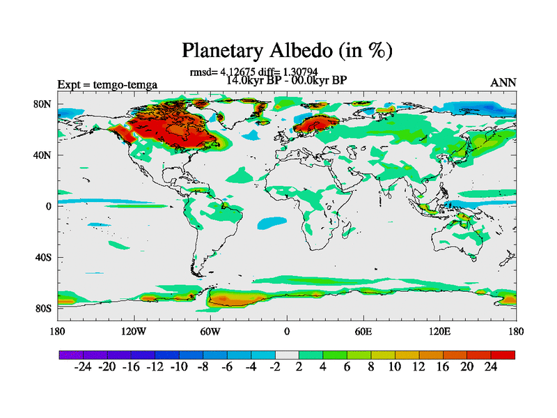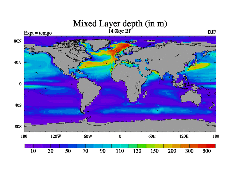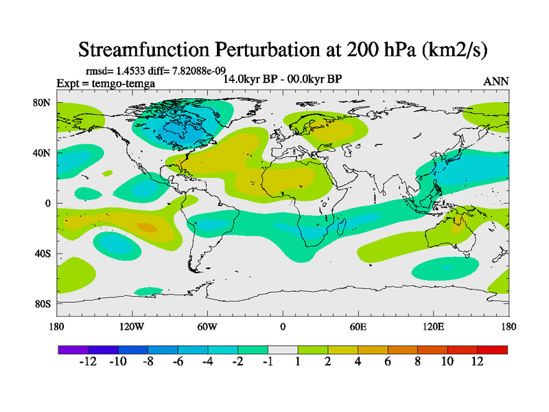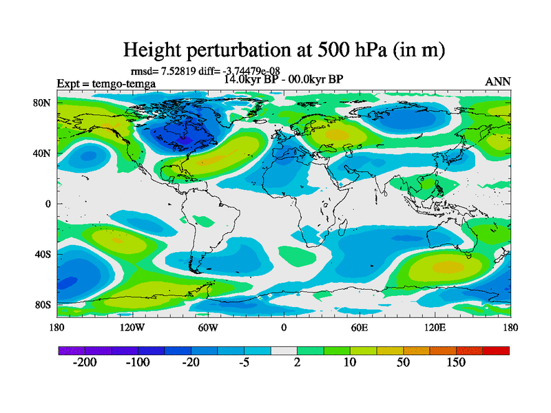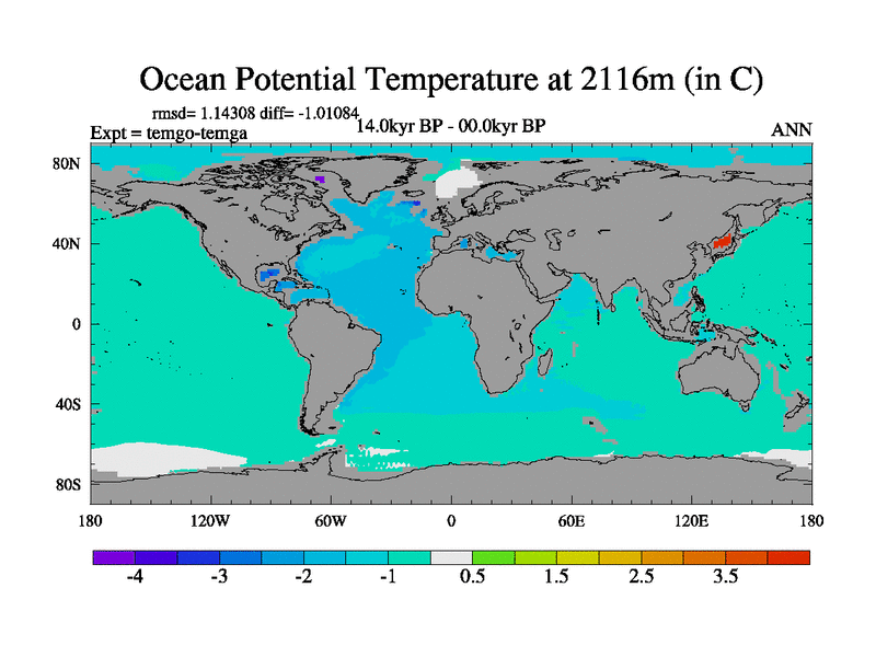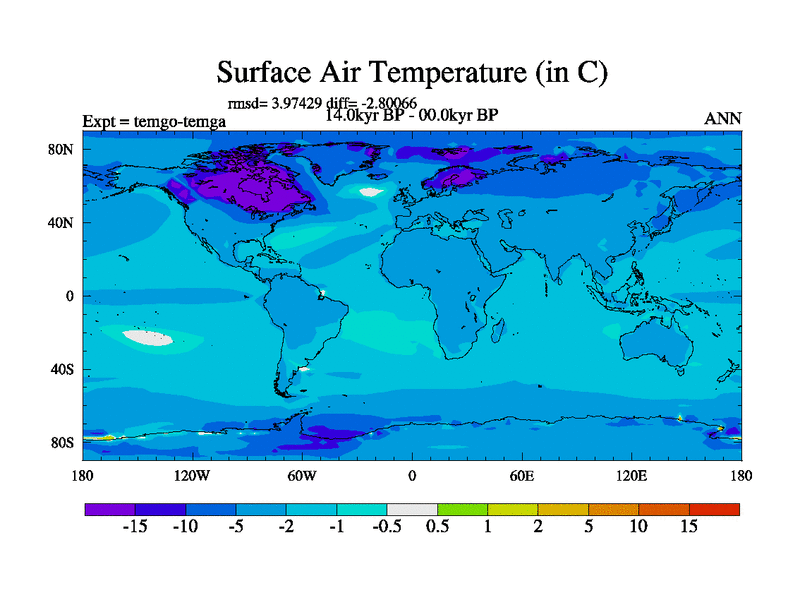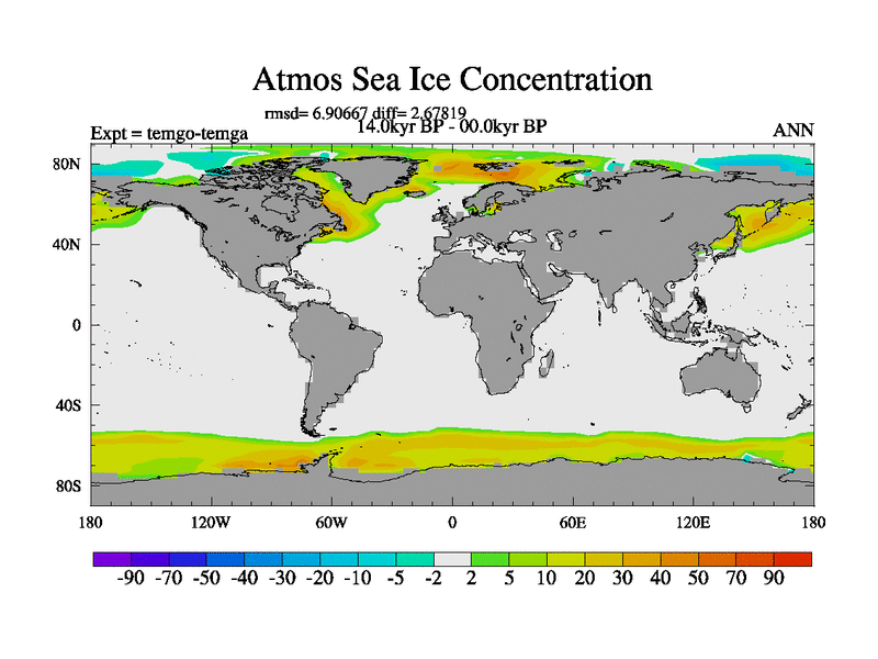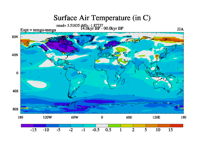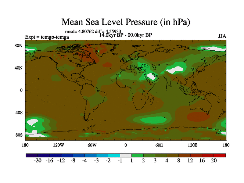 This is the 14.0 kyr BP simulation for a new set of deglaciation BBC runs using GLAC-1D and TRIFFID. Dynamic mode. No meltwater. Russian rivers routed to Arctic.