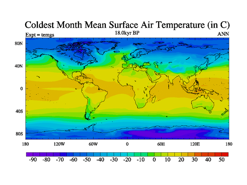 This is the 18.0 kyr BP simulation for a new set of deglaciation BBC runs using GLAC-1D and TRIFFID. Dynamic mode. No meltwater. Russian rivers routed to Arctic.