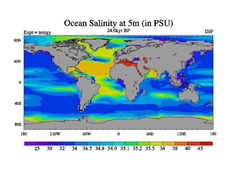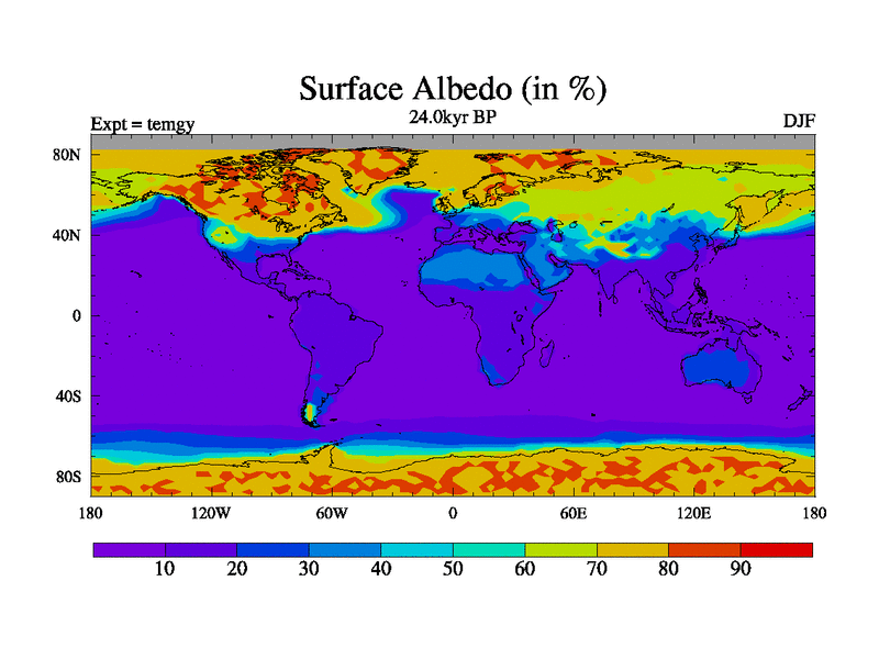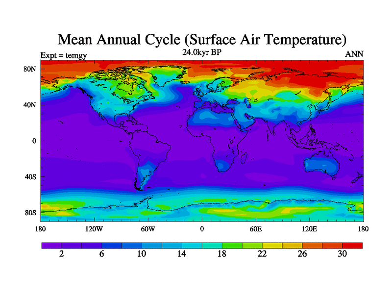 This is the 24.0 kyr BP simulation for a new set of deglaciation BBC runs using GLAC-1D and TRIFFID. Dynamic mode. No meltwater. Russian rivers routed to Arctic.