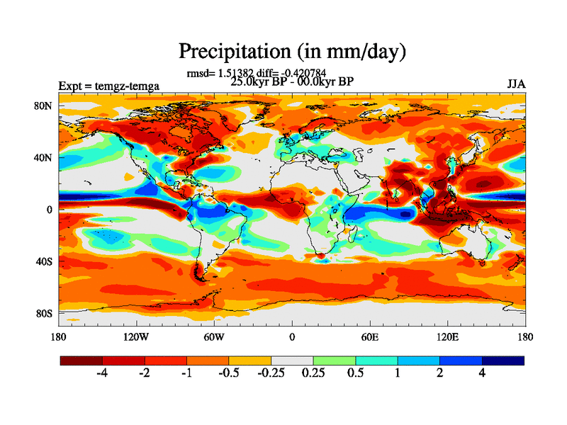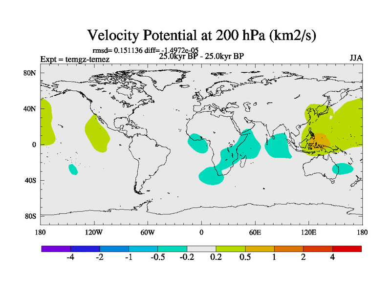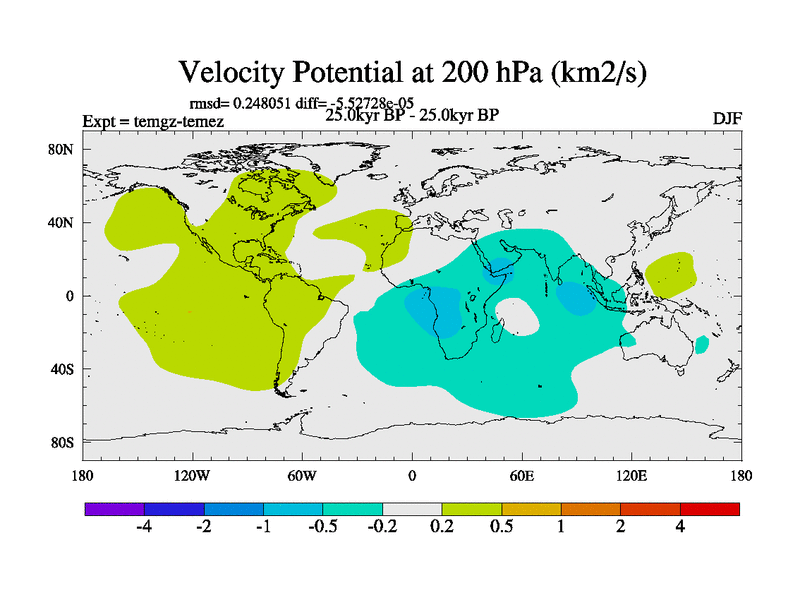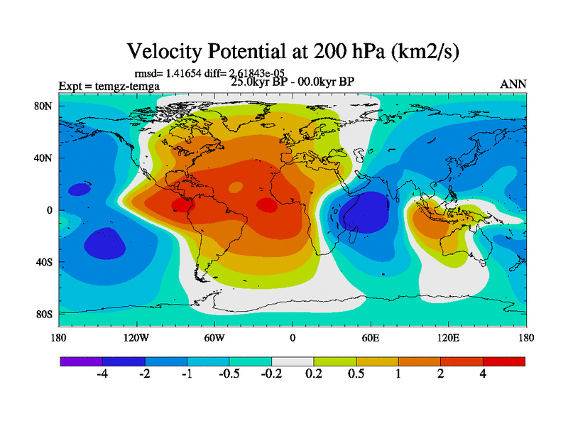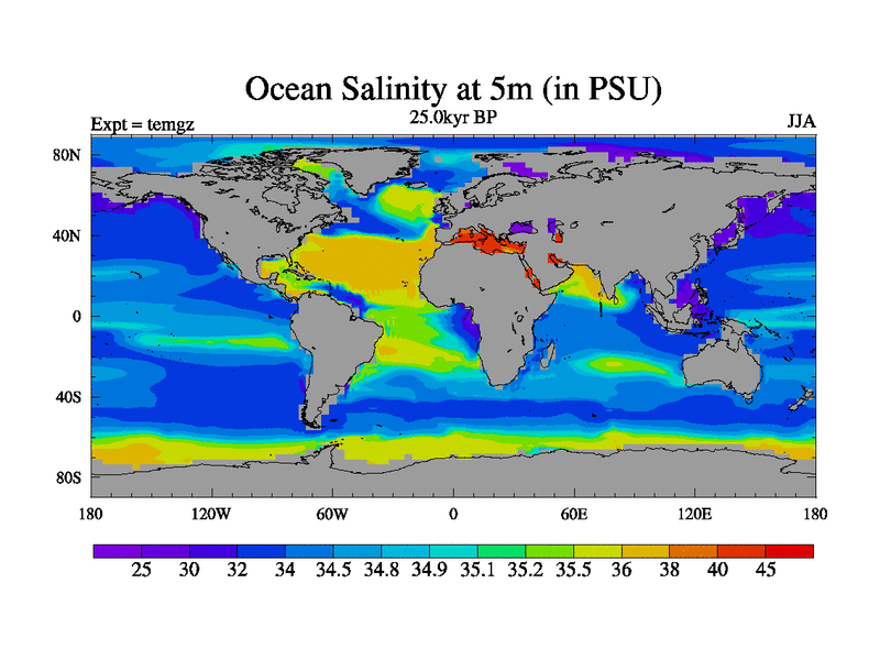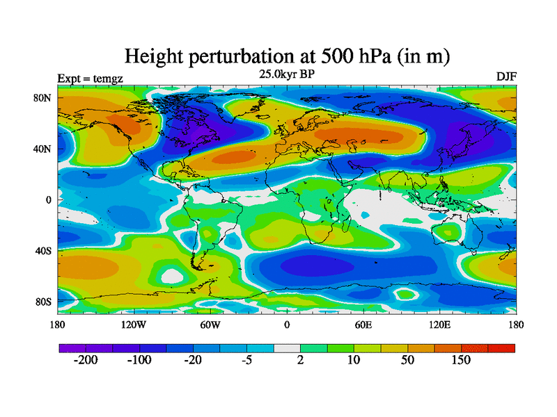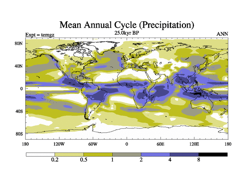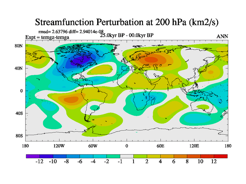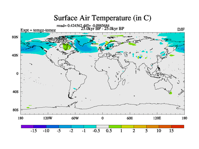 This is the 25.0 kyr BP simulation for a new set of deglaciation BBC runs using GLAC-1D and TRIFFID. Dynamic mode. No meltwater. Russian rivers routed to Arctic.