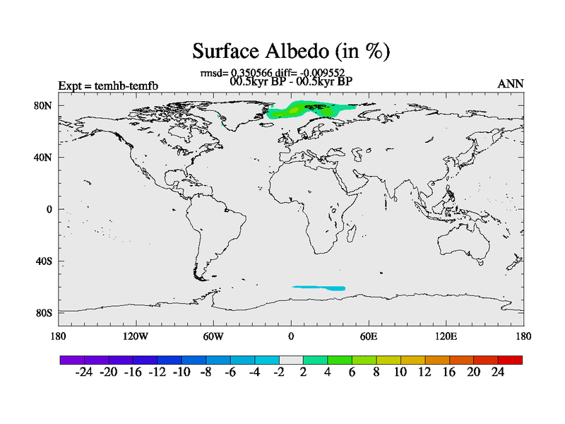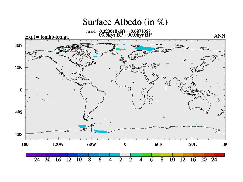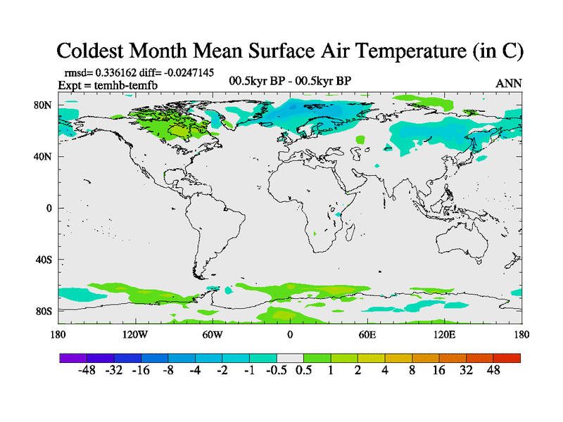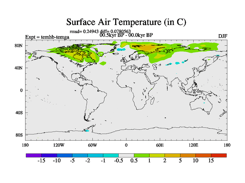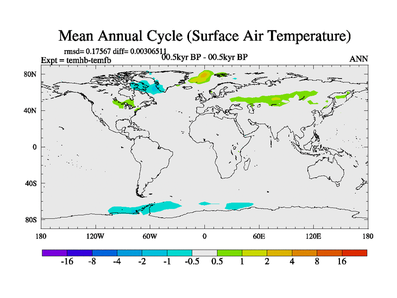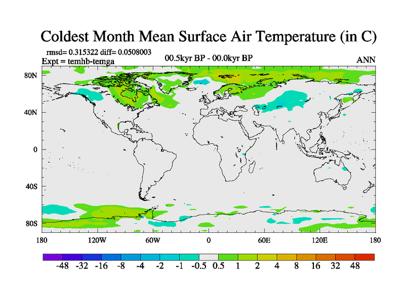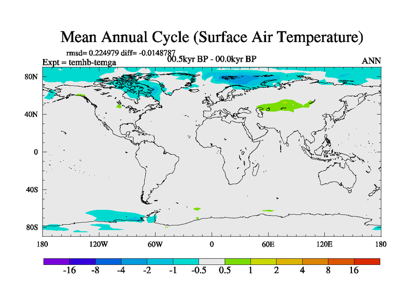 This is the 00.5 kyr BP simulation for a new set of deglaciation BBC runs using GLAC-1D and TRIFFID. Dynamic mode. No meltwater. Russian rivers routed to Arctic.