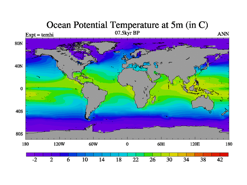 This is the 07.5 kyr BP simulation for a new set of deglaciation BBC runs using GLAC-1D and TRIFFID. Dynamic mode. No meltwater. Russian rivers routed to Arctic.