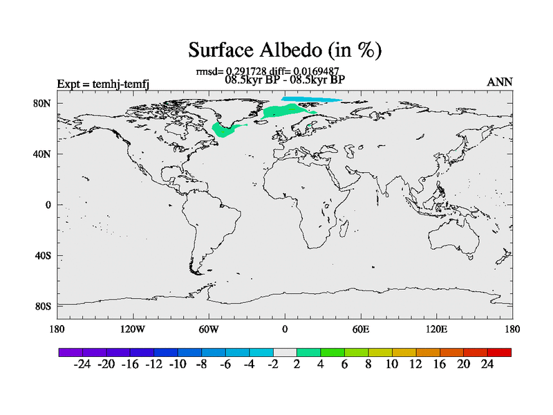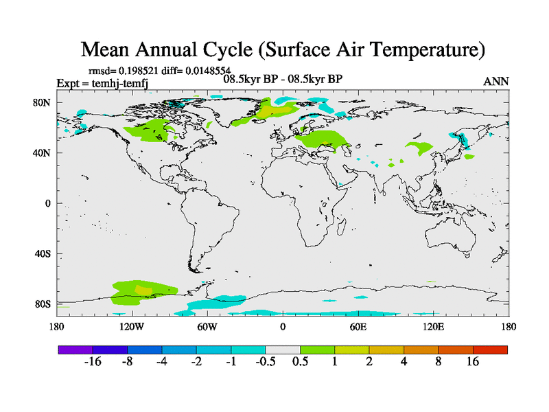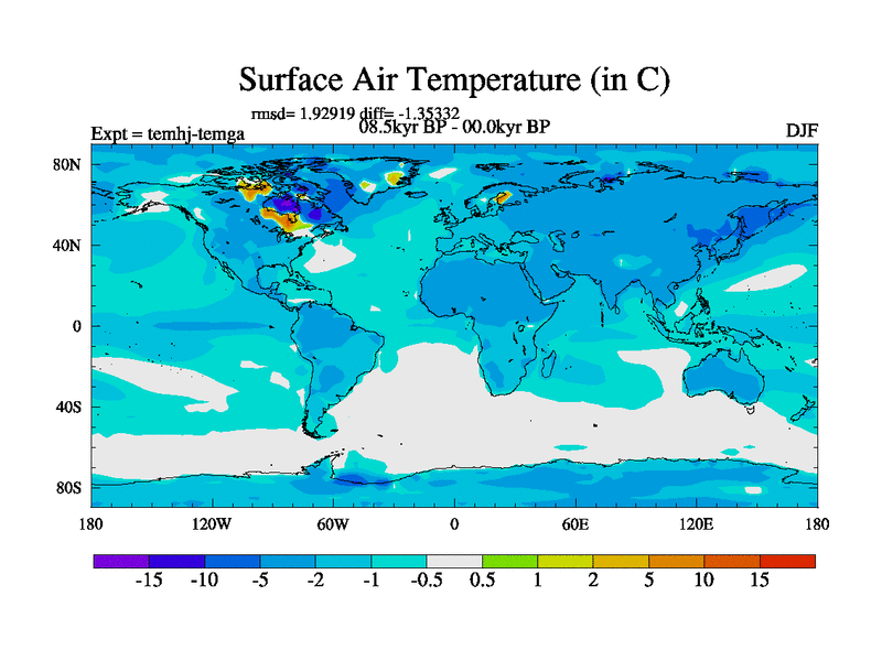 This is the 08.5 kyr BP simulation for a new set of deglaciation BBC runs using GLAC-1D and TRIFFID. Dynamic mode. No meltwater. Russian rivers routed to Arctic.