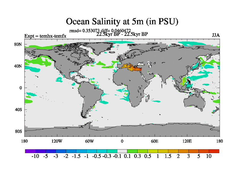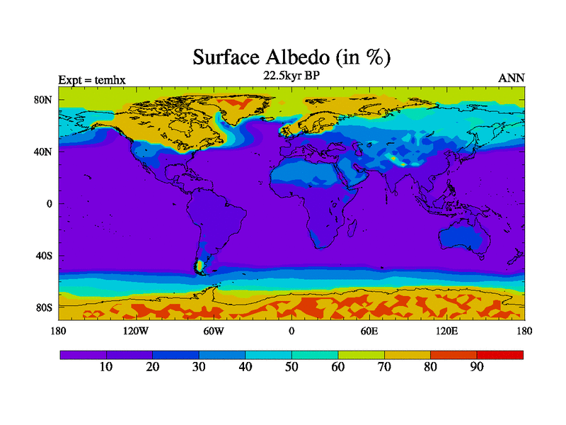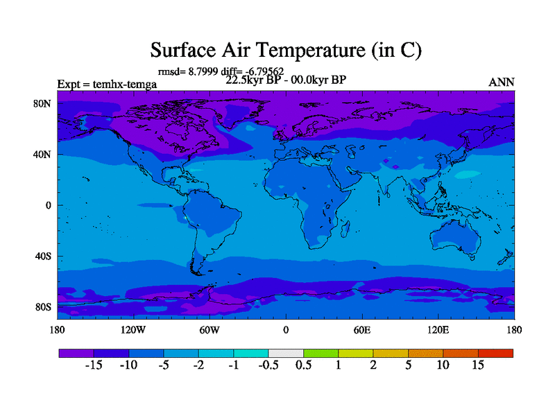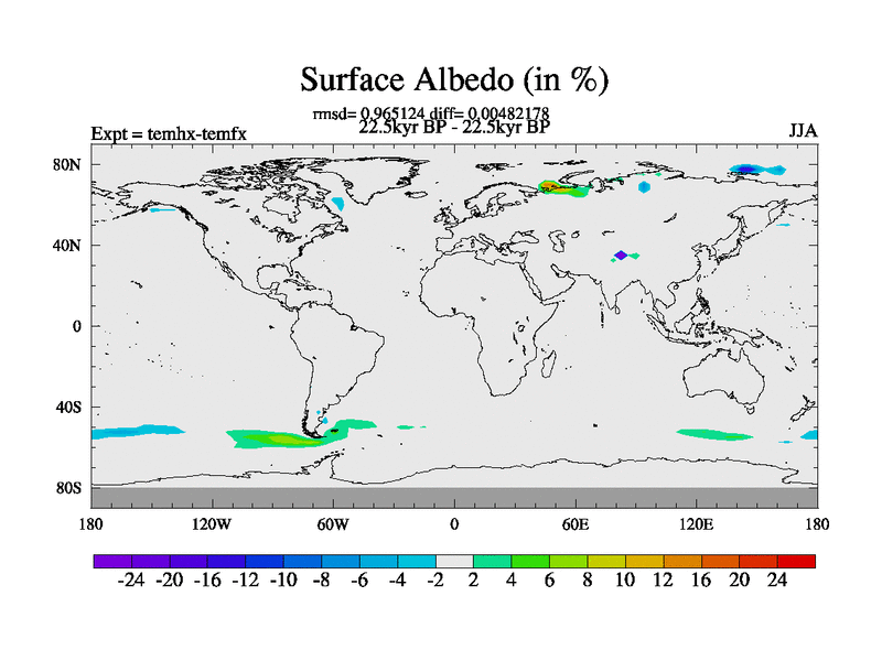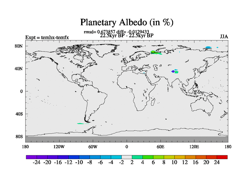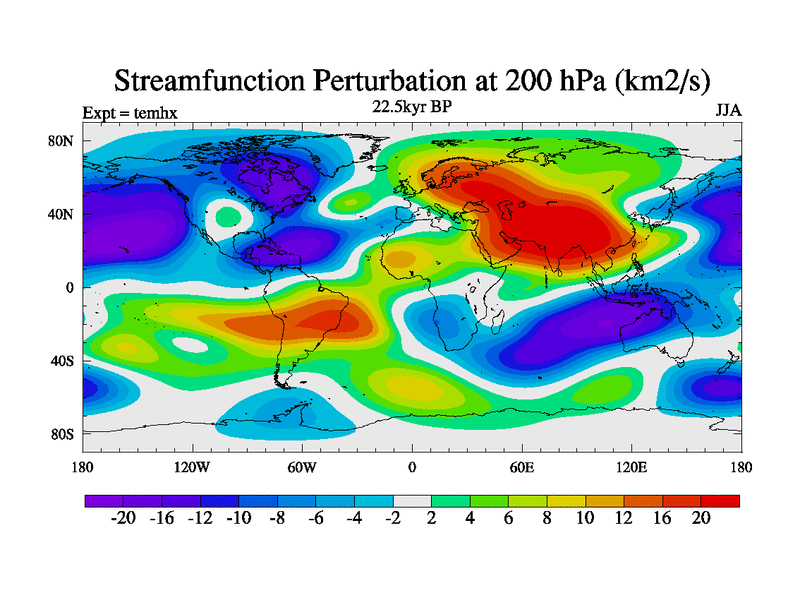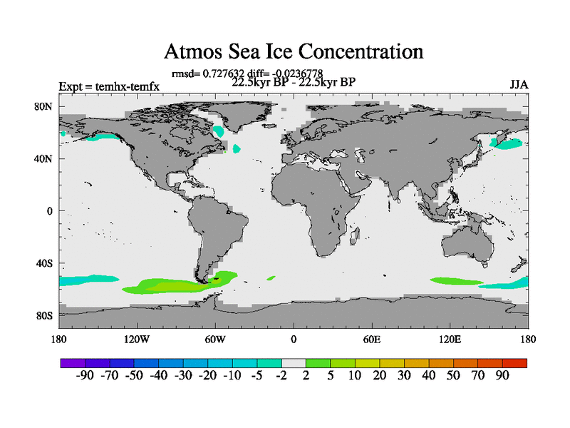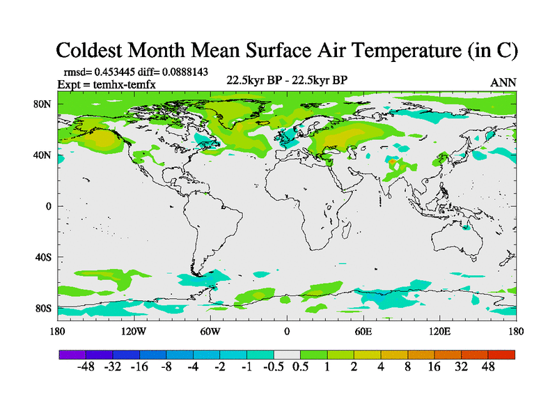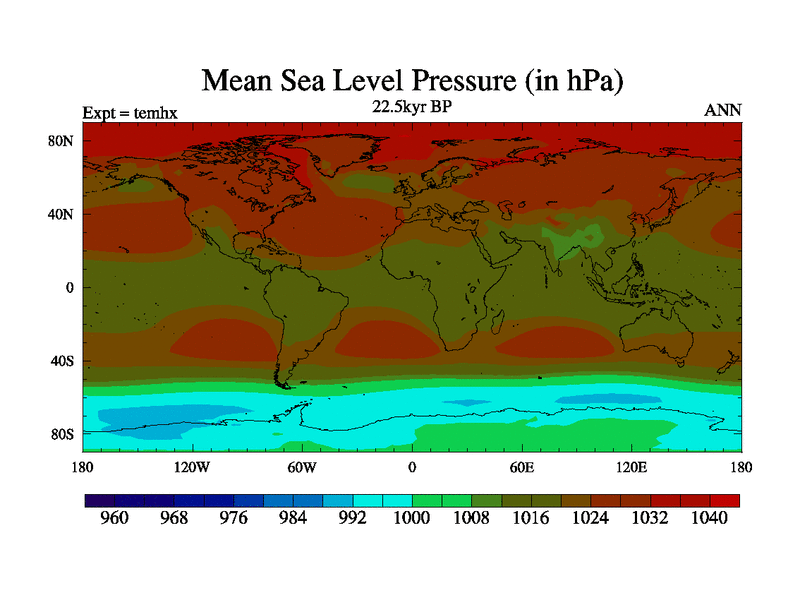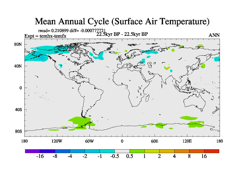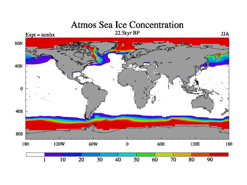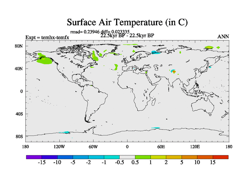 This is the 22.5 kyr BP simulation for a new set of deglaciation BBC runs using GLAC-1D and TRIFFID. Dynamic mode. No meltwater. Russian rivers routed to Arctic.