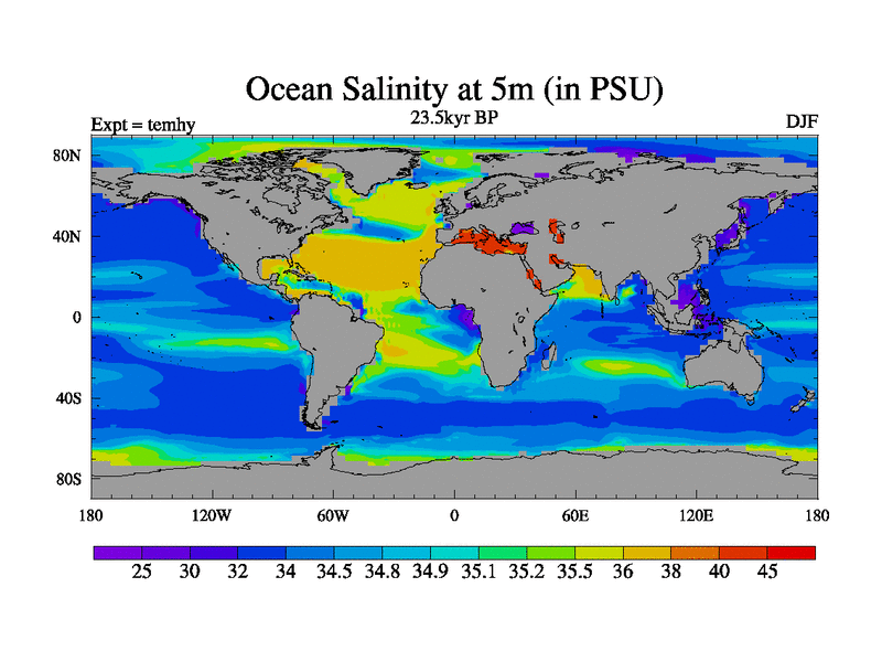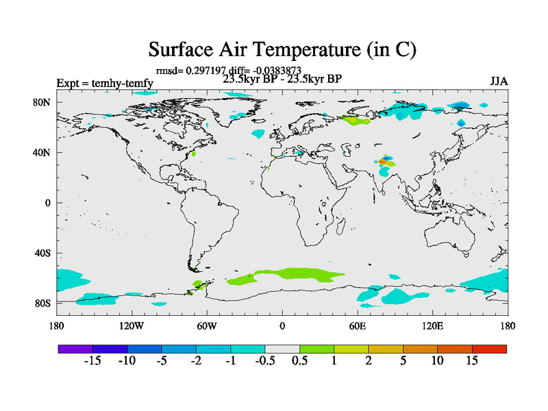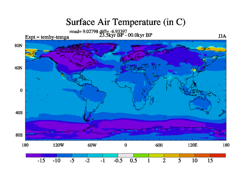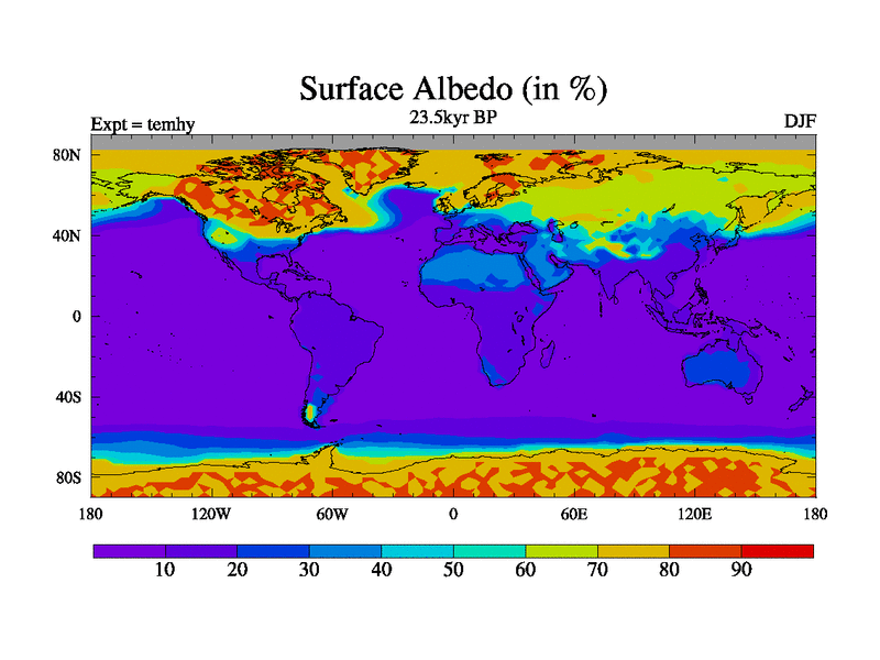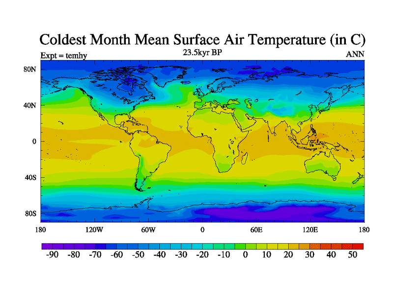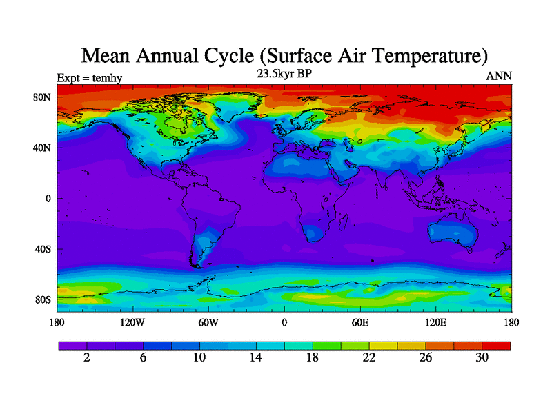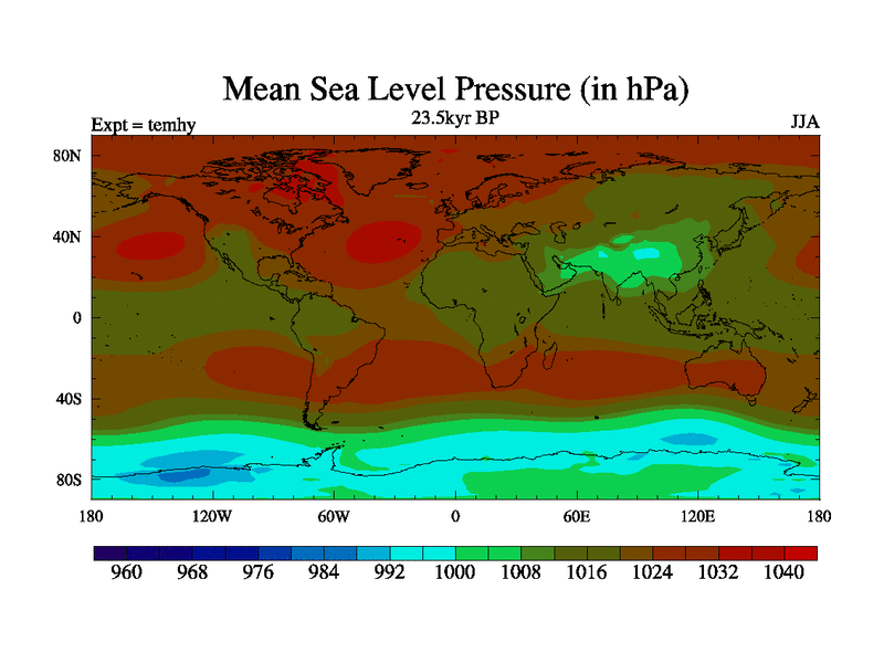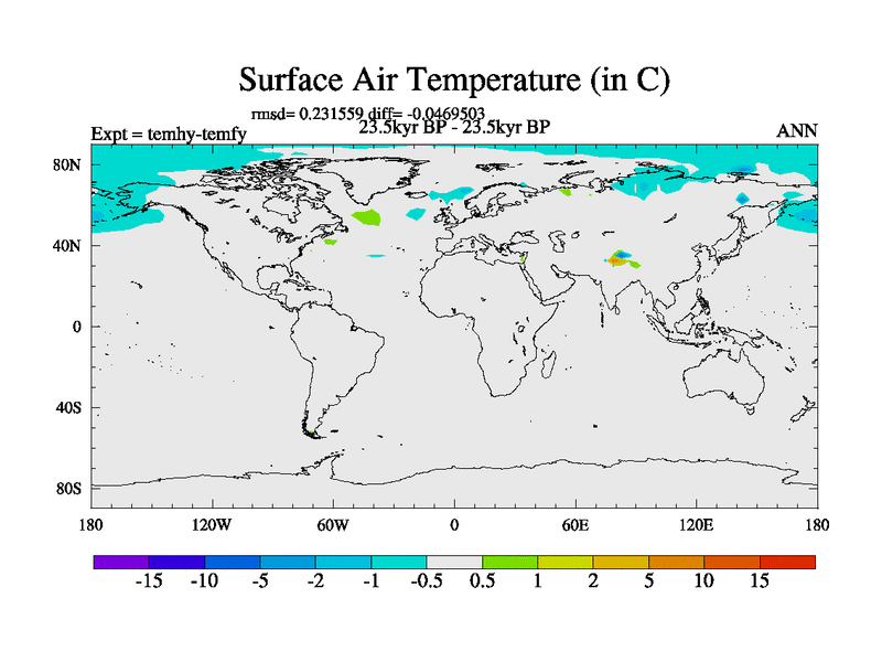 This is the 23.5 kyr BP simulation for a new set of deglaciation BBC runs using GLAC-1D and TRIFFID. Dynamic mode. No meltwater. Russian rivers routed to Arctic.