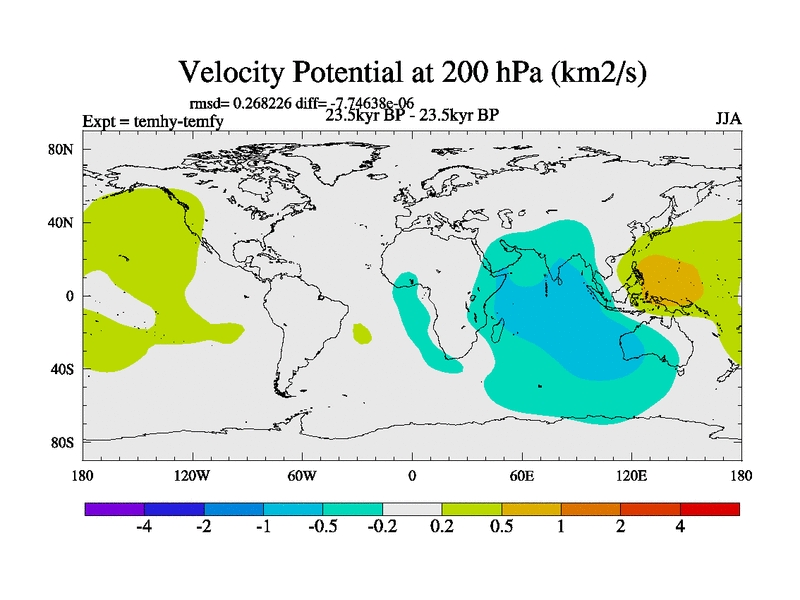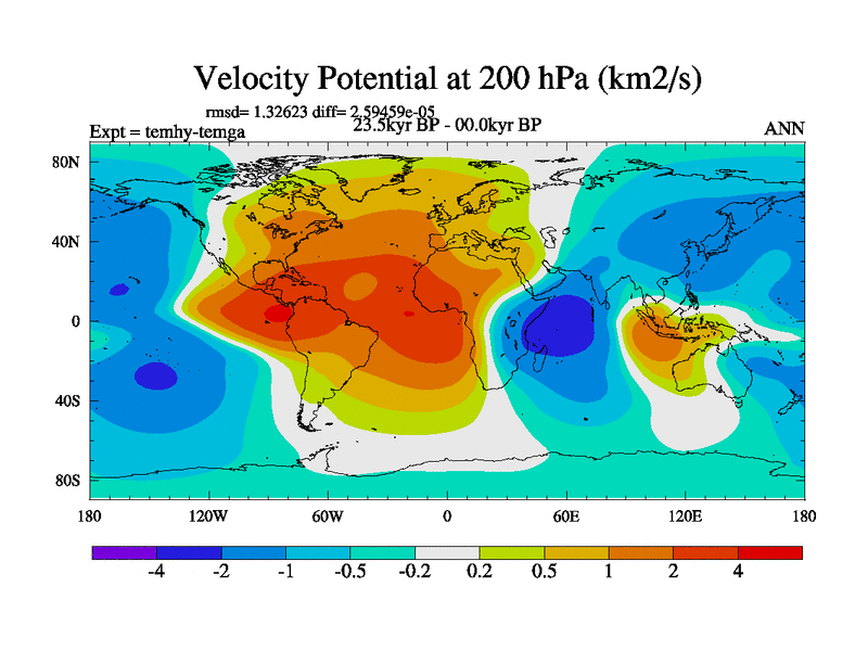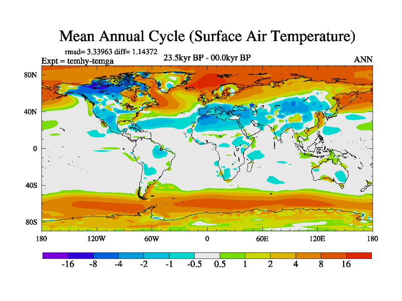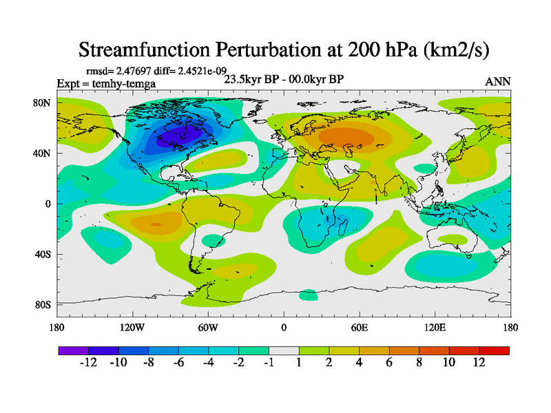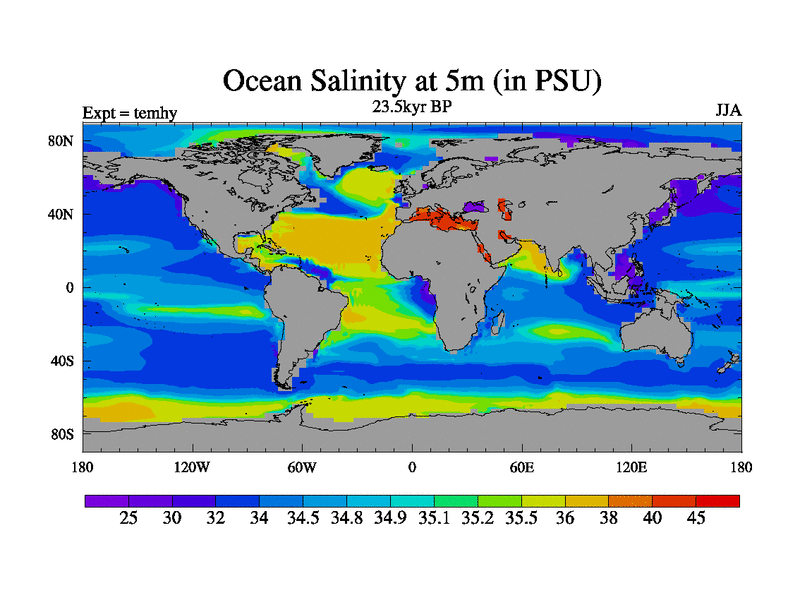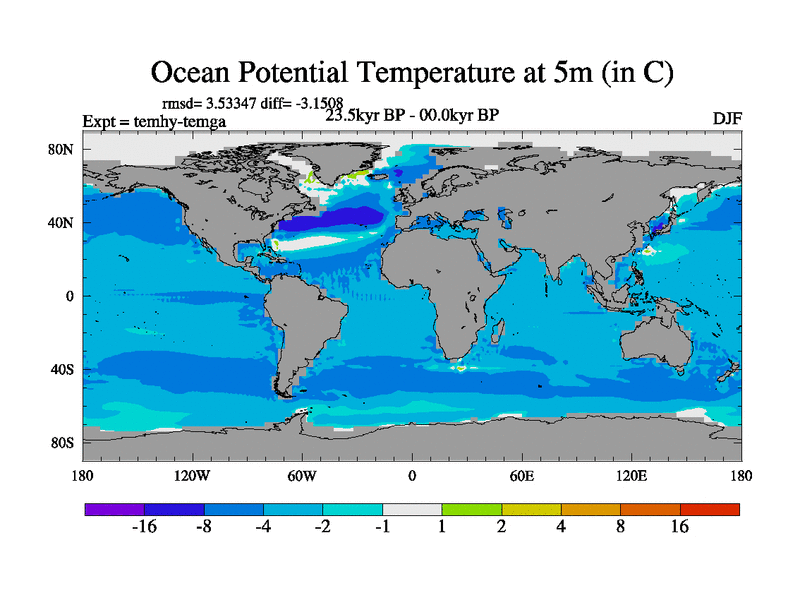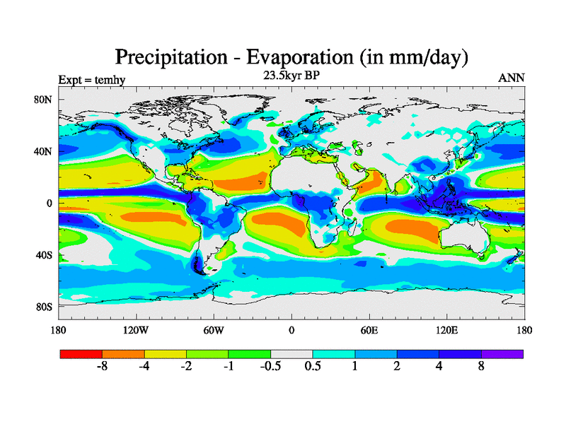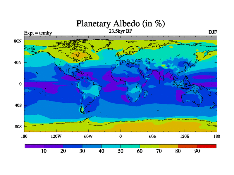 This is the 23.5 kyr BP simulation for a new set of deglaciation BBC runs using GLAC-1D and TRIFFID. Dynamic mode. No meltwater. Russian rivers routed to Arctic.
