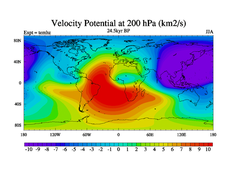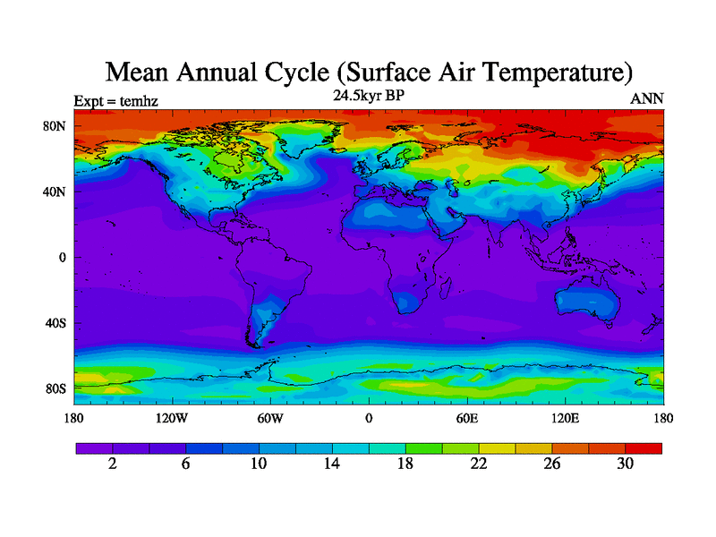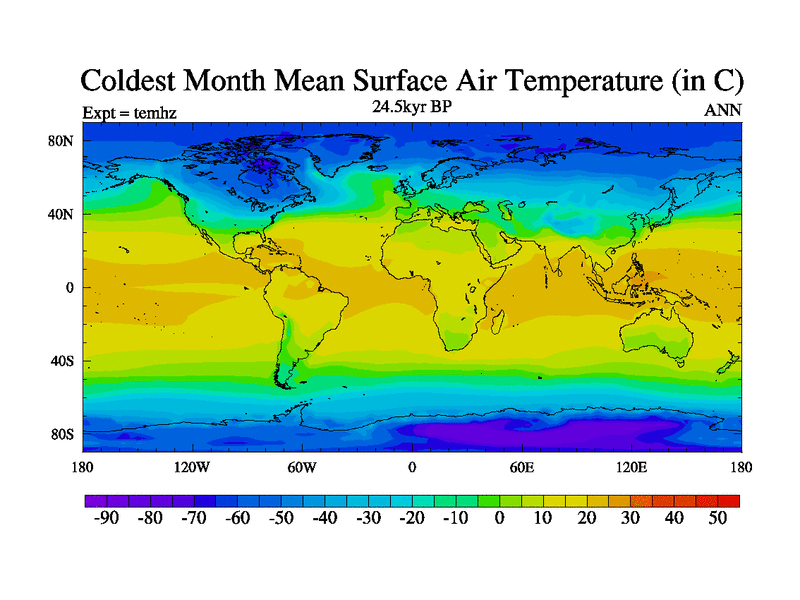 This is the 24.5 kyr BP simulation for a new set of deglaciation BBC runs using GLAC-1D and TRIFFID. Dynamic mode. No meltwater. Russian rivers routed to Arctic.