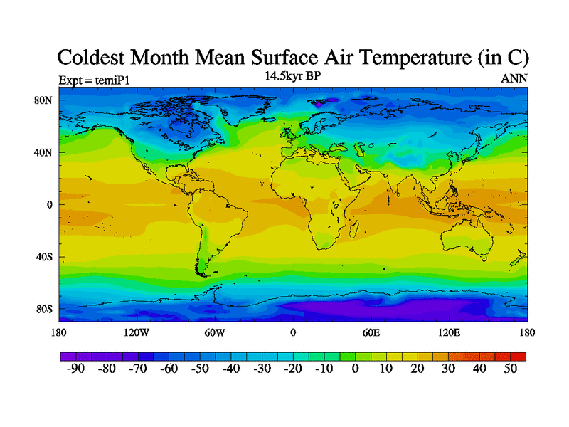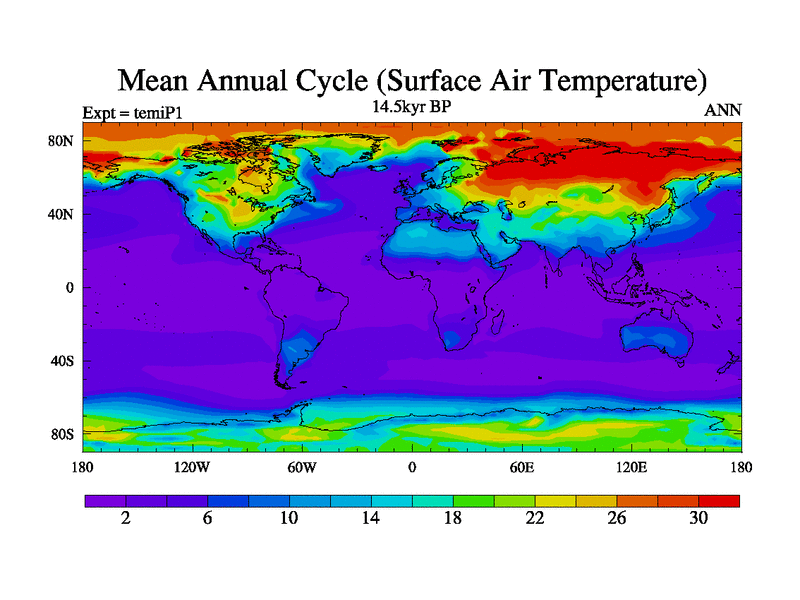 This is the 14.5 kyr BP simulation for an extension of the tema series but with CO2 set to the 100 year means of the transient runs