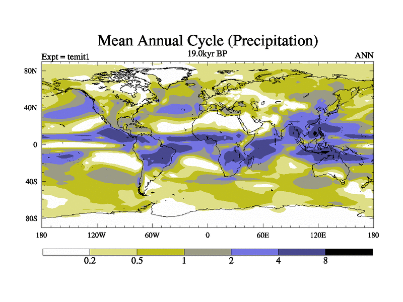 This is the 19.0 kyr BP simulation for an extension of the tema series but with CO2 set to the 100 year means of the transient runs