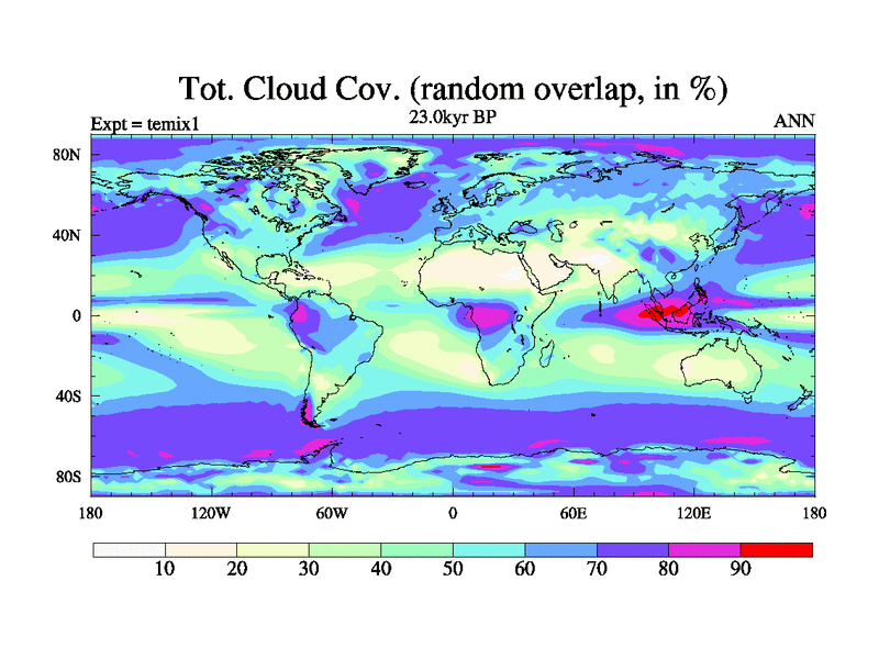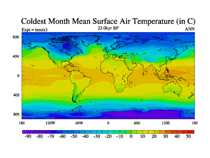 This is the 23.0 kyr BP simulation for an extension of the tema series but with CO2 set to the 100 year means of the transient runs