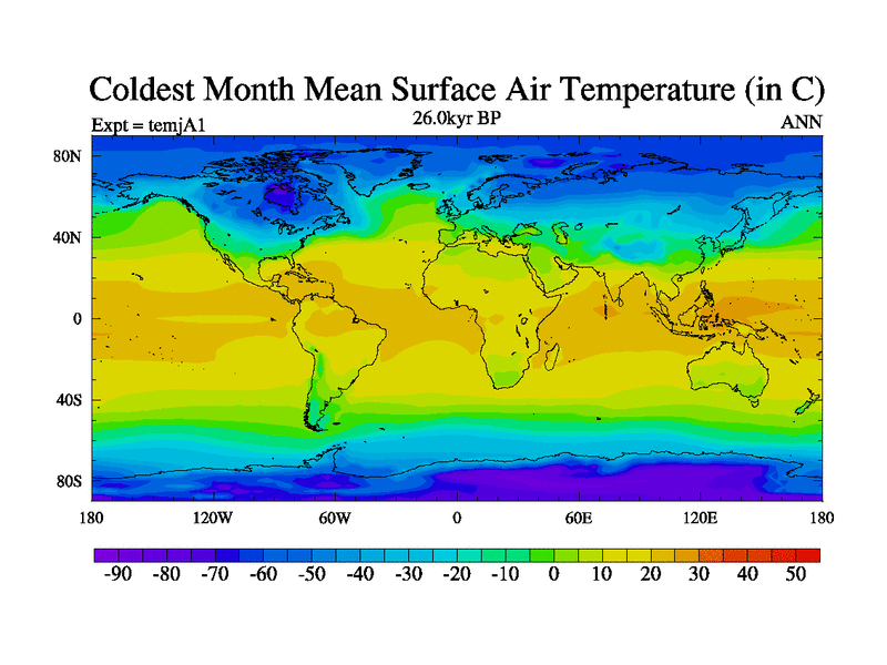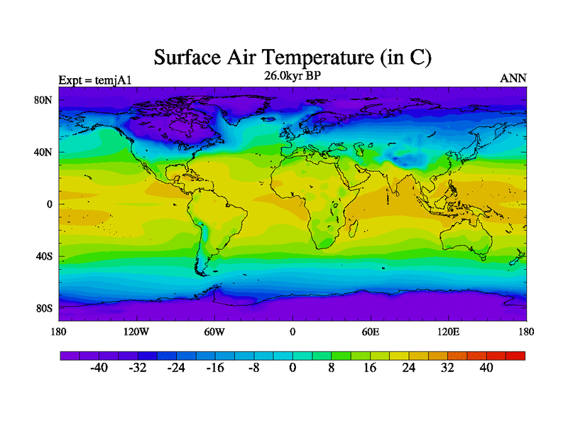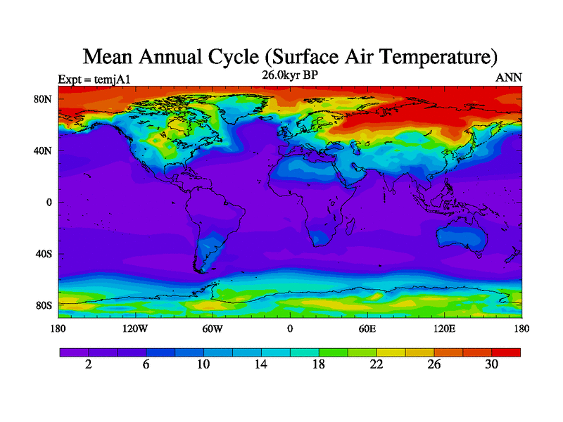 This is the 26.0 kyr BP simulation for an extension of the temc series but with CO2 set to the 100 year means of the transient runs