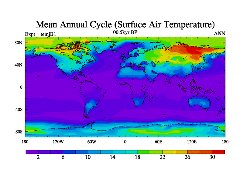 This is the 00.5 kyr BP simulation for an extension of the temc series but with CO2 set to the 100 year means of the transient runs