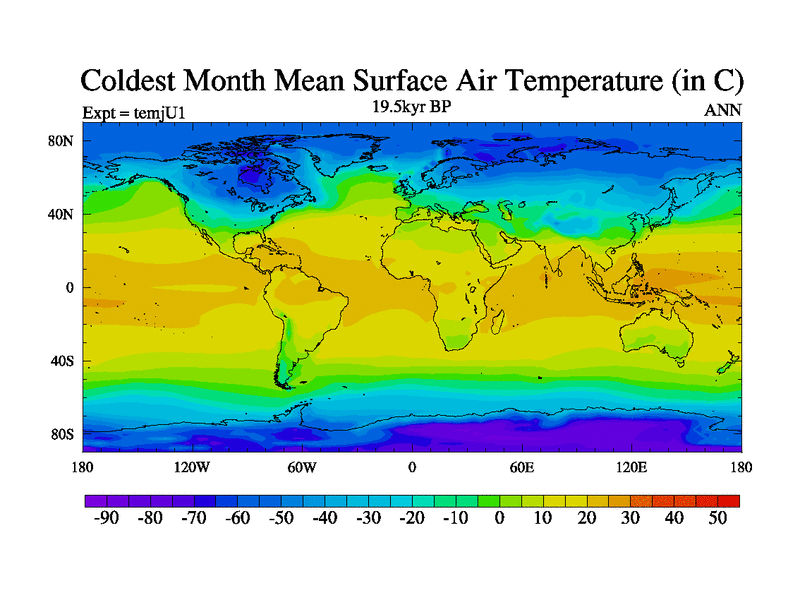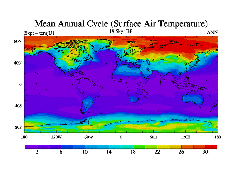 This is the 19.5 kyr BP simulation for an extension of the temc series but with CO2 set to the 100 year means of the transient runs