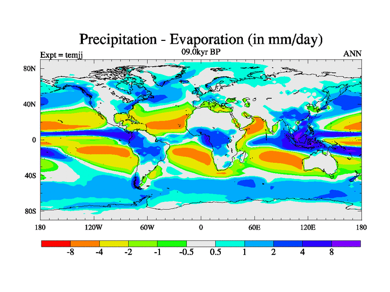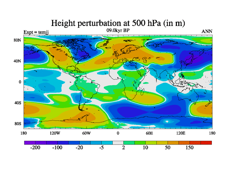 This is the 09.0 kyr BP simulation for an extension of the temc series but with CO2 set to the 100 year means of the transient runs