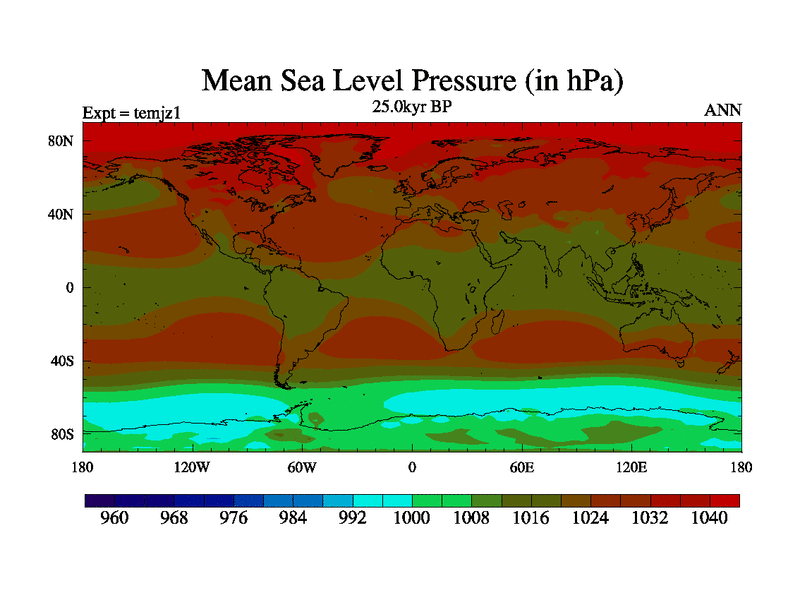 This is the 25.0 kyr BP simulation for an extension of the temc series but with CO2 set to the 100 year means of the transient runs