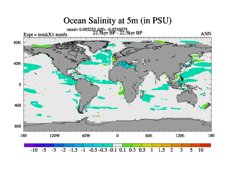 The boundary conditions are (a) GLAC-1D, used in anomaly mode, (b) GHGs from the latest estimates, (c) global salinity approx 1PSU more at LGM and scaled with sealevel for other periods (d) orbital changes via FAMOUS update (default is Berger and Loutre 1991)