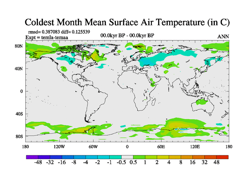 This is the 00.0 kyr BP simulation for a new set of deglaciation BBC runs using GLAC-1D and TRIFFID. Dynamic mode. No meltwater. Russian rivers routed to Arctic.