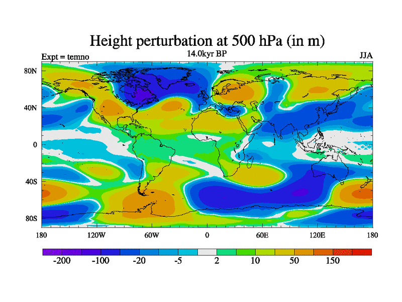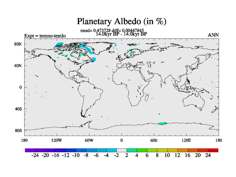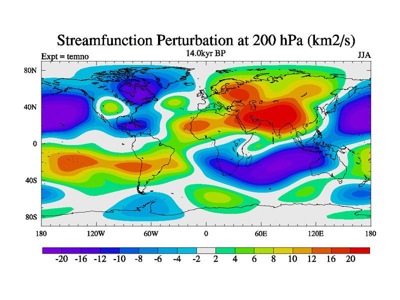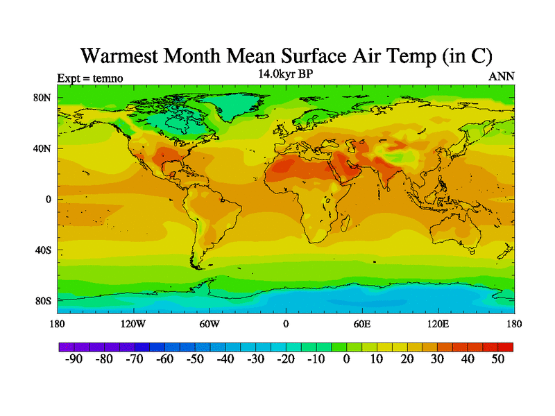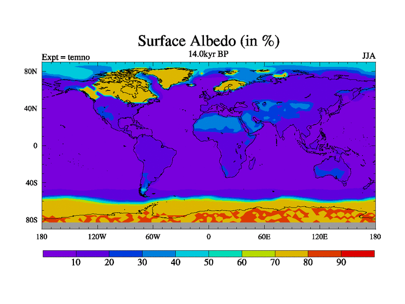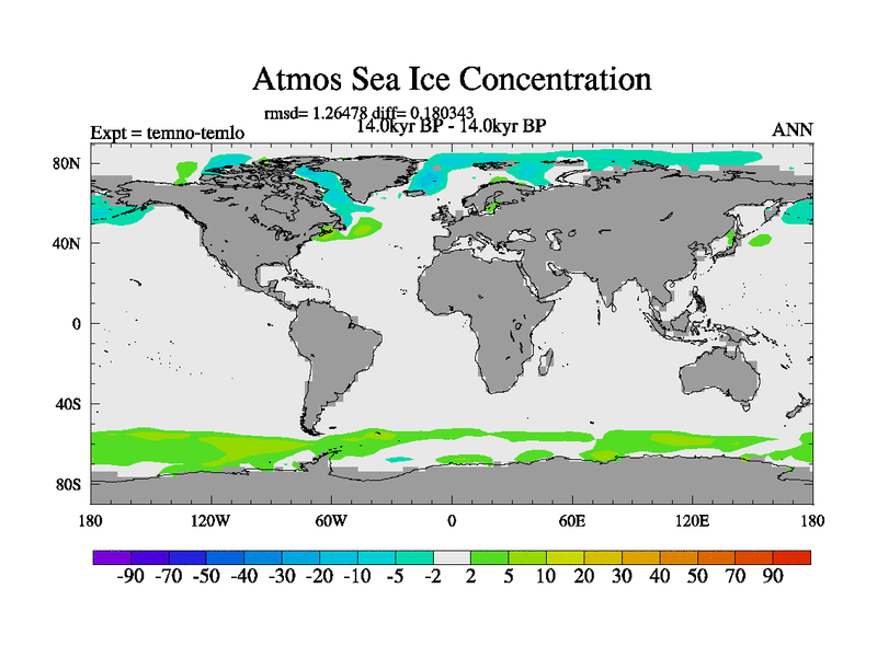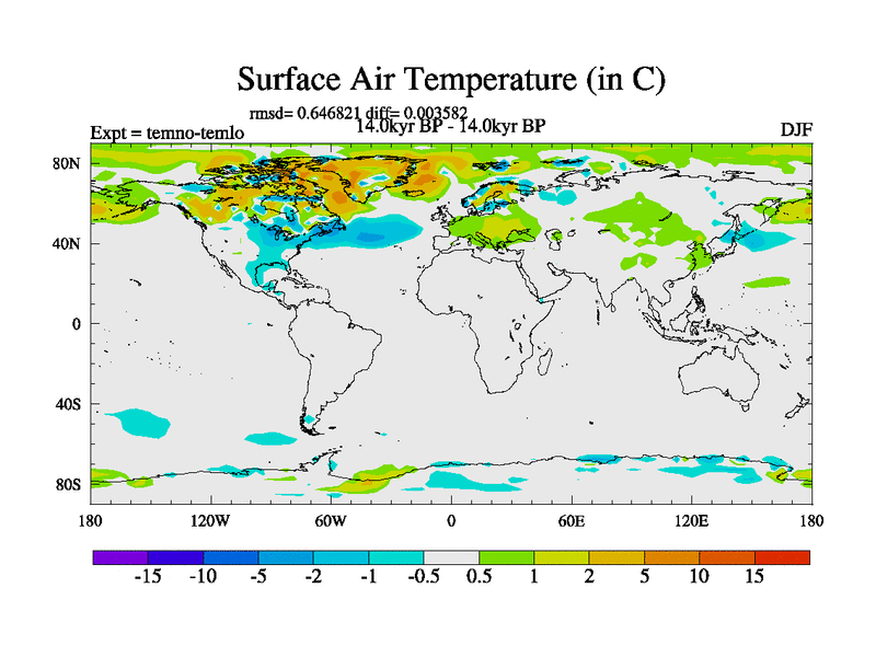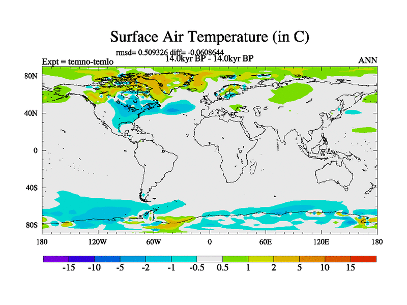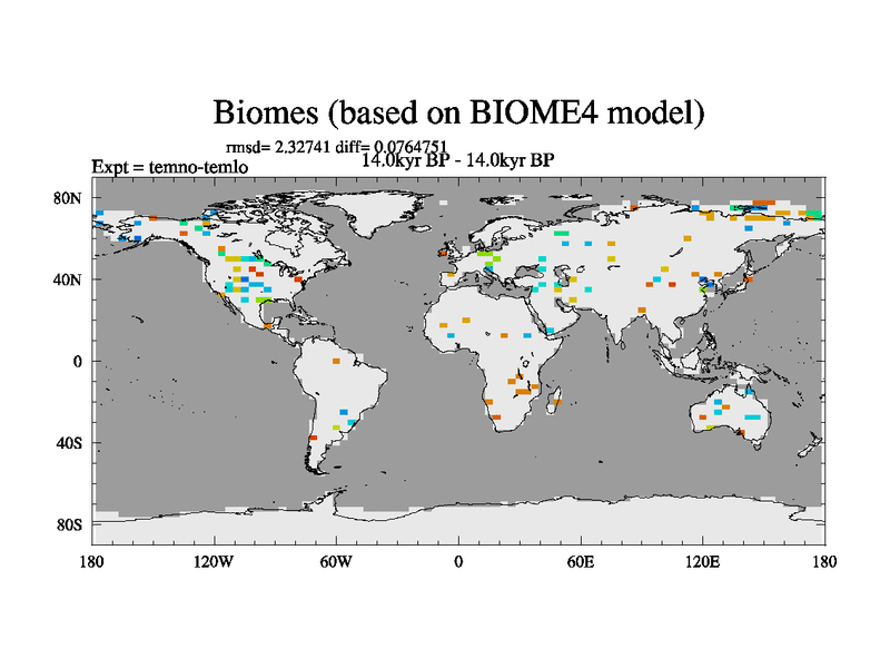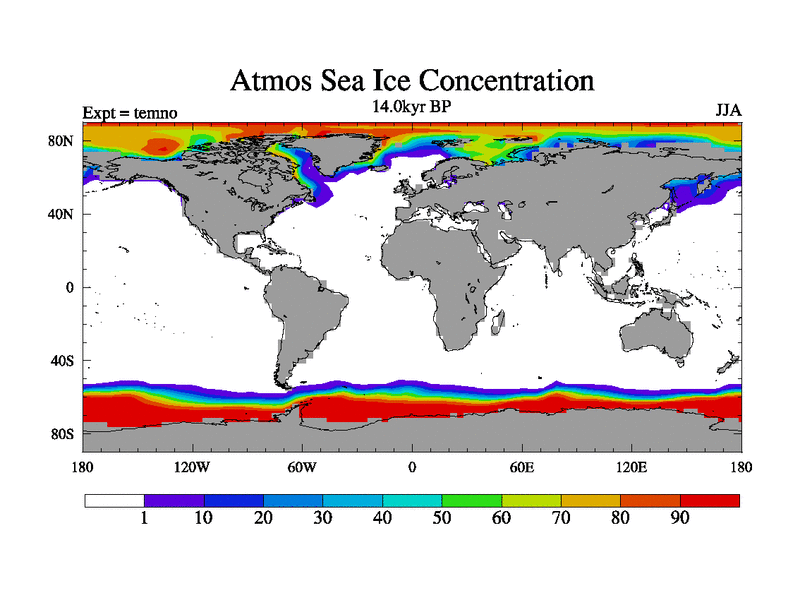 This is the 14.0 kyr BP simulation for a new set of deglaciation BBC runs using GLAC-1D and TRIFFID. Dynamic mode. No meltwater. Russian rivers routed to Arctic.