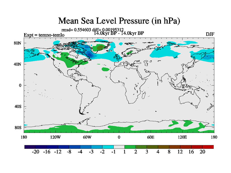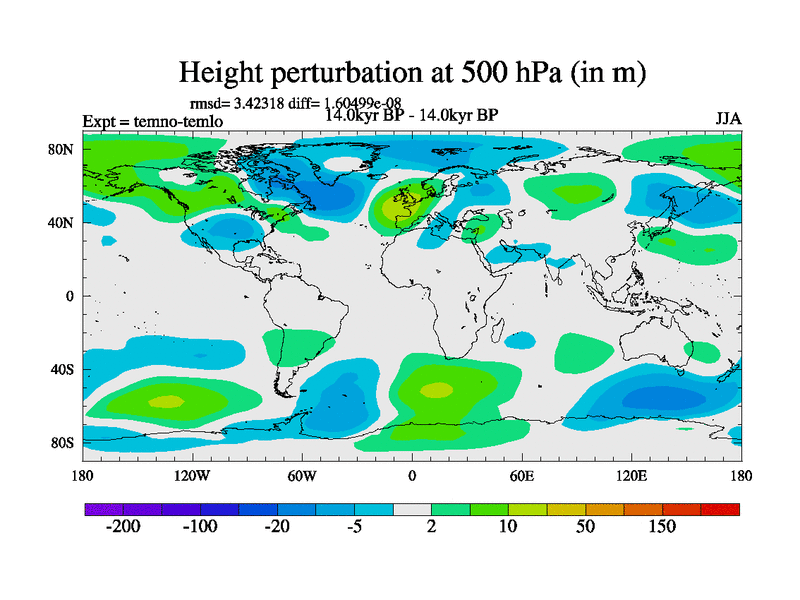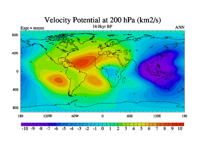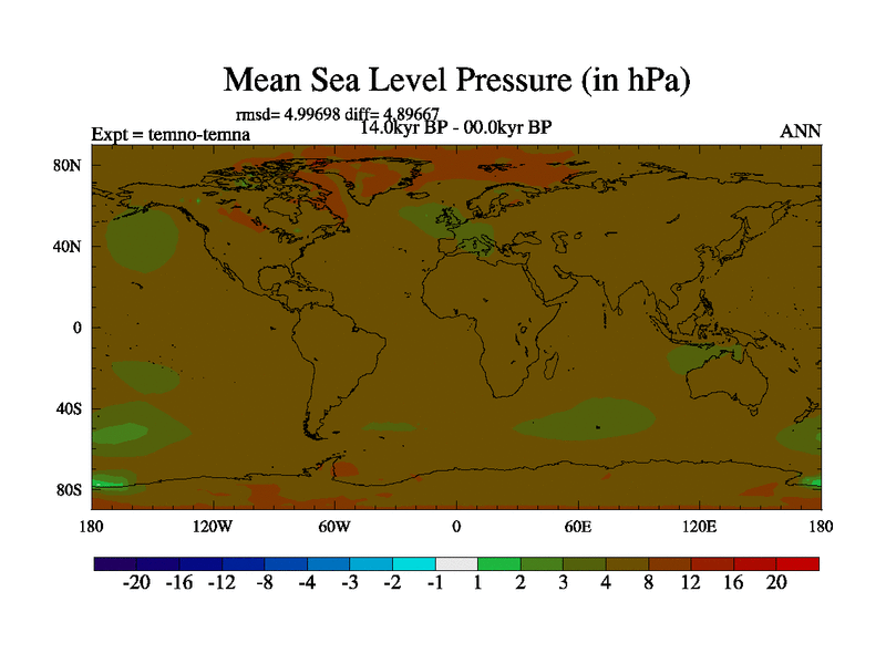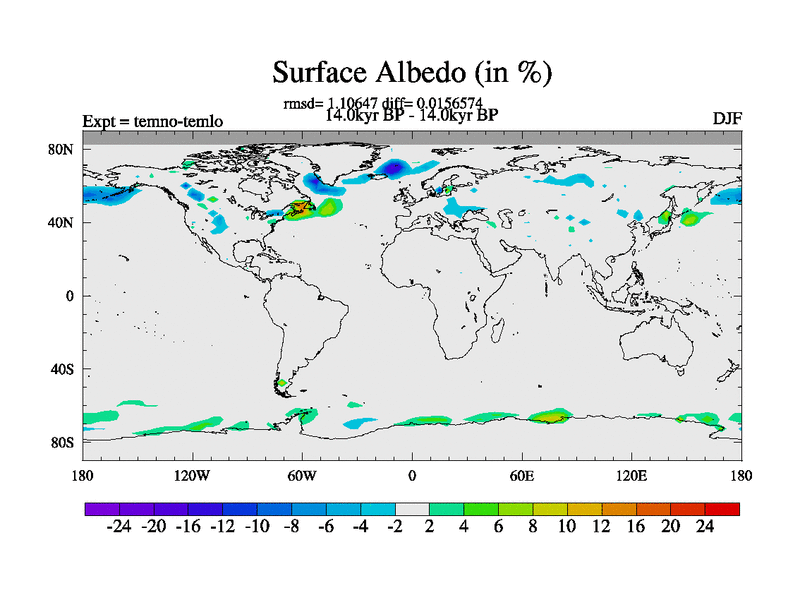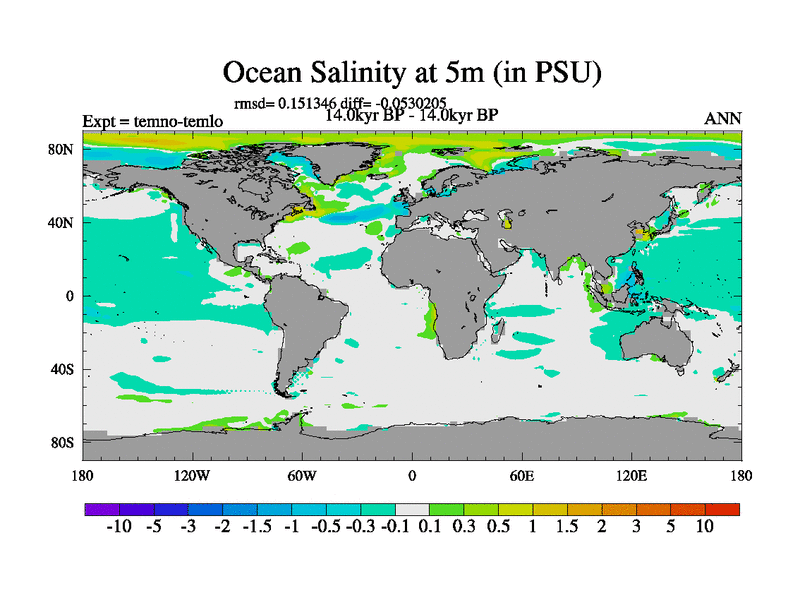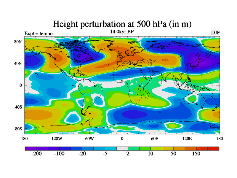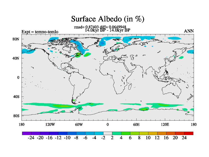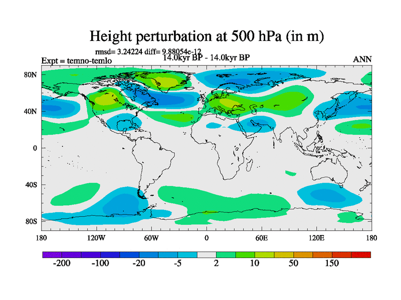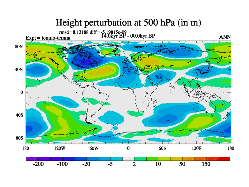 This is the 14.0 kyr BP simulation for a new set of deglaciation BBC runs using GLAC-1D and TRIFFID. Dynamic mode. No meltwater. Russian rivers routed to Arctic.