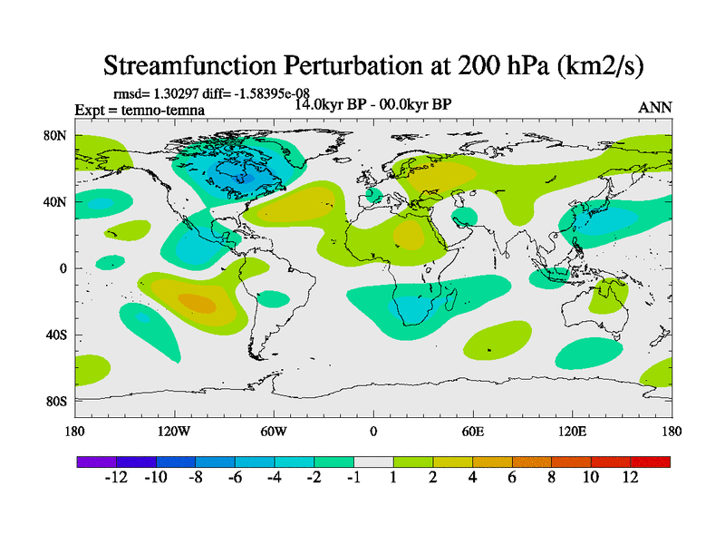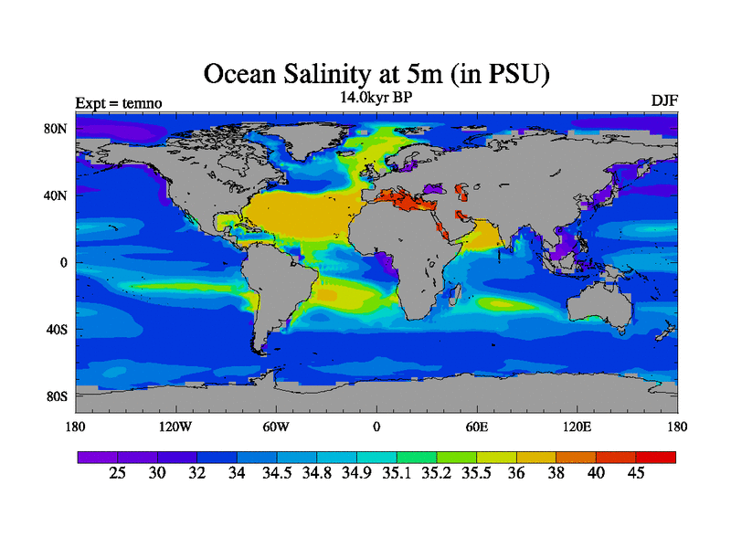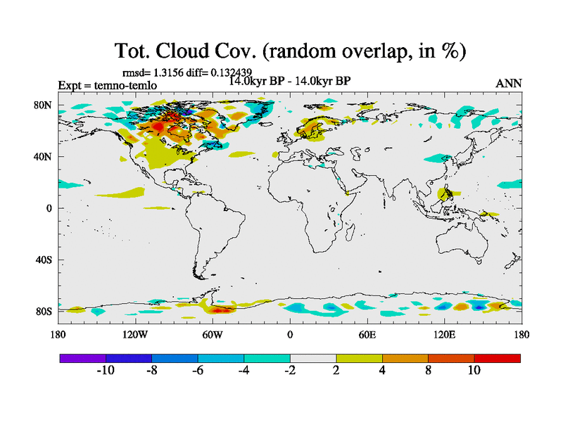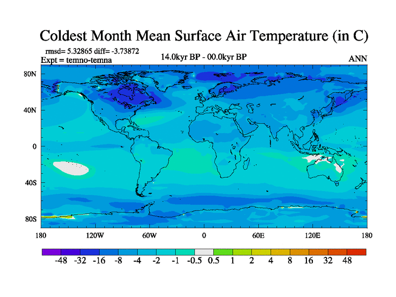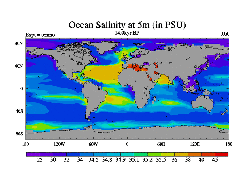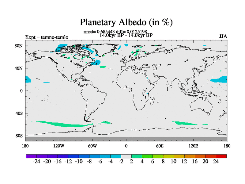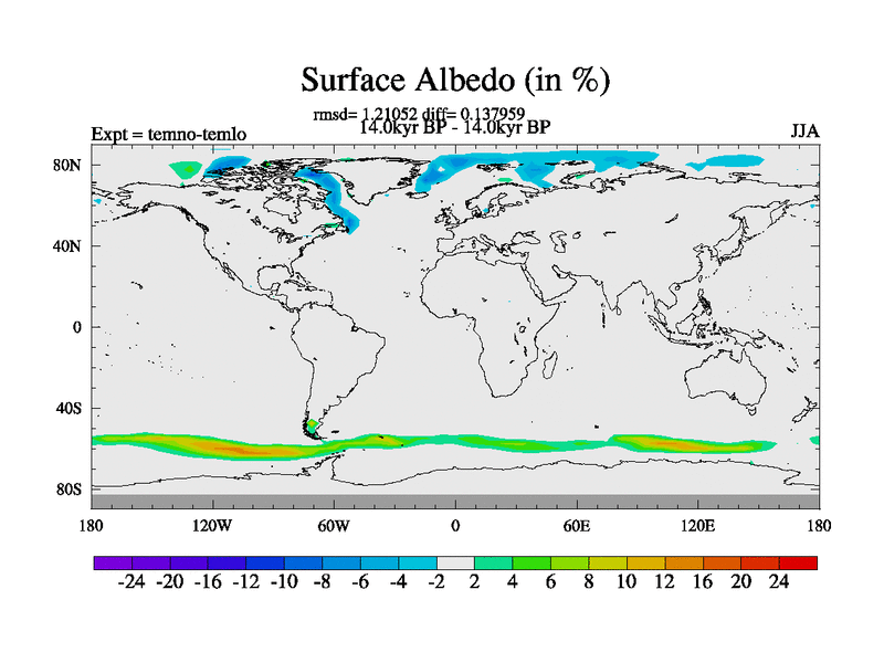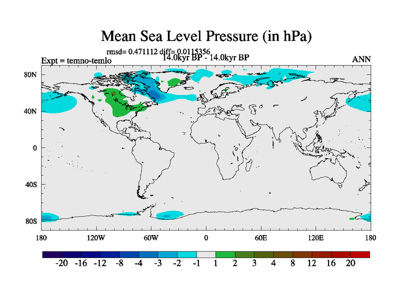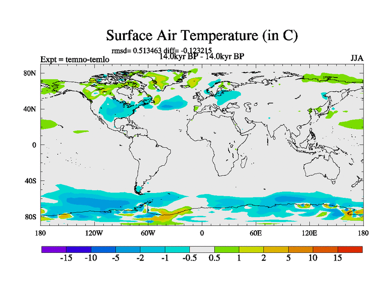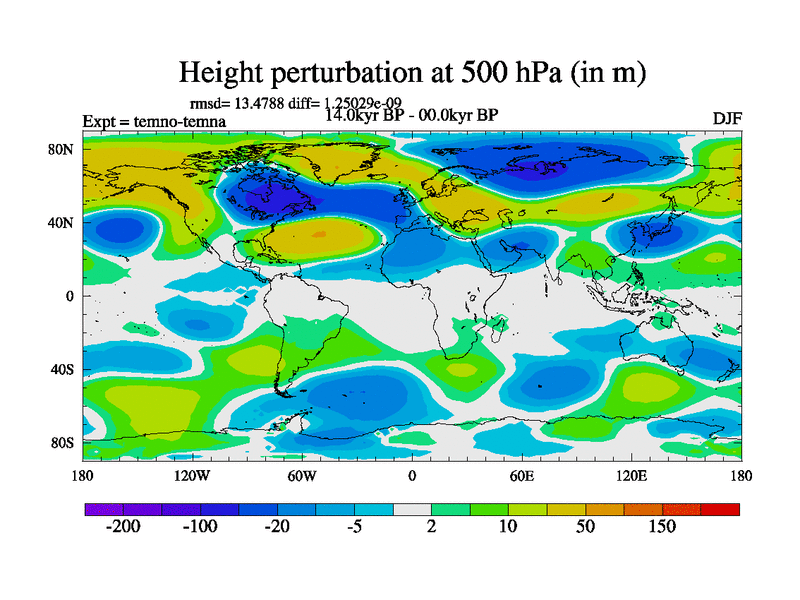 This is the 14.0 kyr BP simulation for a new set of deglaciation BBC runs using GLAC-1D and TRIFFID. Dynamic mode. No meltwater. Russian rivers routed to Arctic.