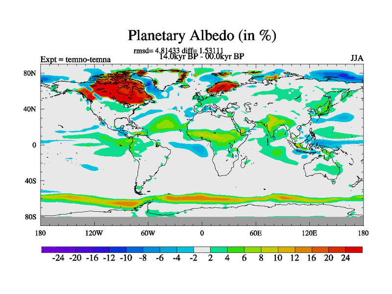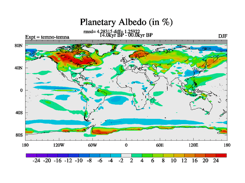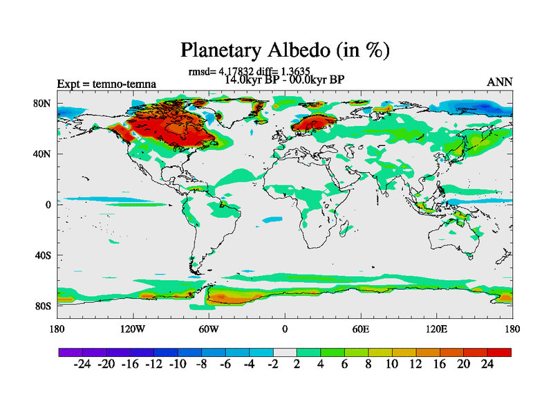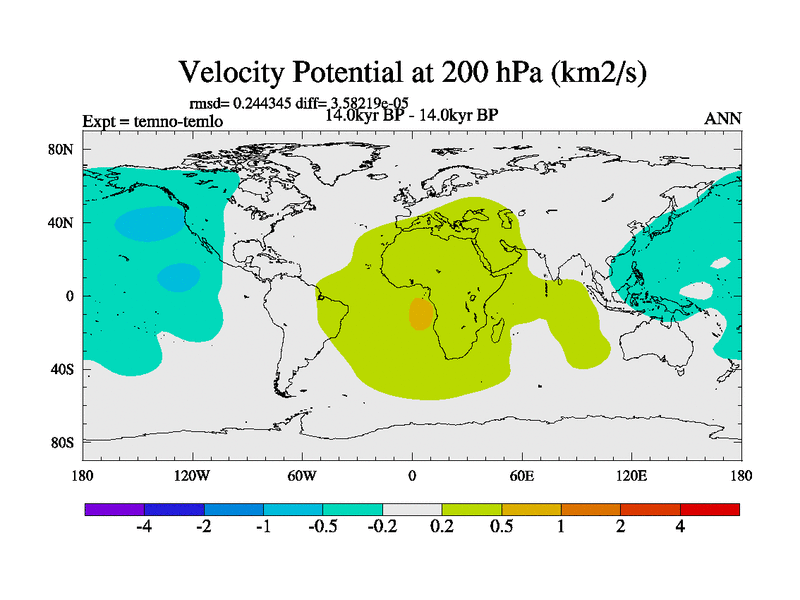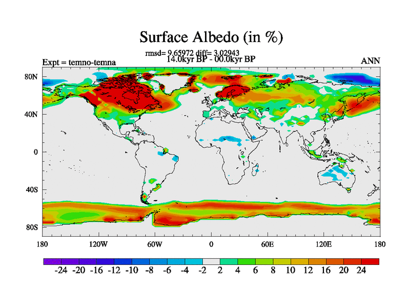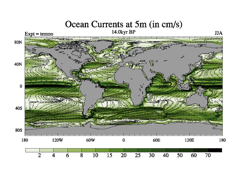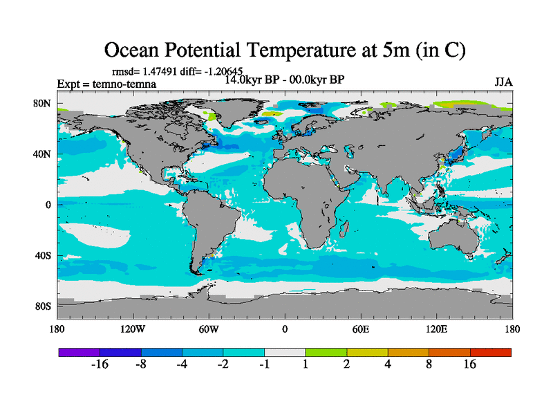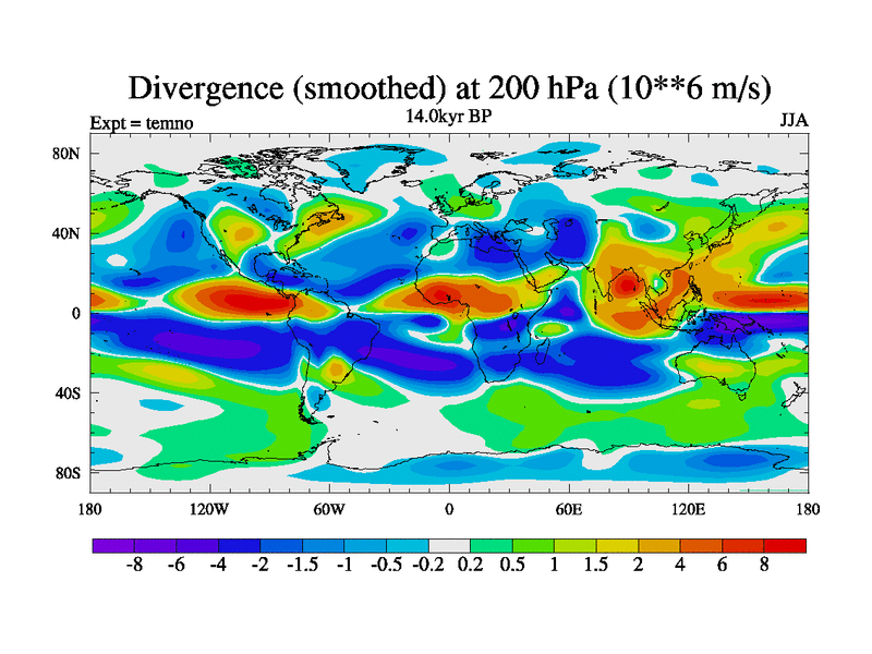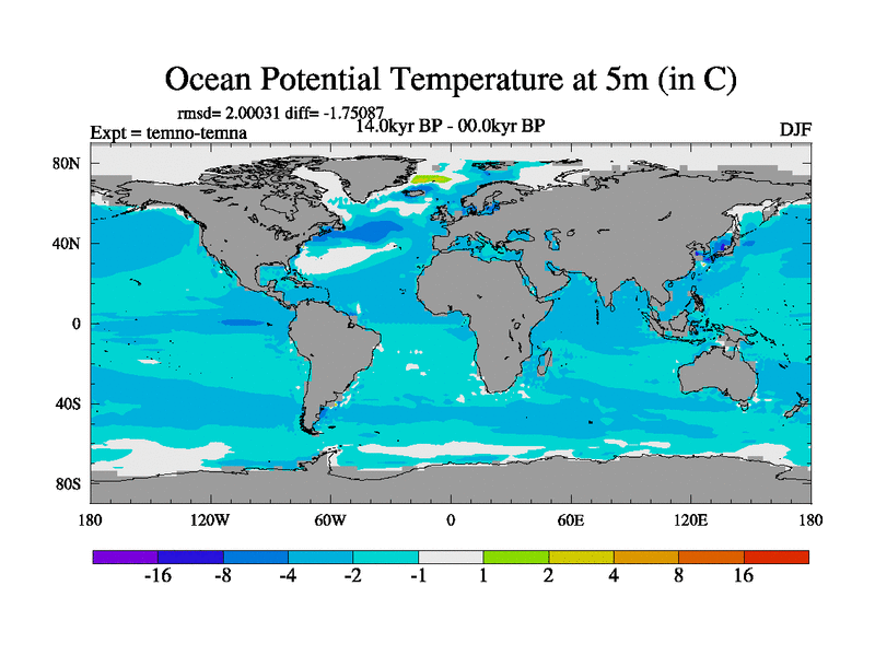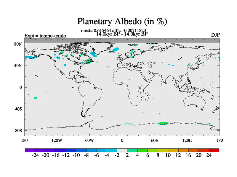 This is the 14.0 kyr BP simulation for a new set of deglaciation BBC runs using GLAC-1D and TRIFFID. Dynamic mode. No meltwater. Russian rivers routed to Arctic.