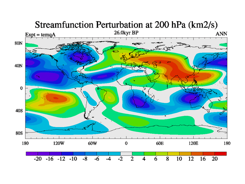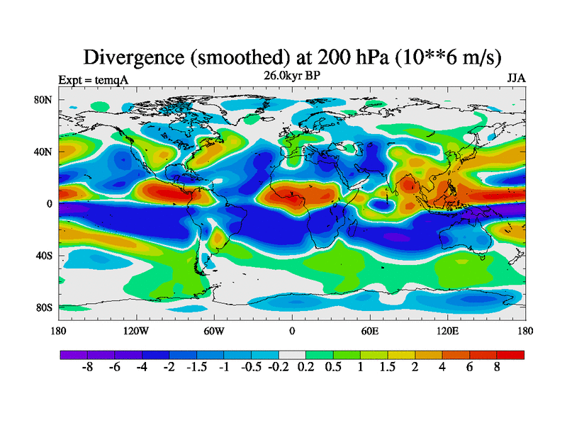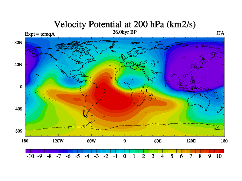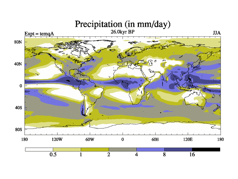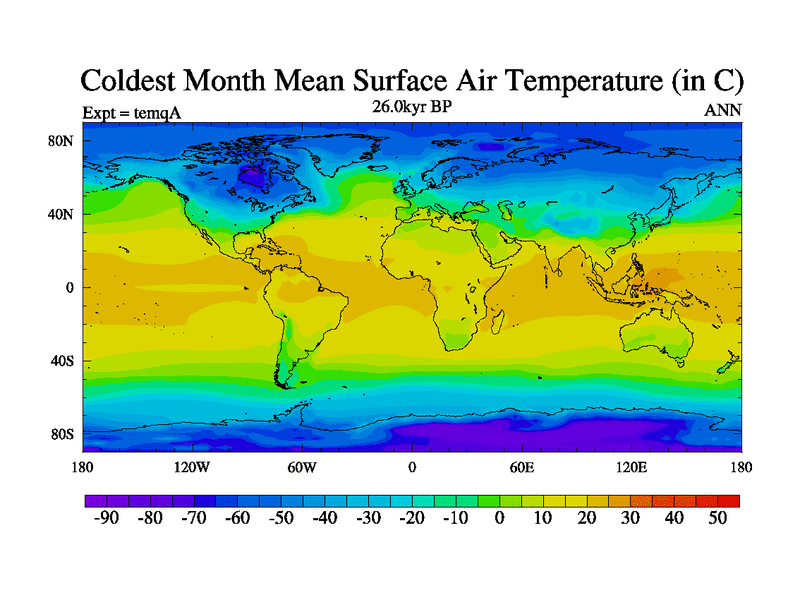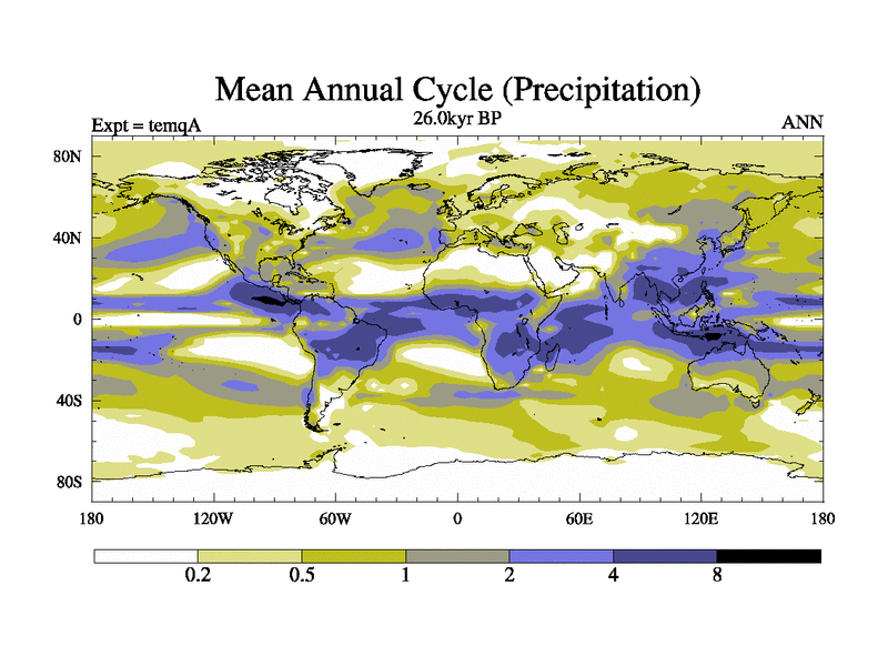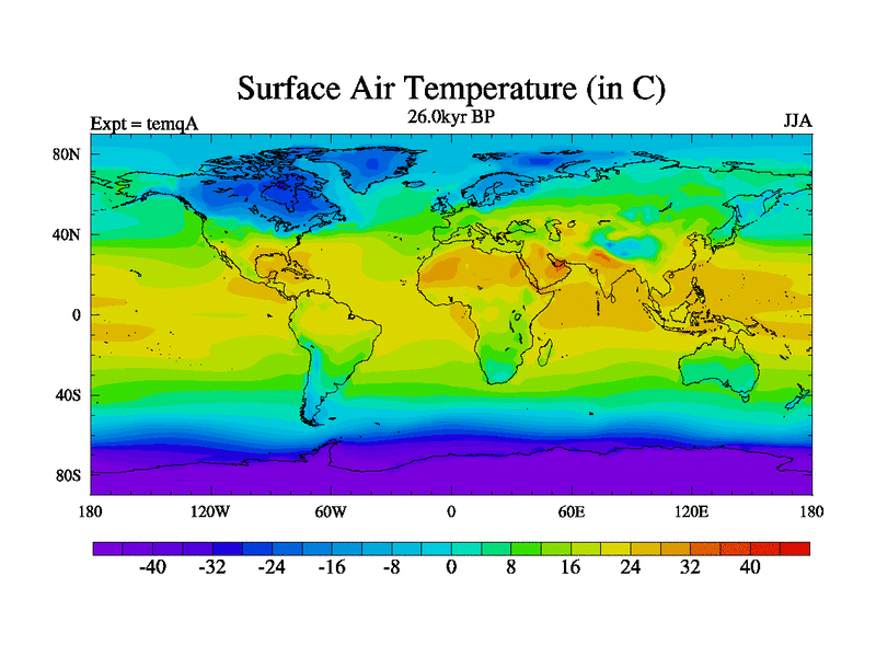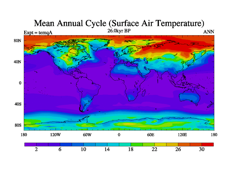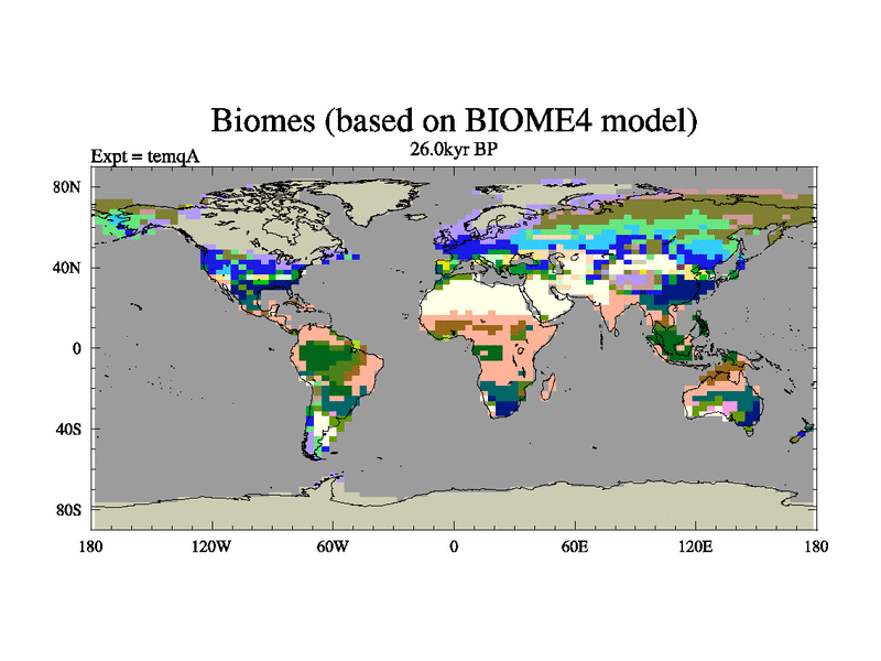 This is the 26.0 kyr BP simulation for an extension of the temi series but with CO2 set to the 100 year means of the transient runs. Deglaciation BBC runs using Peltier6g and TRIFFID. Dynamic mode.